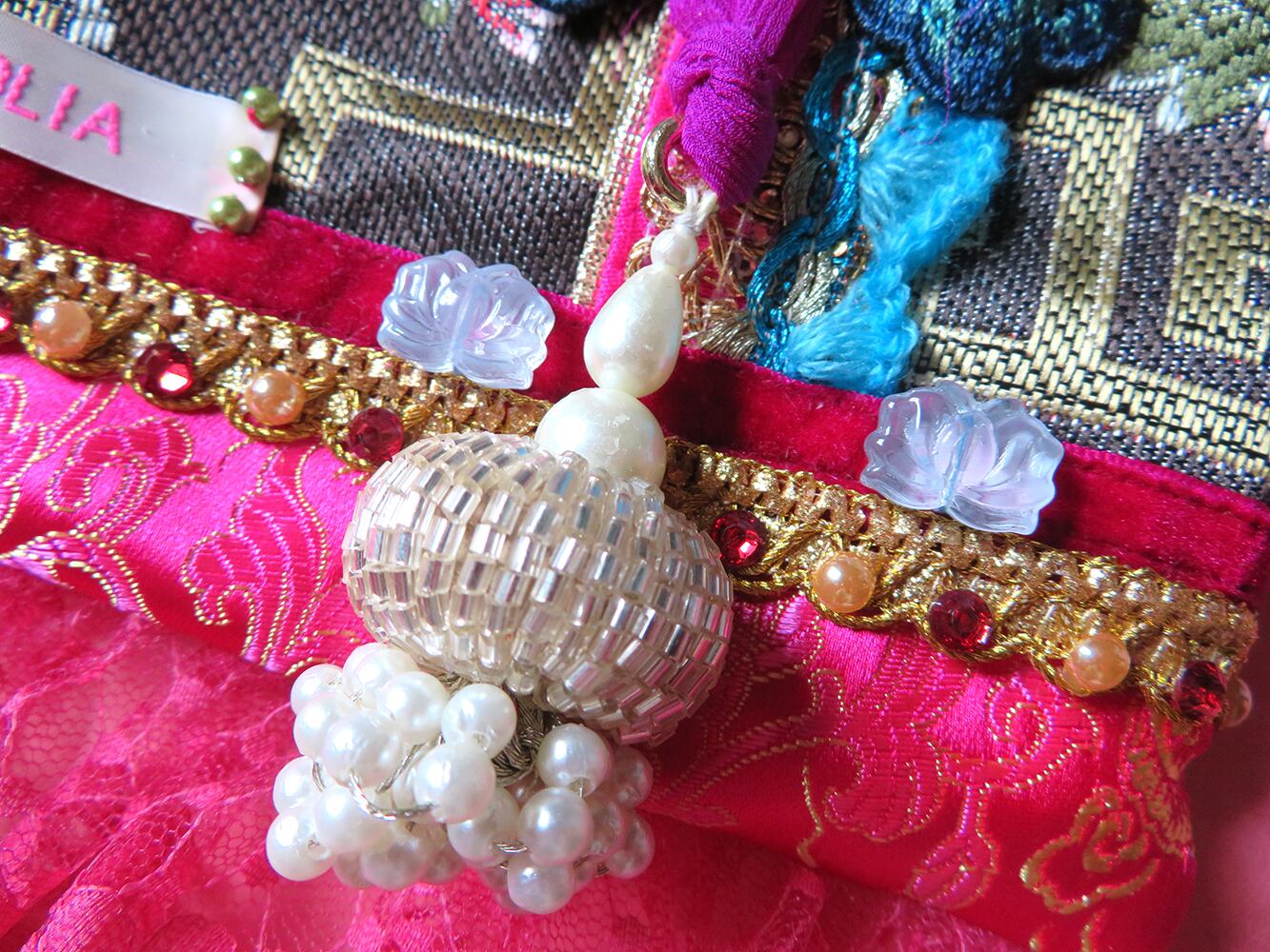 後ろはインド刺繍シルク生地を使用していますので、コーディネートによってどちらの面を表にして合わせても楽しめるデザイン。