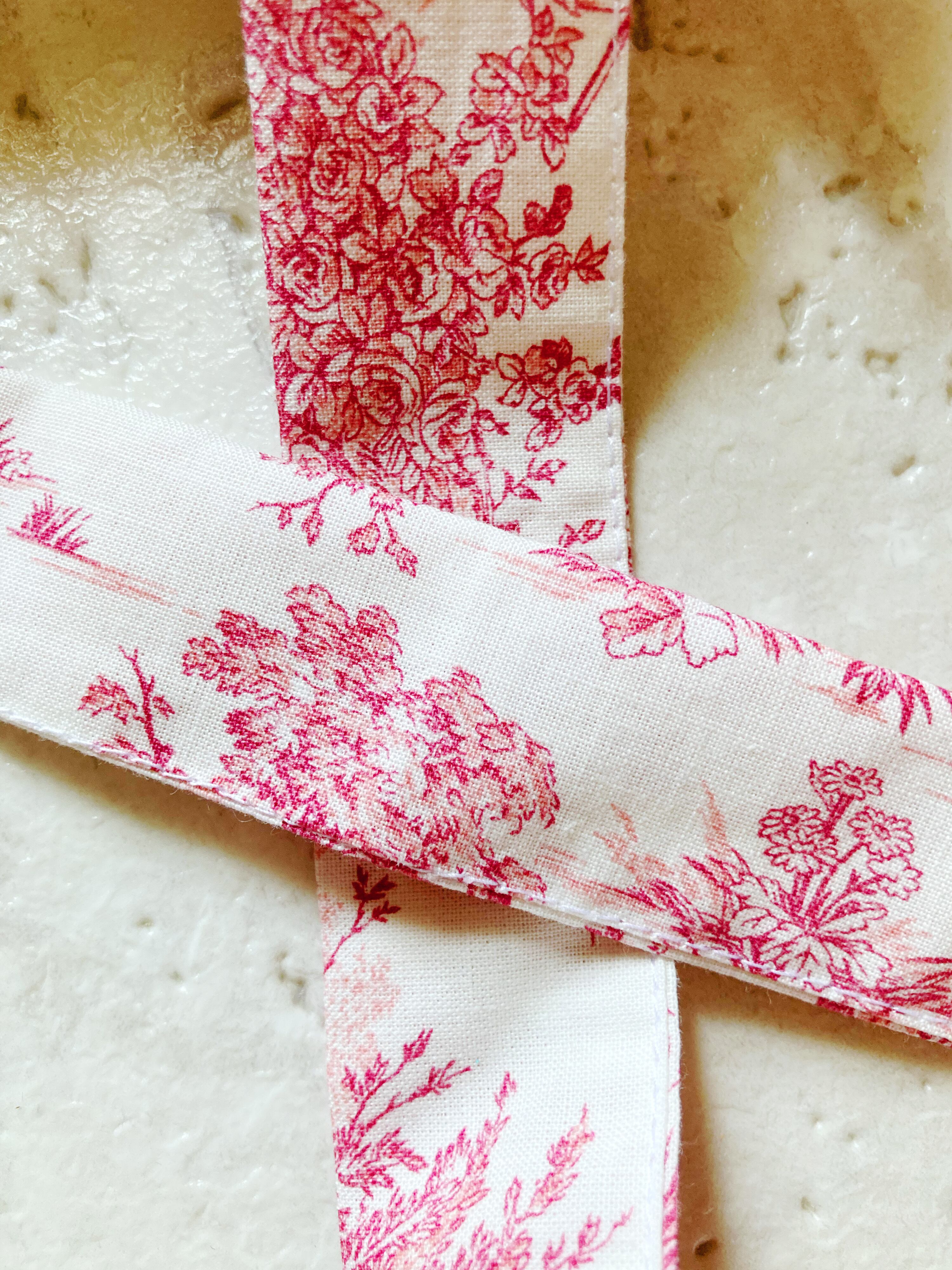 こちらは顎下でリボンを結んでいただくデザインです。