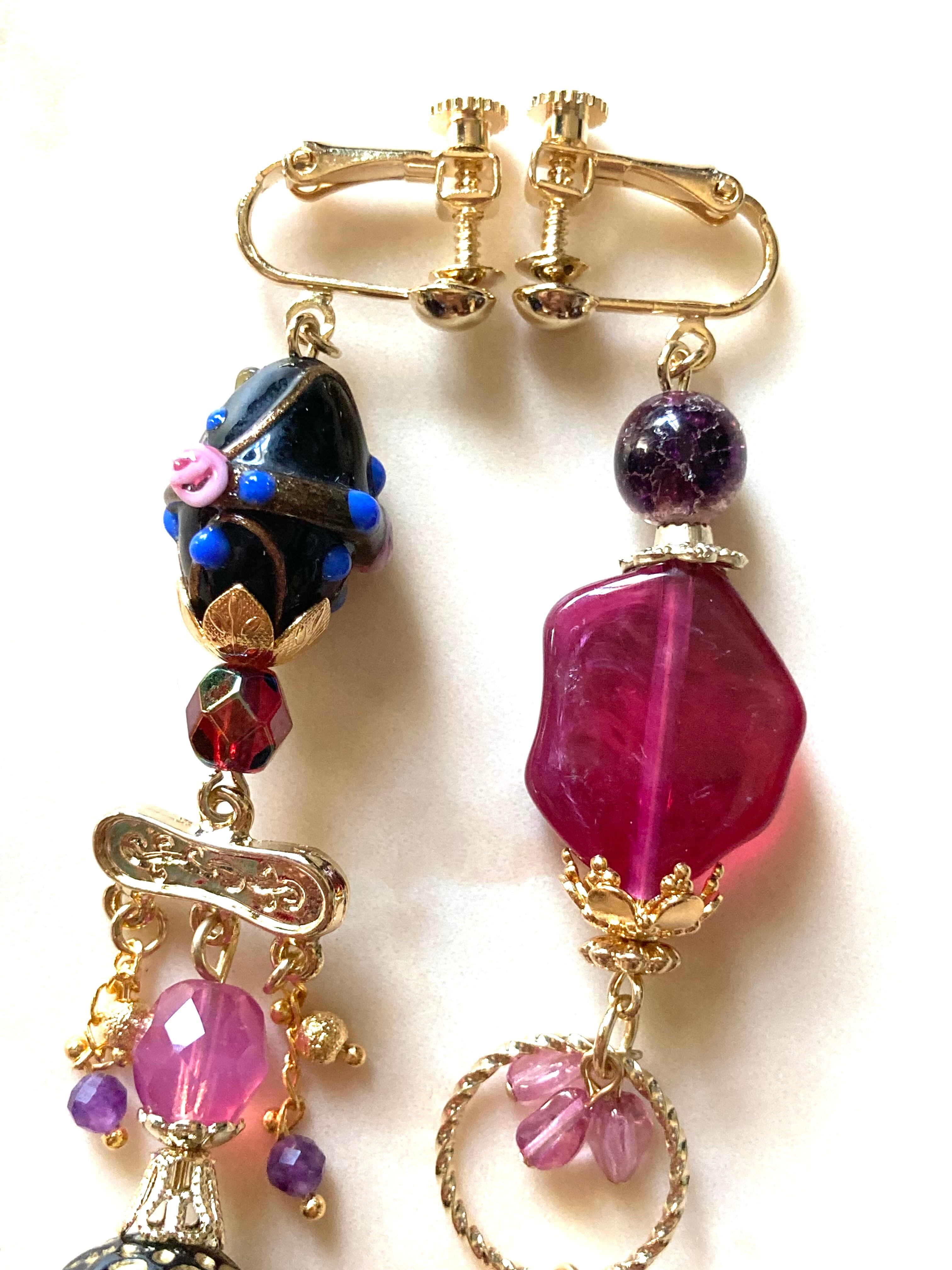 素材:チェコ硝子ビーズ、ドイツ製アクリルなど