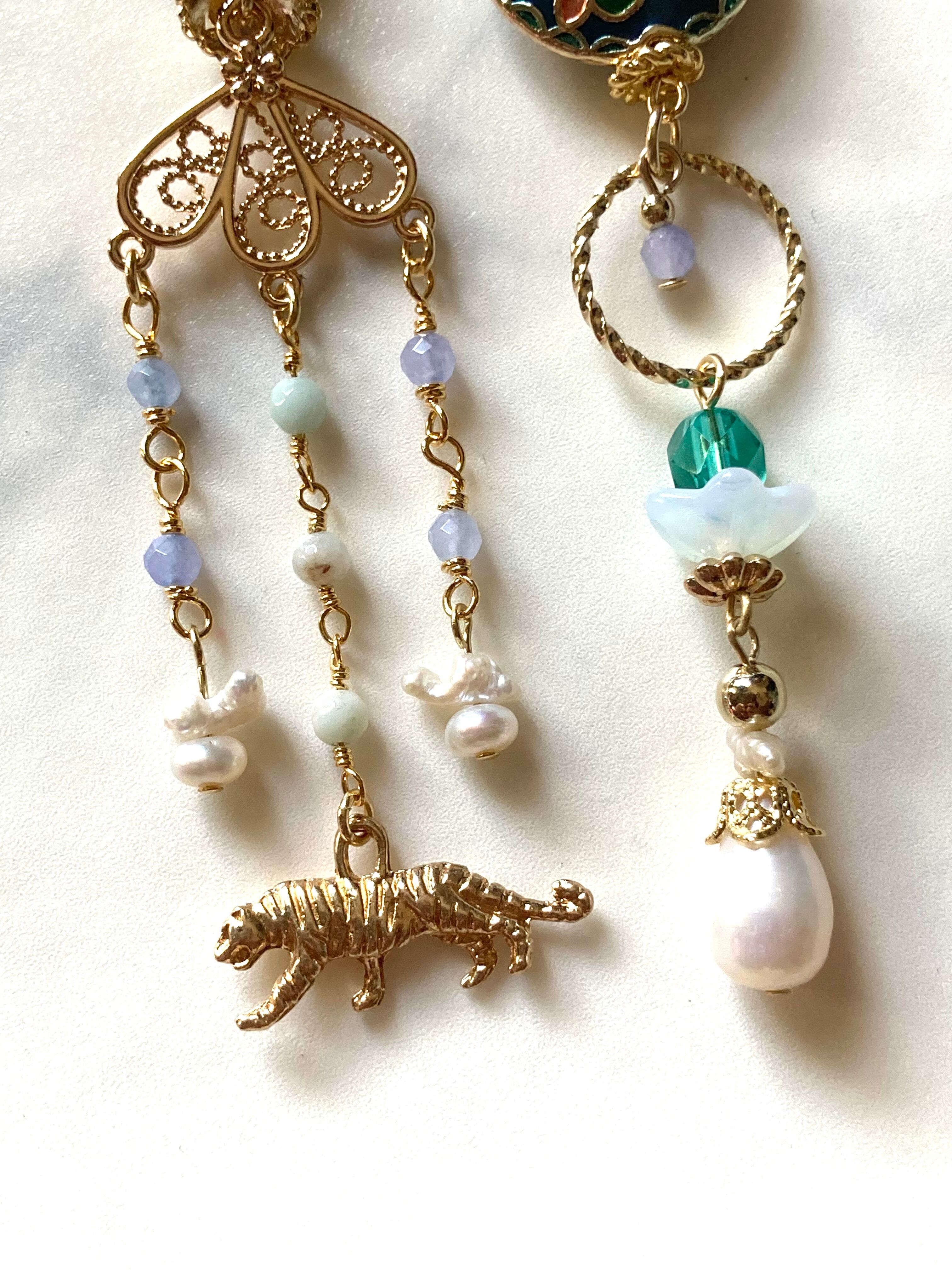 素材:チェコ硝子ビーズ、淡水パール、七宝風ビーズなど