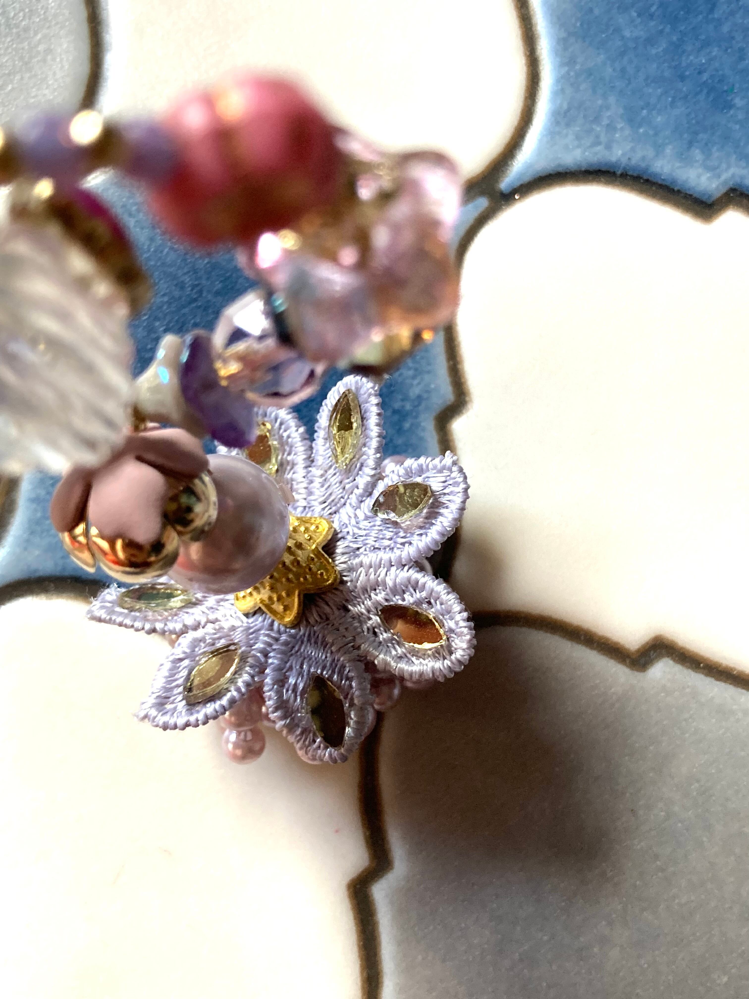 素材:チェコ硝子ビーズ、インド製タッセル、日本製アクリルビーズなど