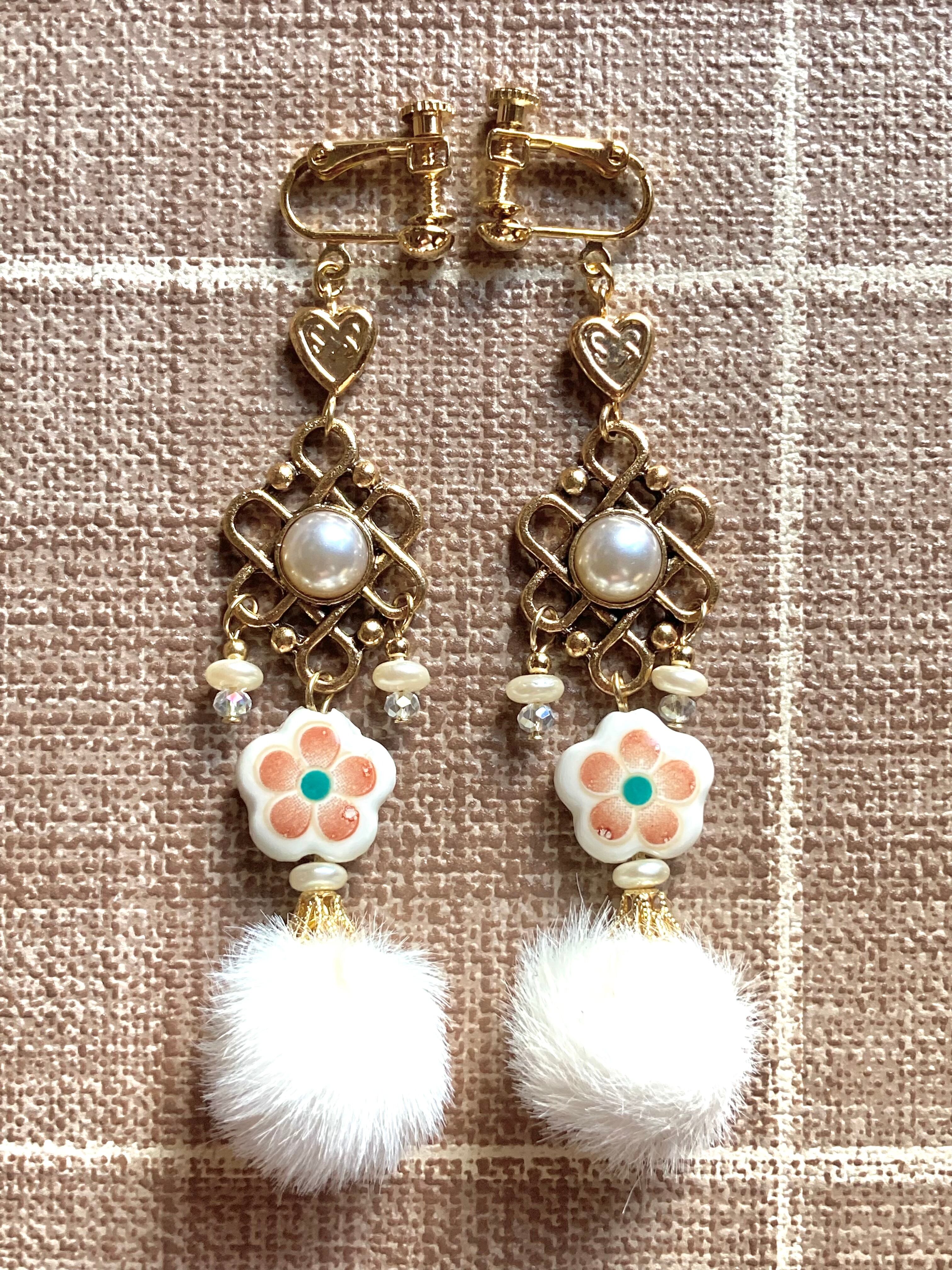 素材:フェイクファー、アクリルビーズ、陶器ビーズ、キャストビーズなど