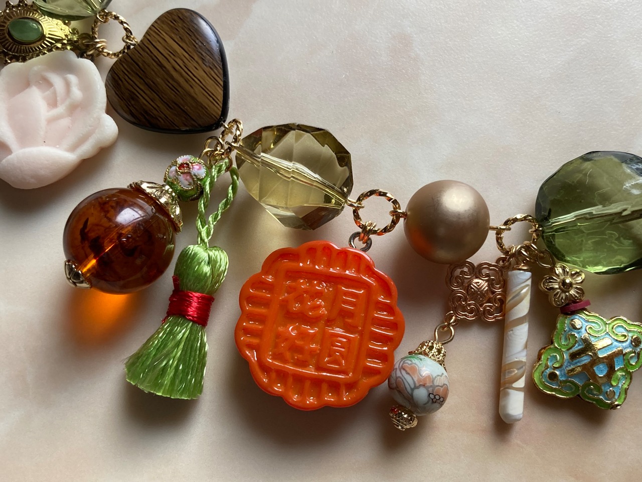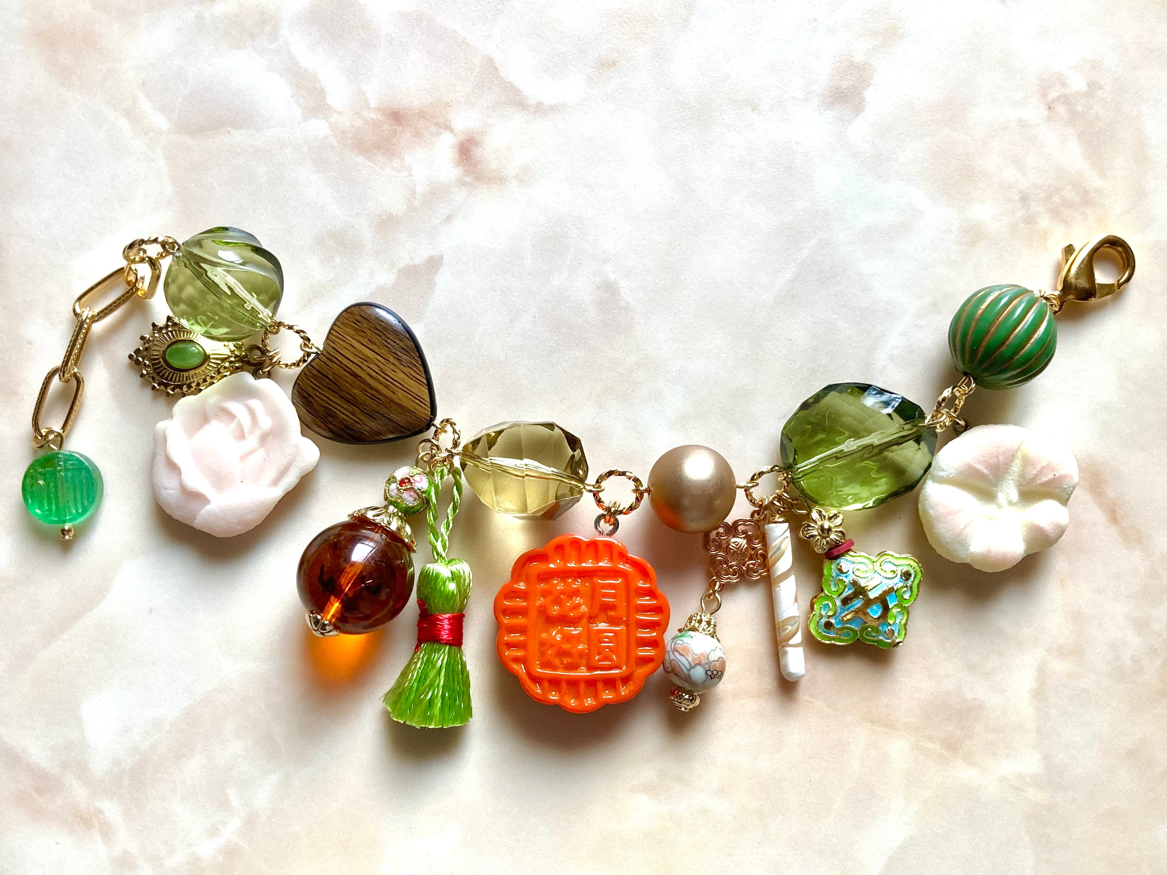 中秋節の一つの象徴である月餅を中華モチーフと共にブレスレットに組み上げました。