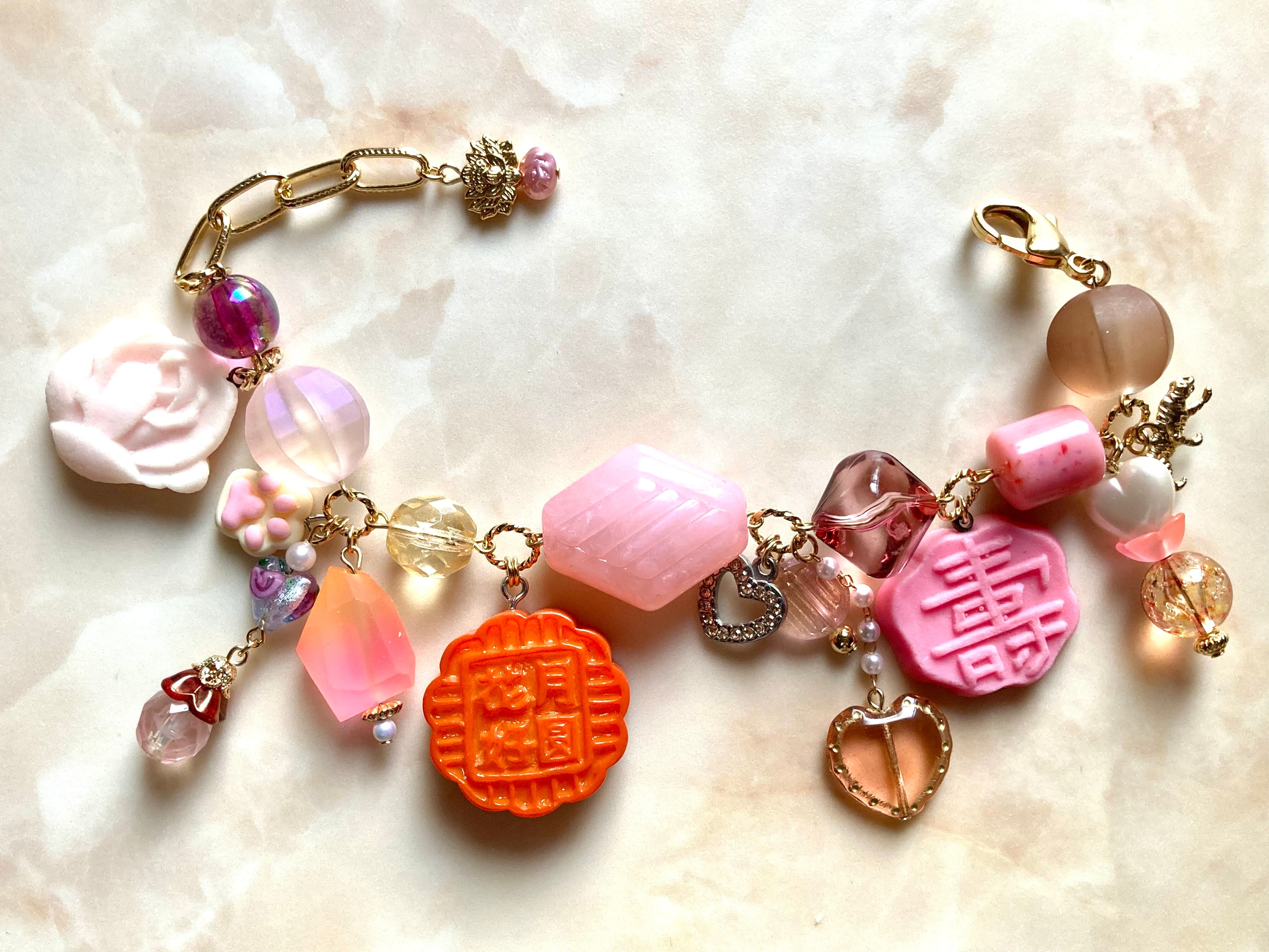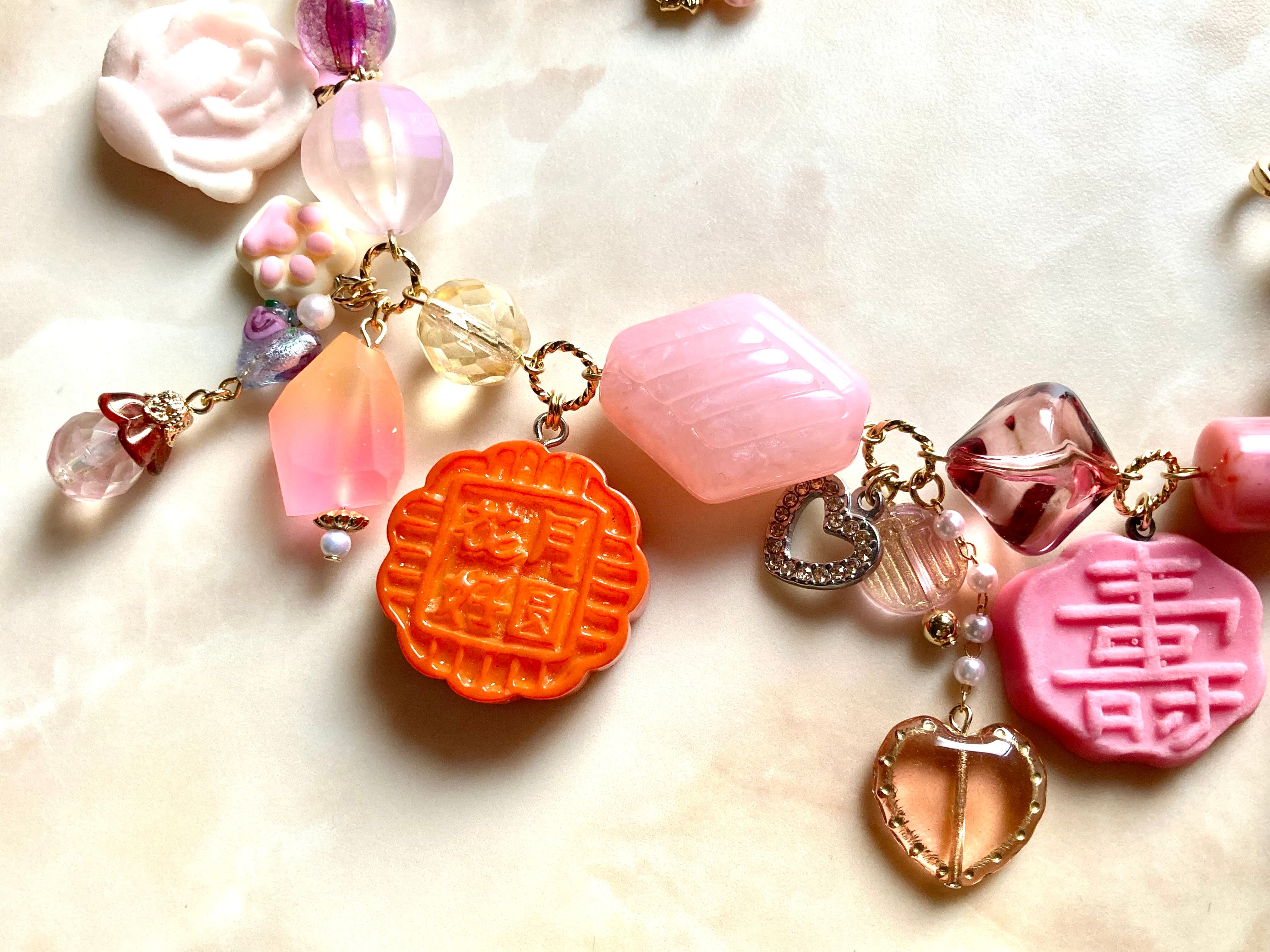 中秋節の一つの象徴である月餅を中華モチーフと共にブレスレットに組み上げました。