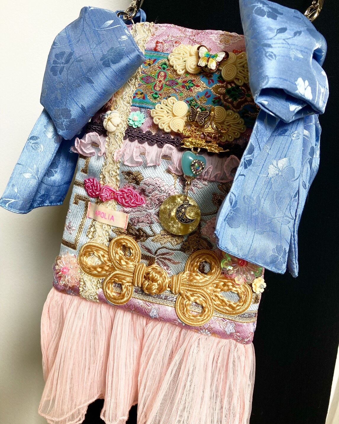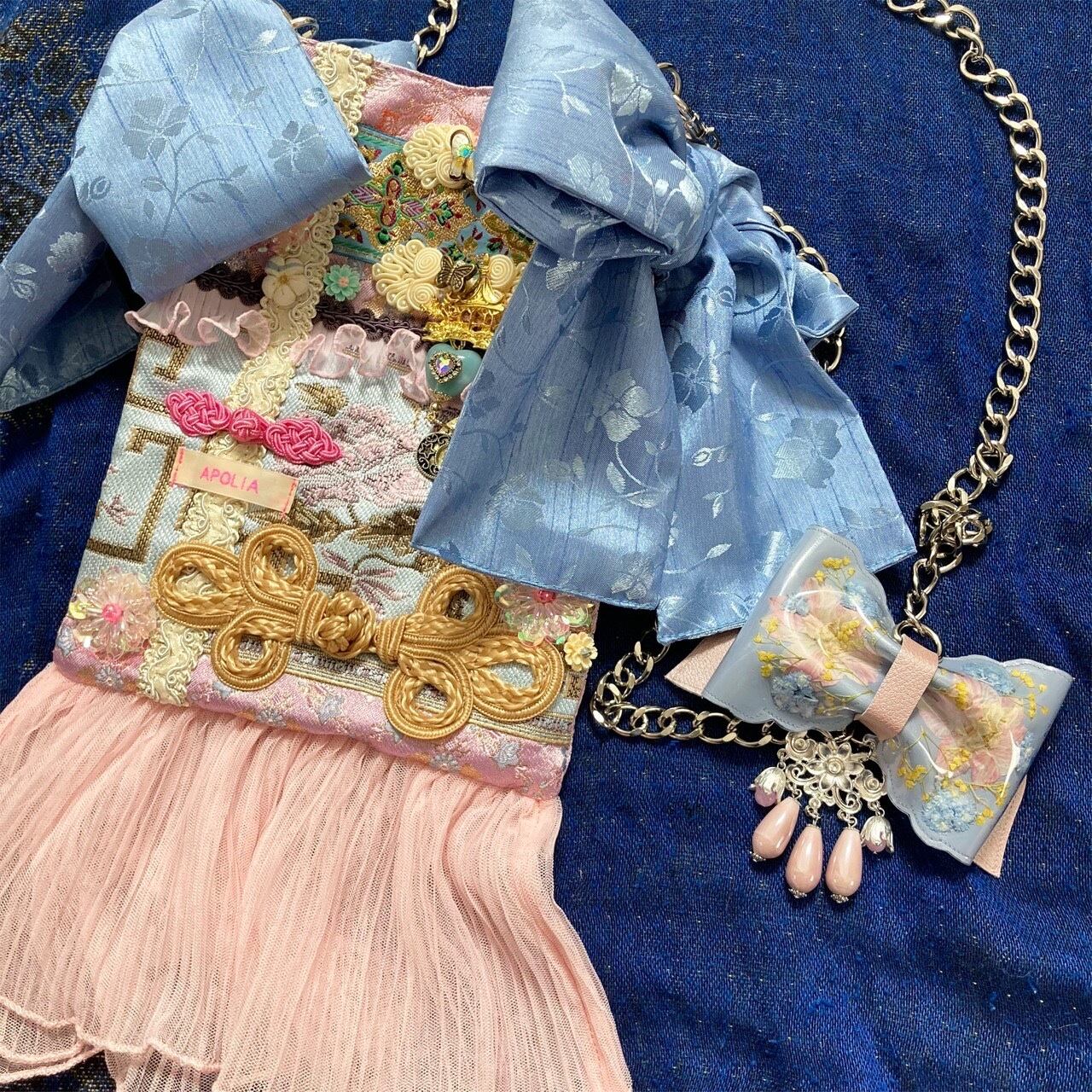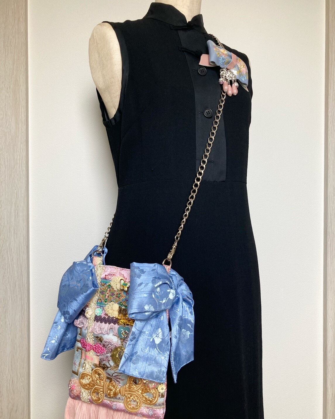 ポシェットの両端にはシャンタン素材の大きなリボンが付いているので、サイドから見ても立体的な可愛さがあります。