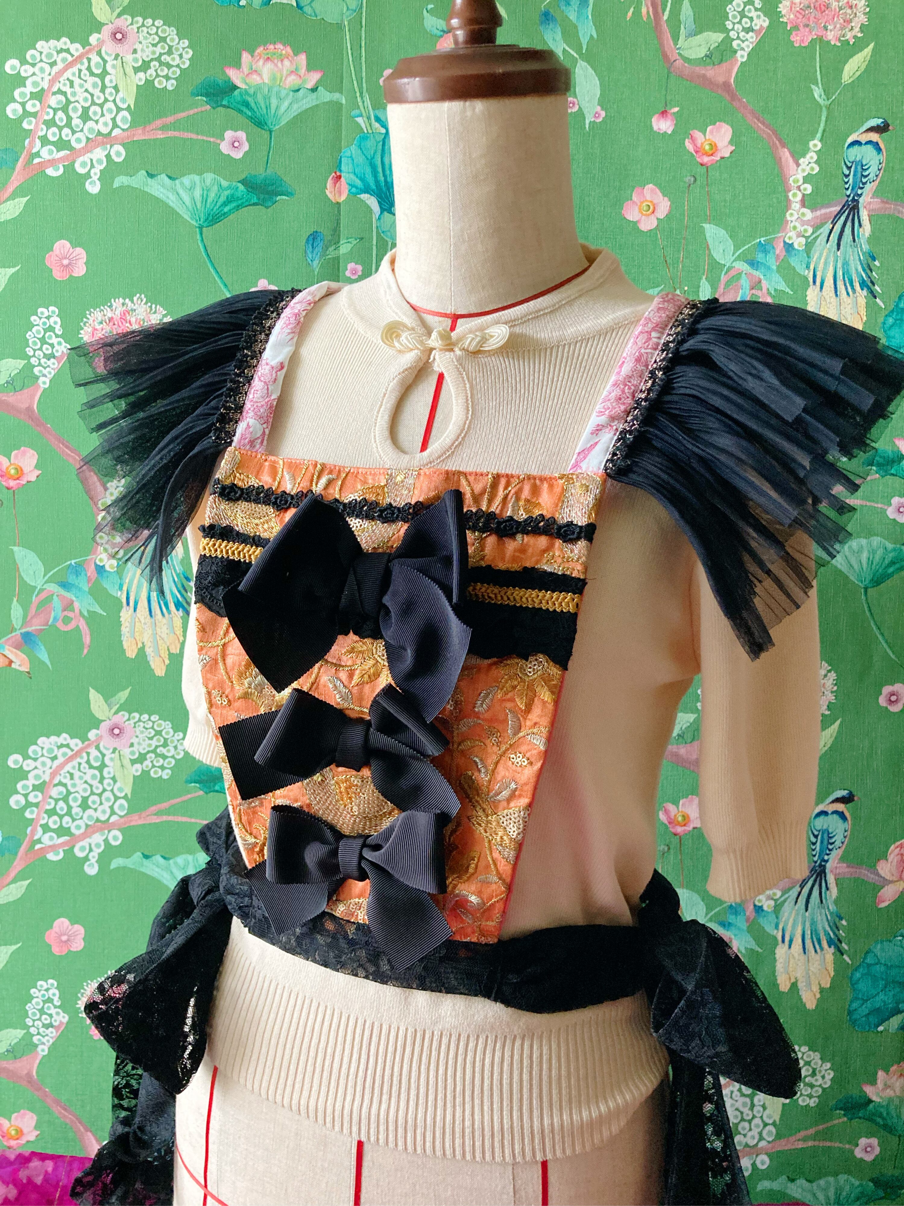 上半身を着飾るストマッカー風のダブリエ。普段のお洋服を一変させる装飾に特化した衣装的ファッションアイテムです