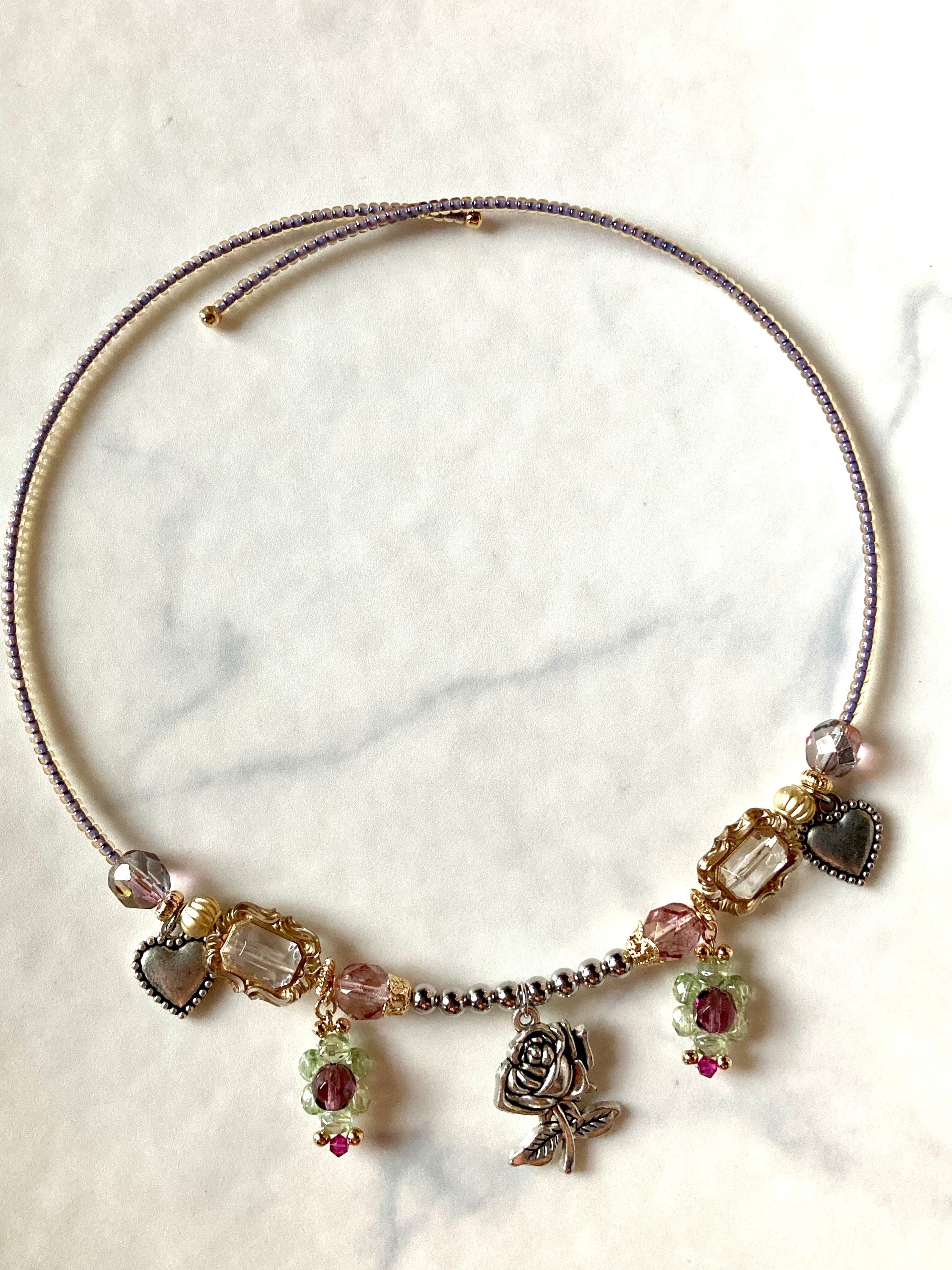 RinRinDollのハンドメイドアクセサリーブランド、Lumireveのビジューを使用したワイヤーチョーカー。