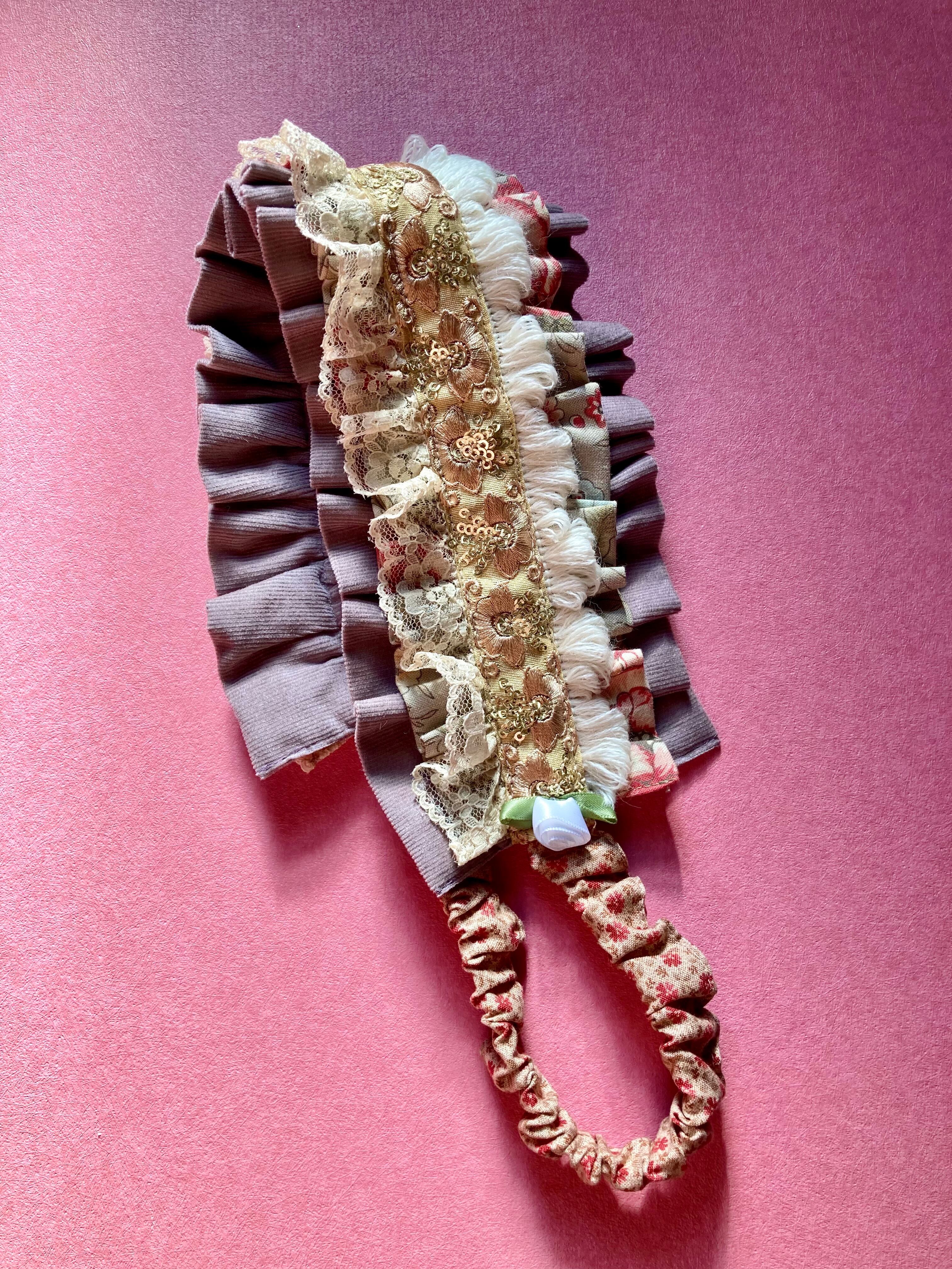 ヘッドドレスをもっとカジュアルに着用したくて制作したシリーズです。ヘッドドレスのディティールやシルエットを出来るだけシンプルに纏め、ヘアバンド型で制作しました。