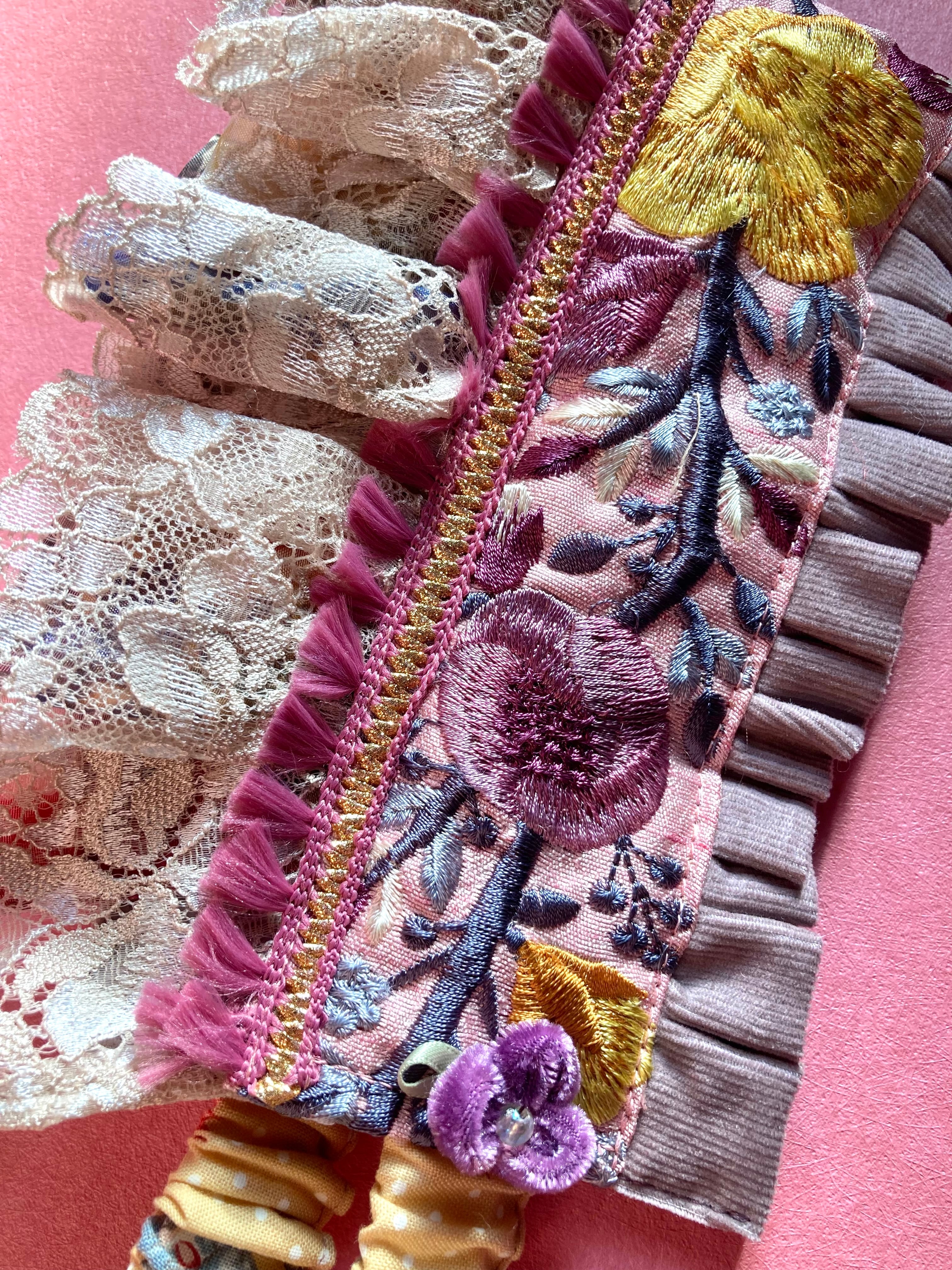 素材には日本製、海外製の生地、刺繍リボン、レースなどを使用しています。