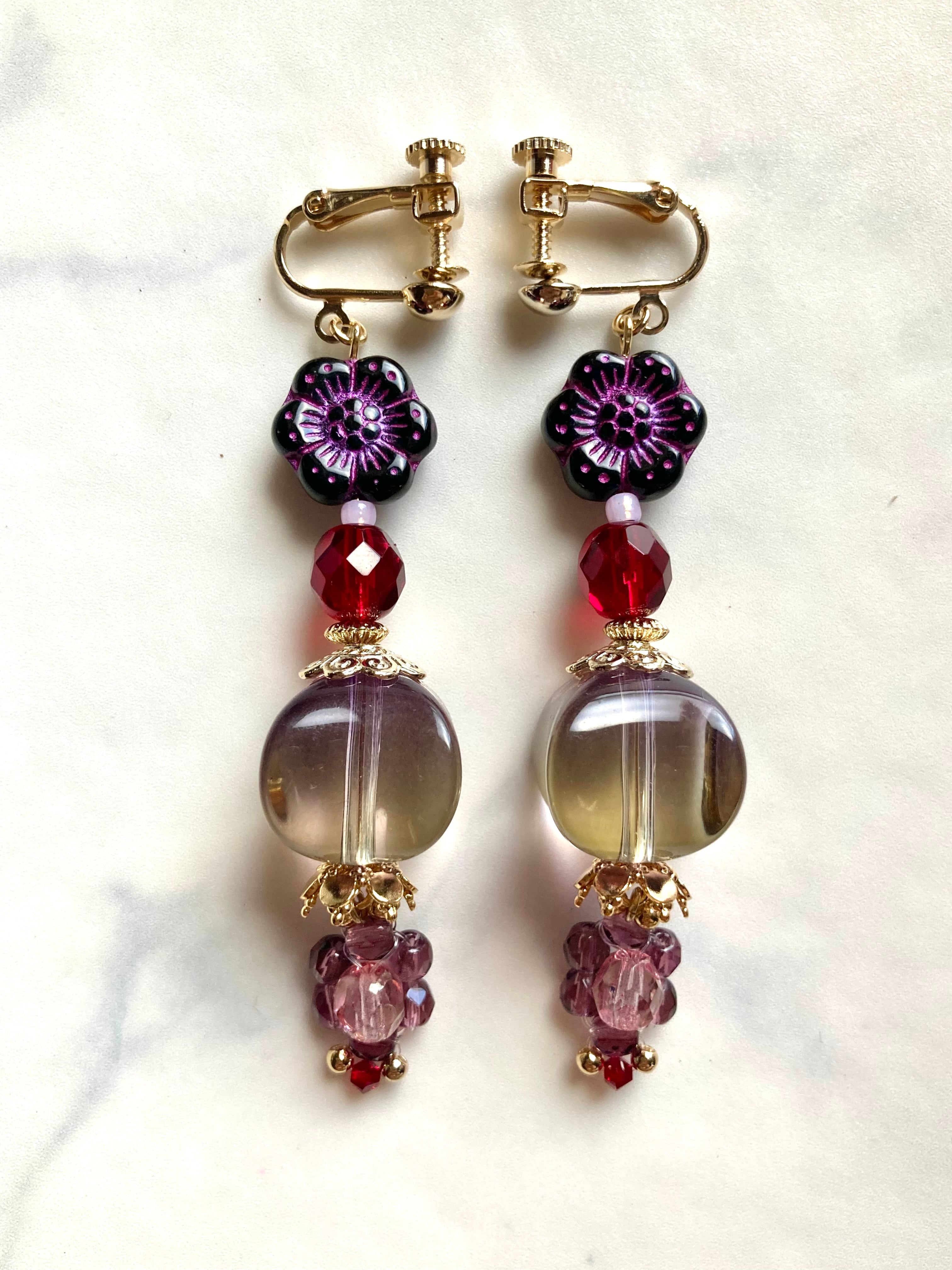 素材:チェコ硝子ビーズ、日本製アクリルビーズなど