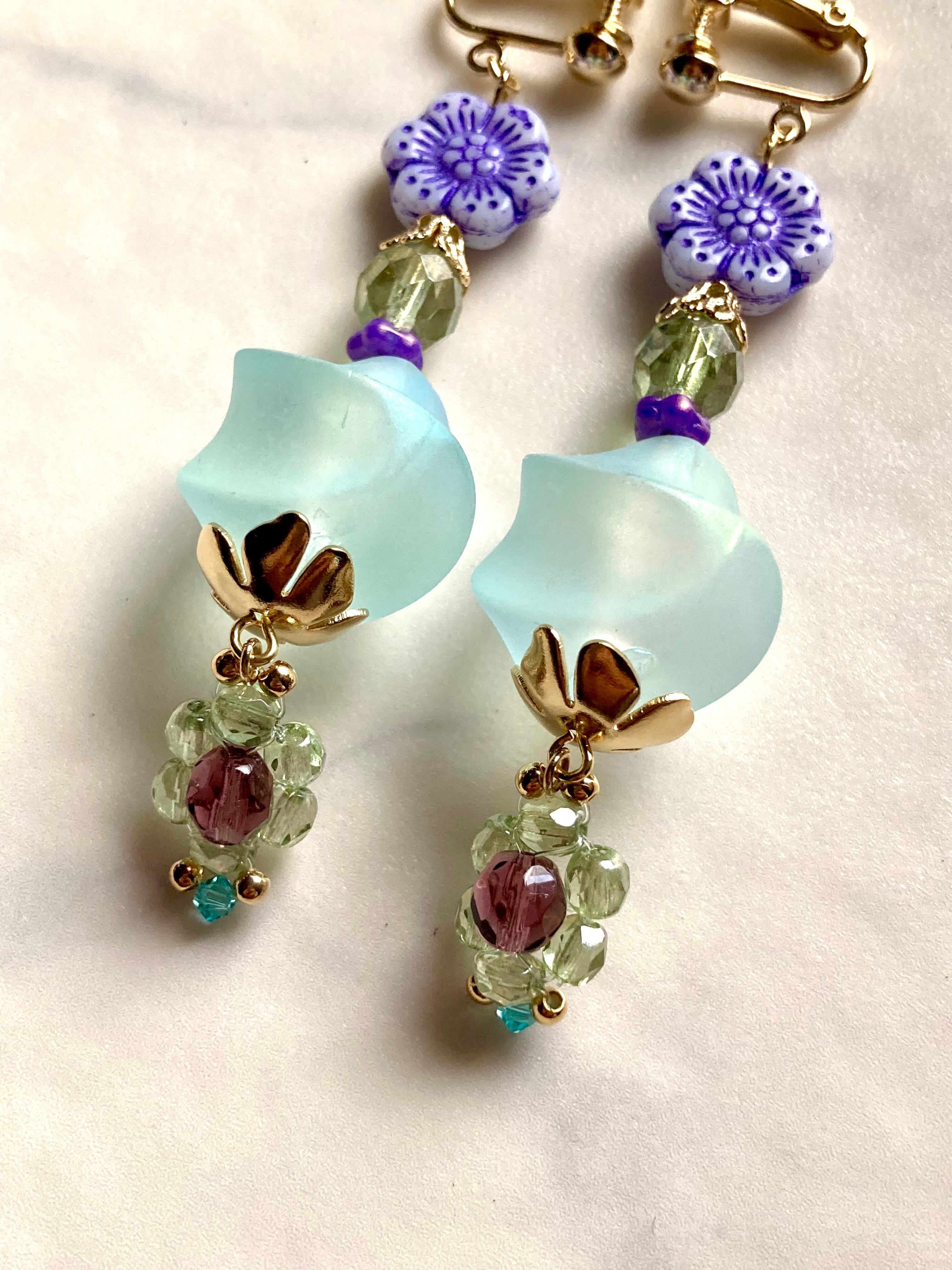 素材:チェコ硝子ビーズ、日本製アクリルビーズなど