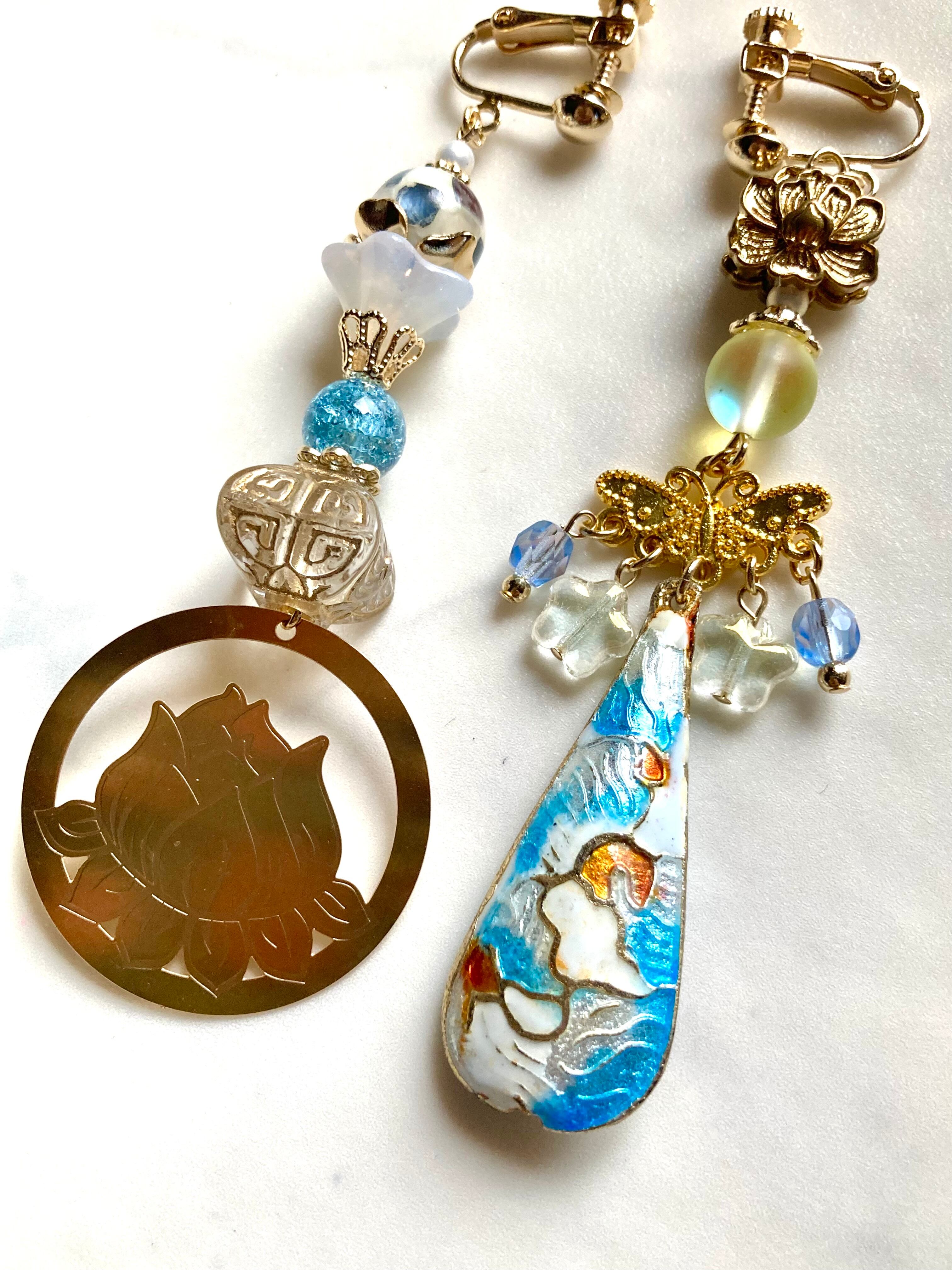 素材:チェコ硝子ビーズ、七宝ビーズなど