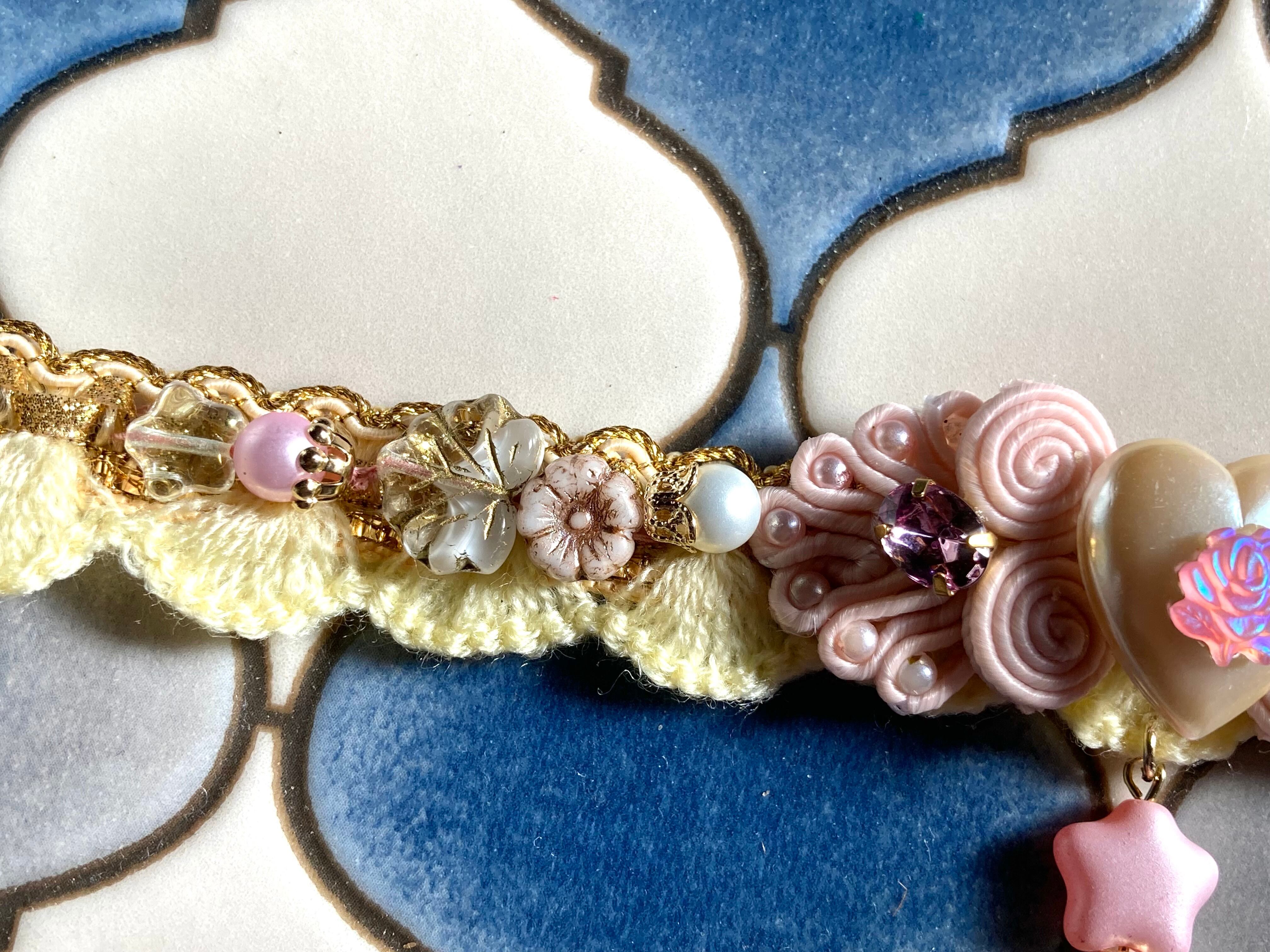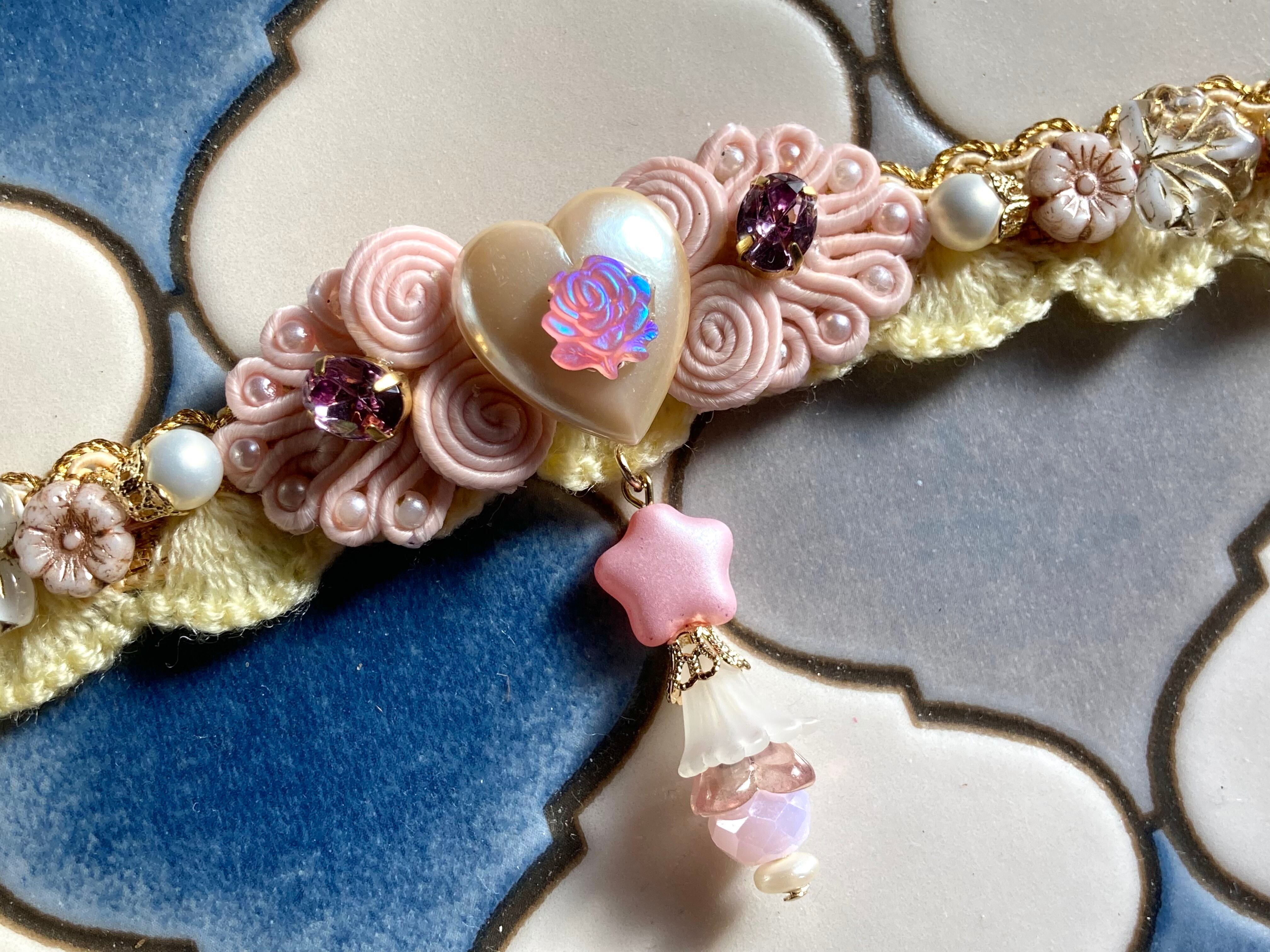 ミルキーなカラーでまとめたロマンティックなチョーカーです。