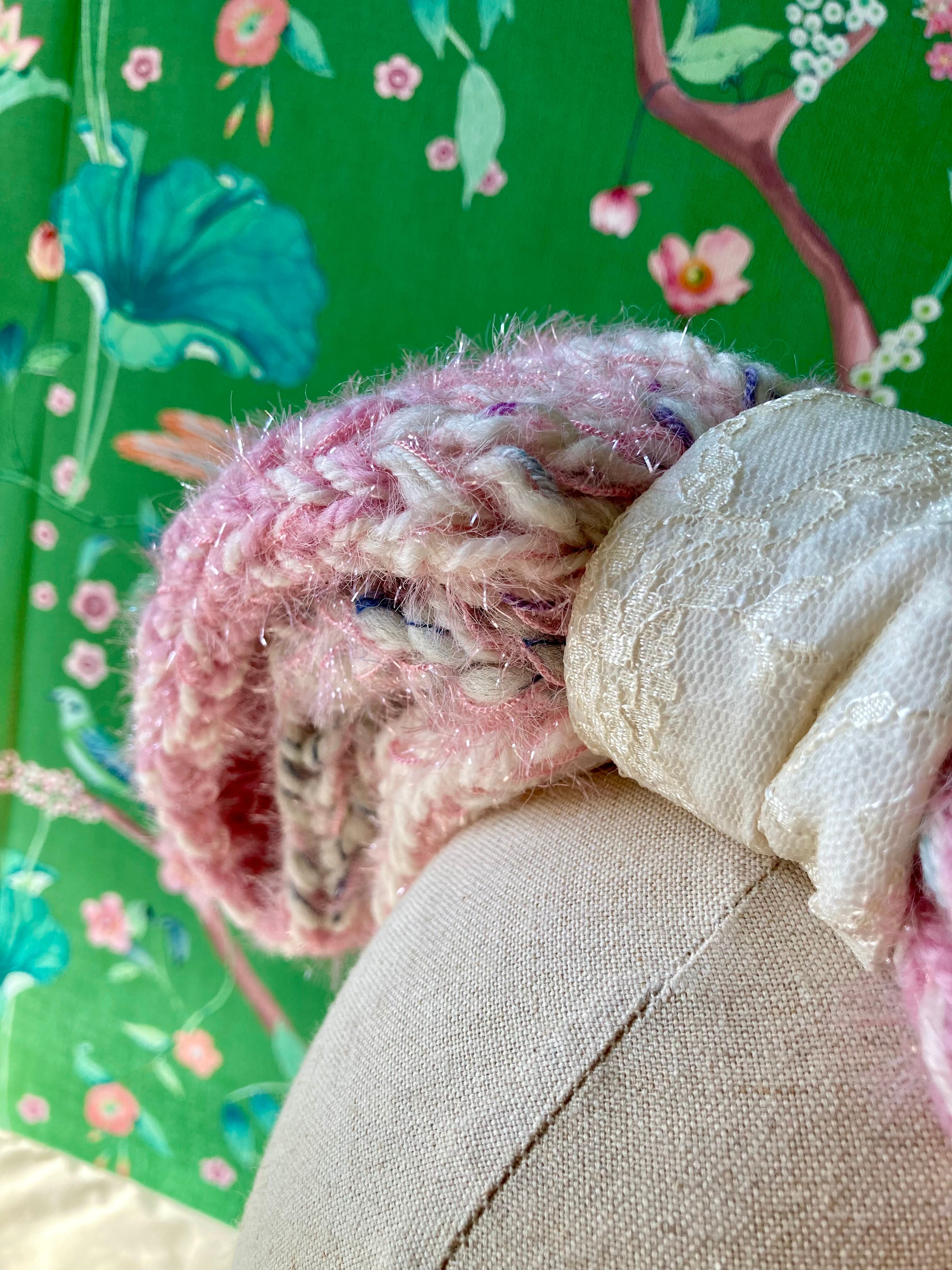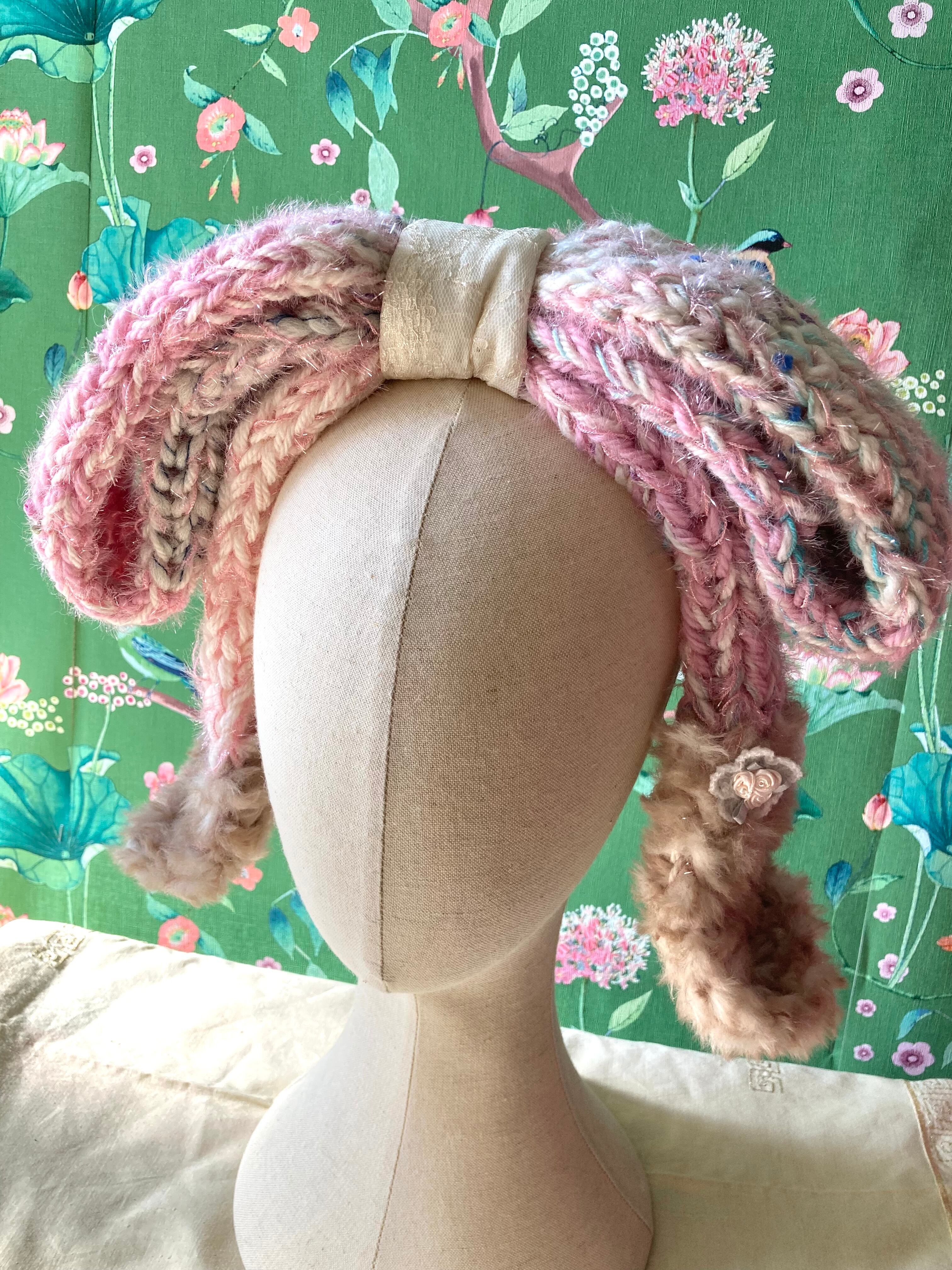 着けると物語の主人公になれるようなとっても大きなニットのヘアバンド。