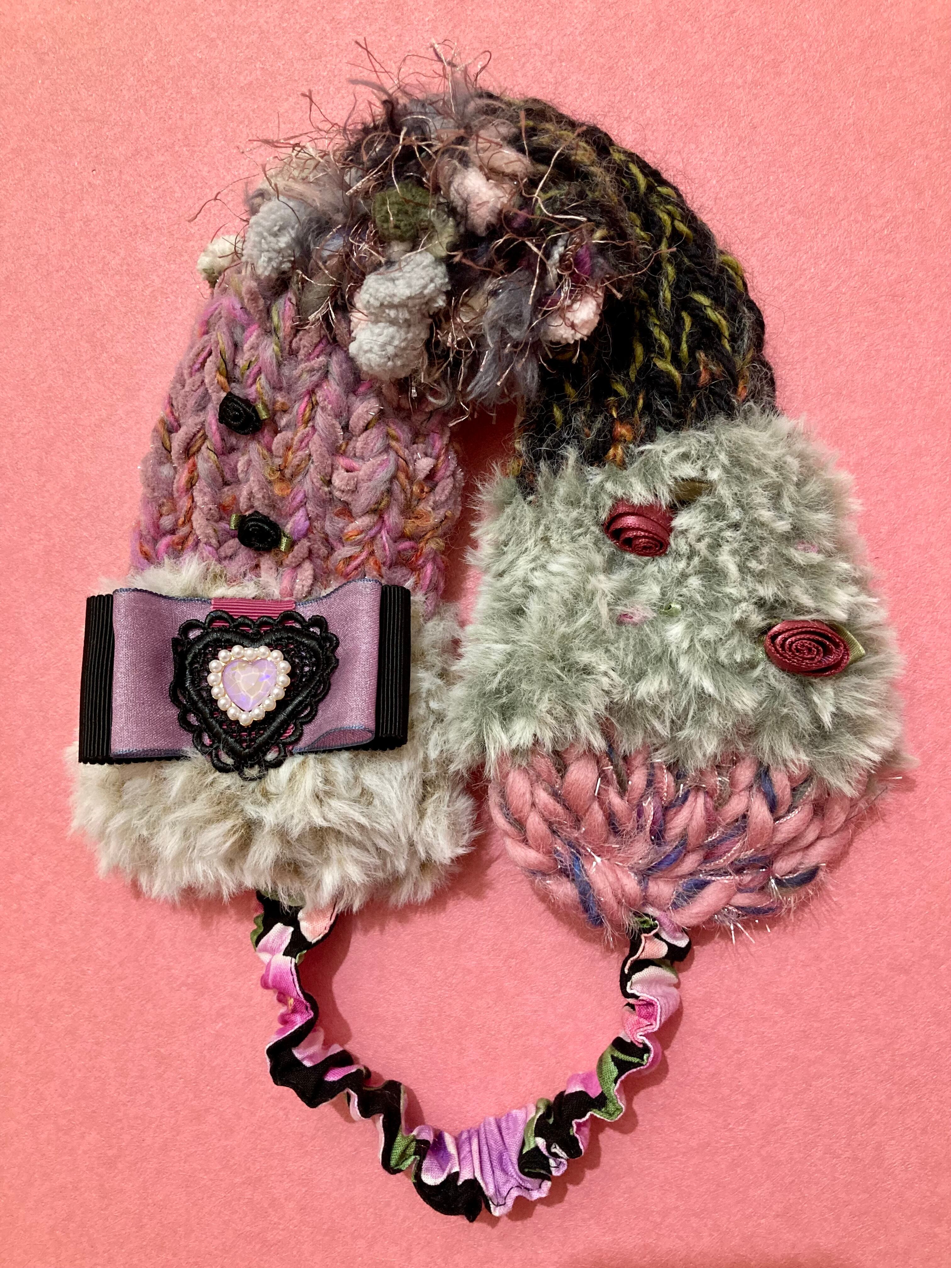 寒い寒い極寒の地で、聖獣の毛から糸を紡いで編んだニットヘアバンド。