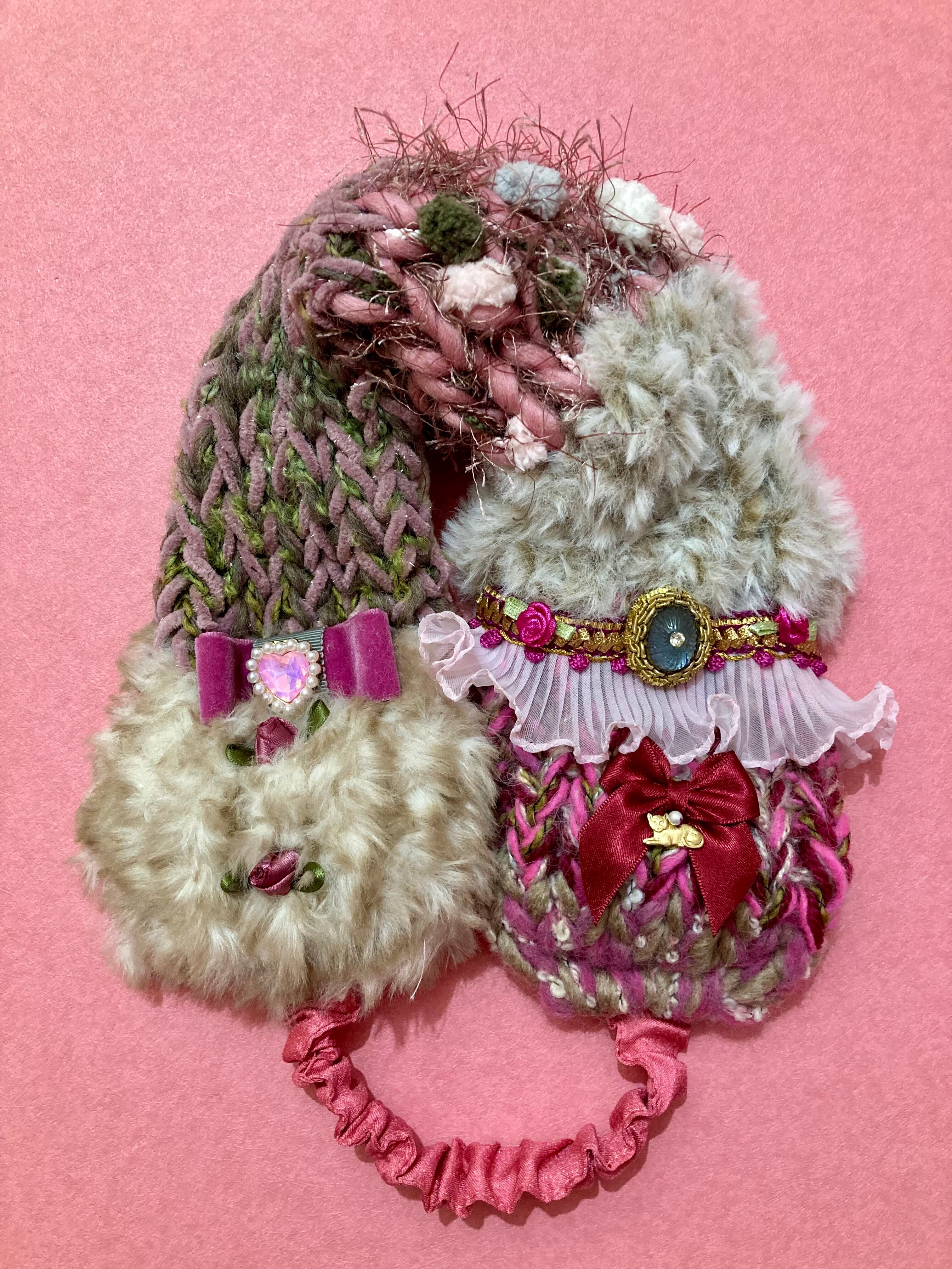 素材:ウール、アクリル、硝子ビーズ、プラビーズなど