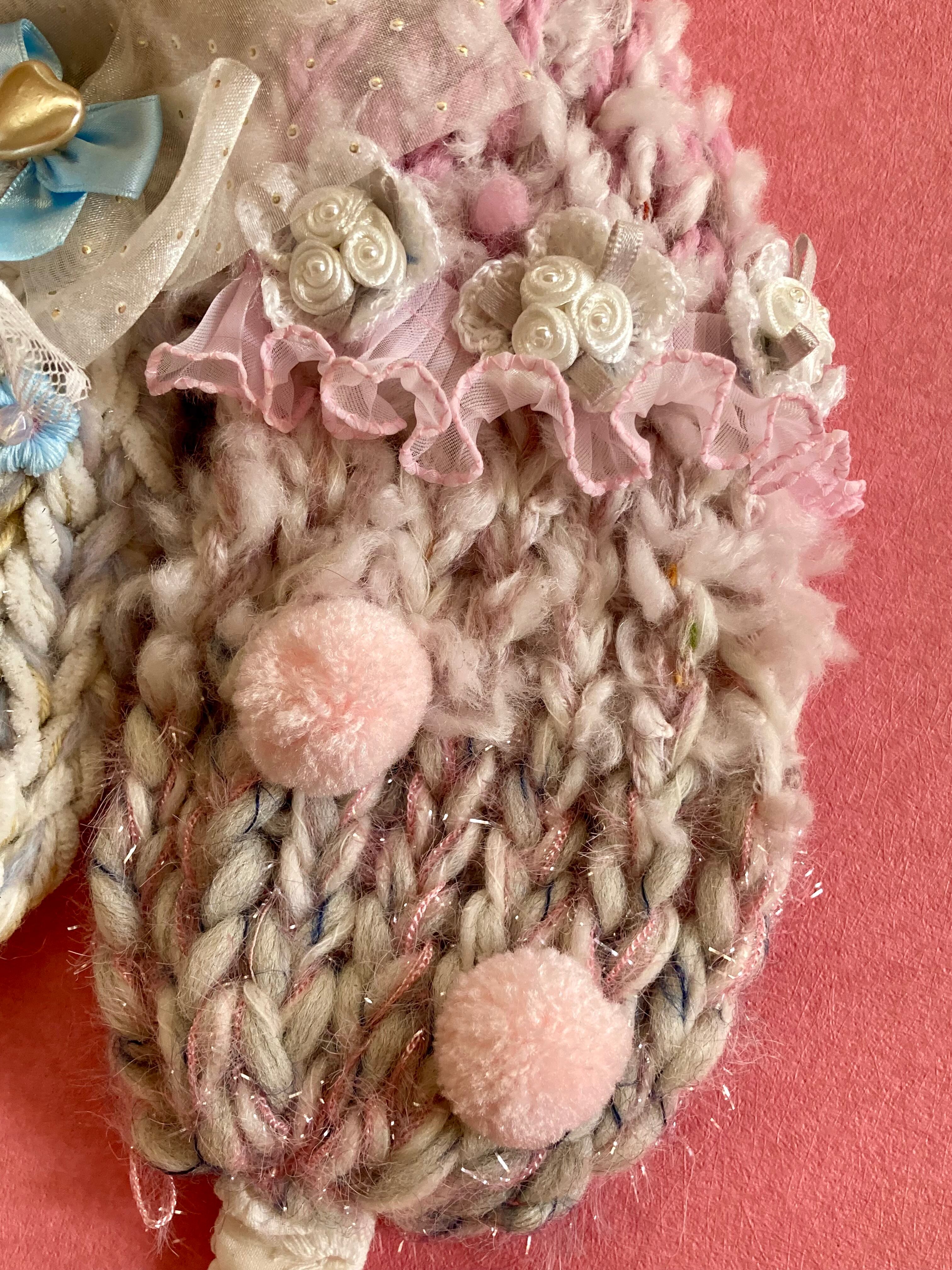素材:ウール、アクリル、硝子ビーズ、プラビーズなど