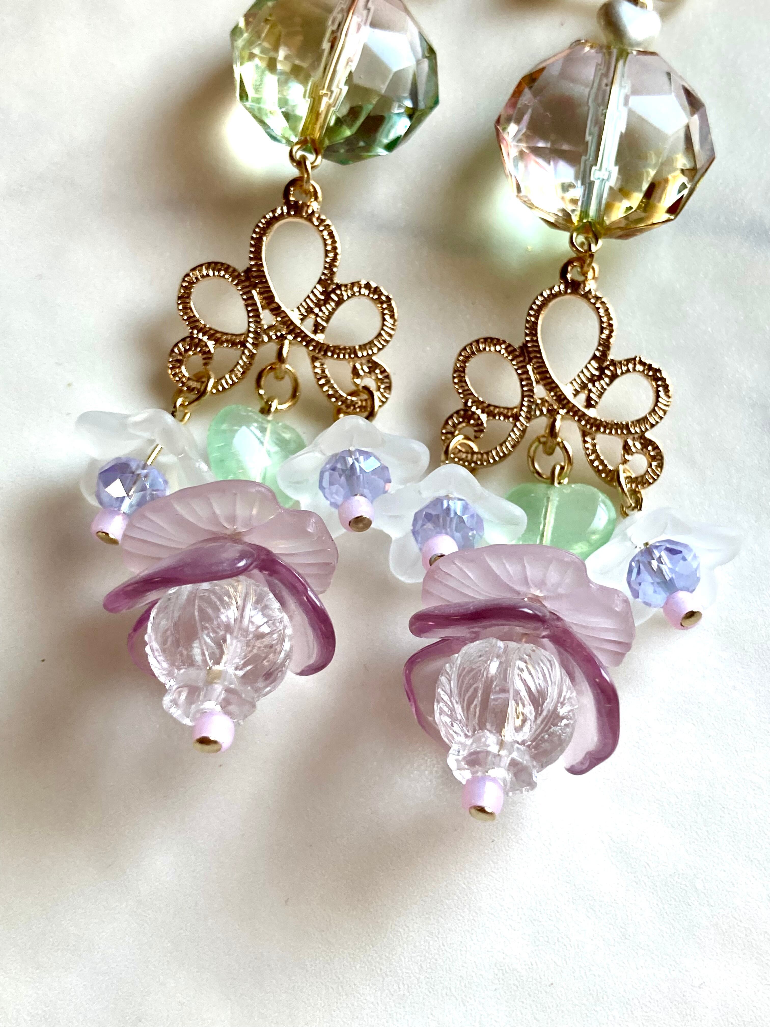 楽園の花畑をイメージしたパステルなシャボンカラーのビーズが印象的なデザインです。