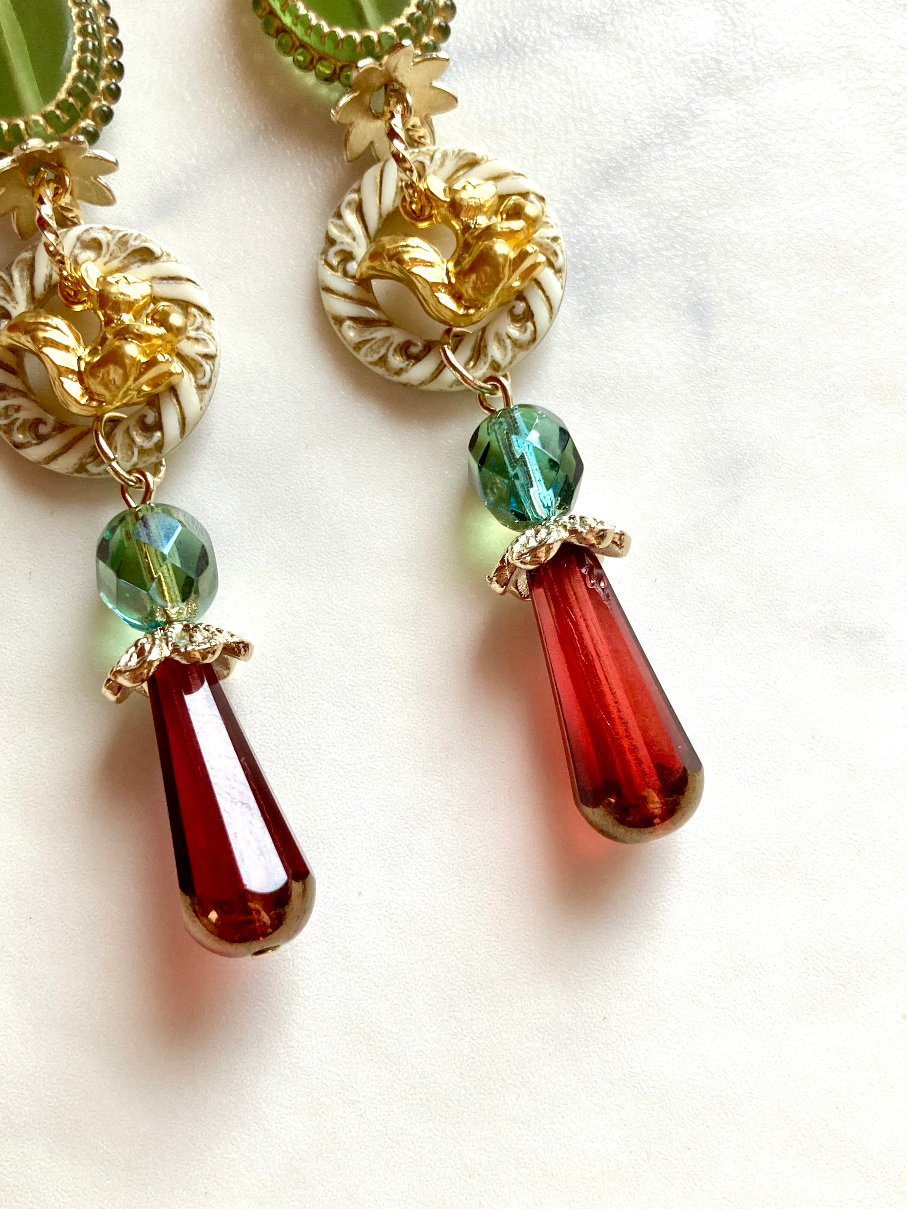 素材:樹脂パーツ、プラビーズ、ドイツ製アクリルビーズ、チェコ硝子ビーズなど