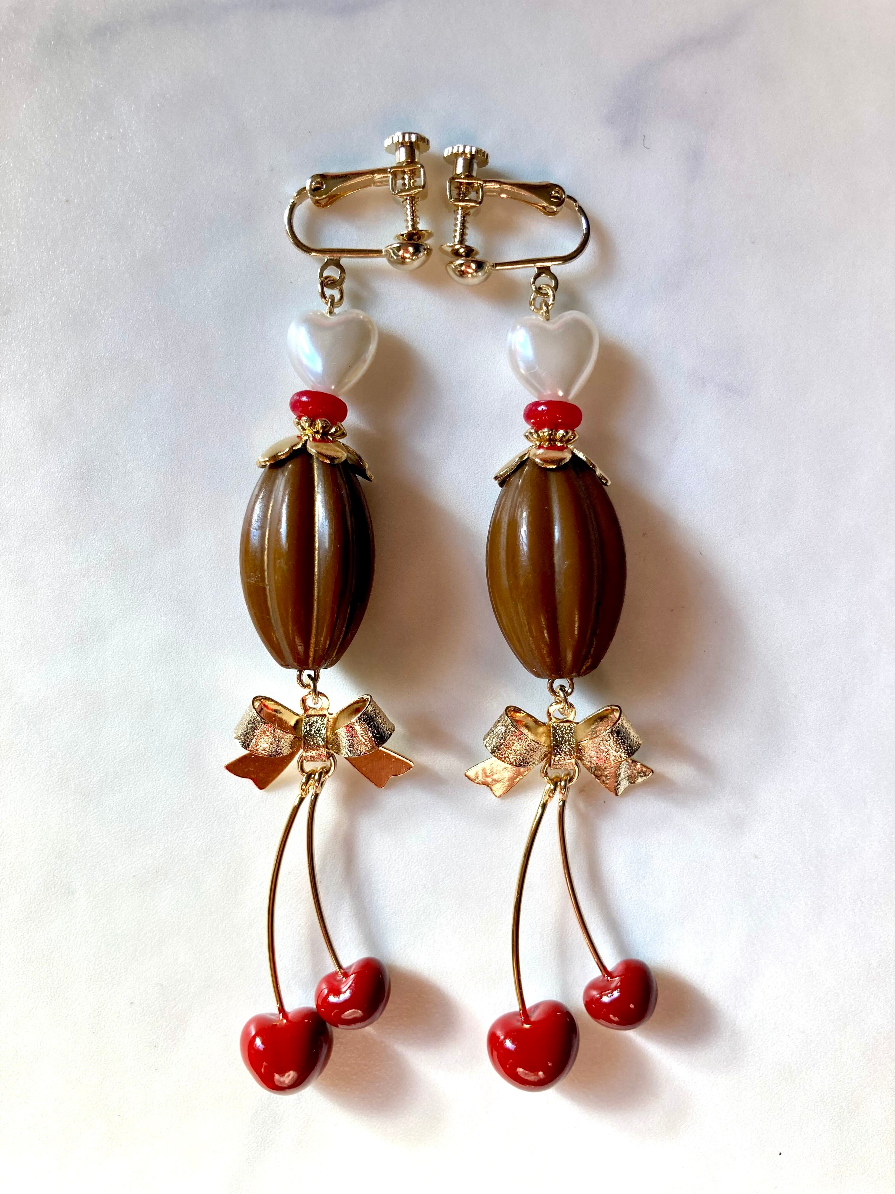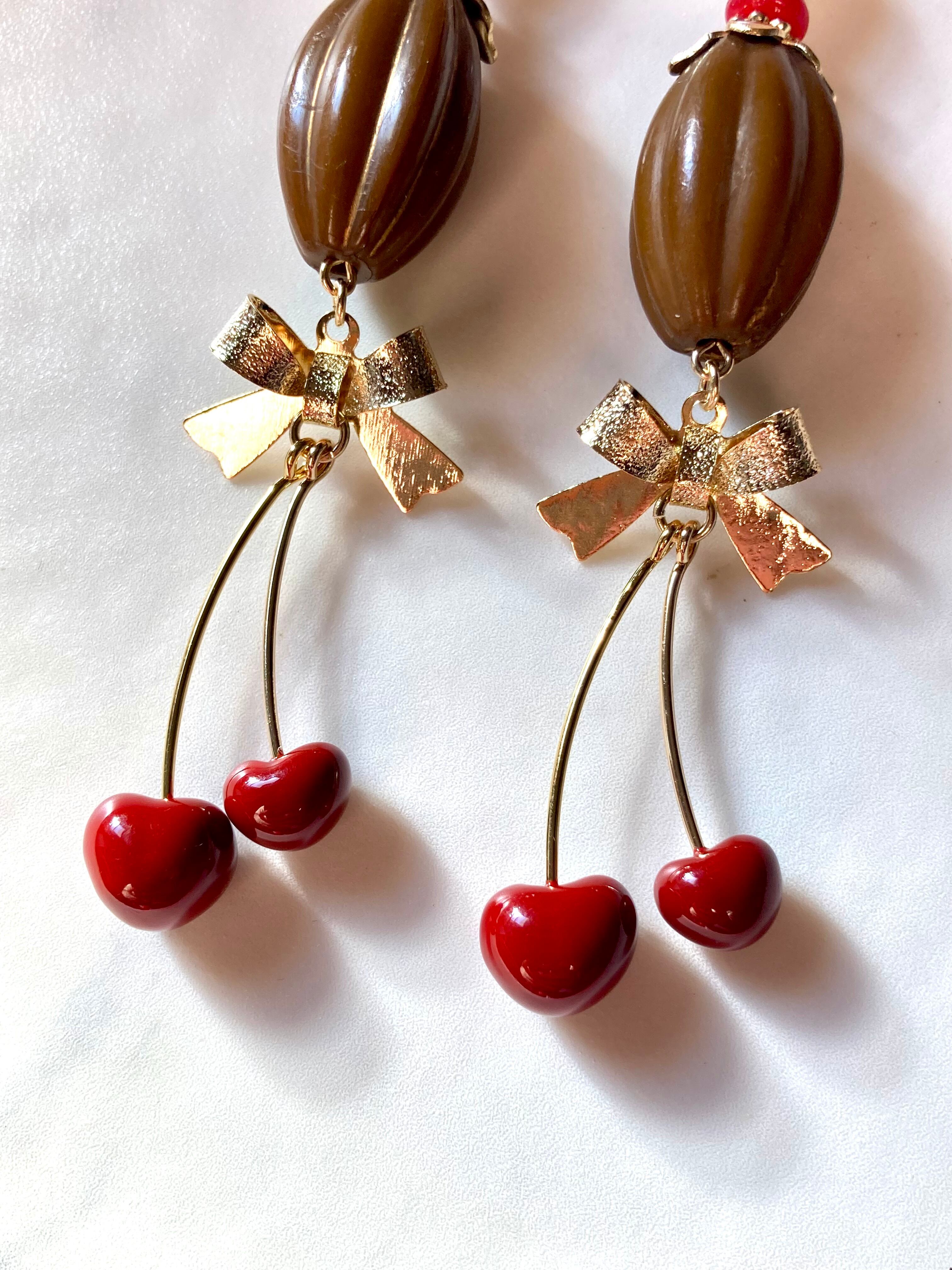 大きなチェリーチャームを使用して、大人の可愛いスイーツデザインに仕上げました。