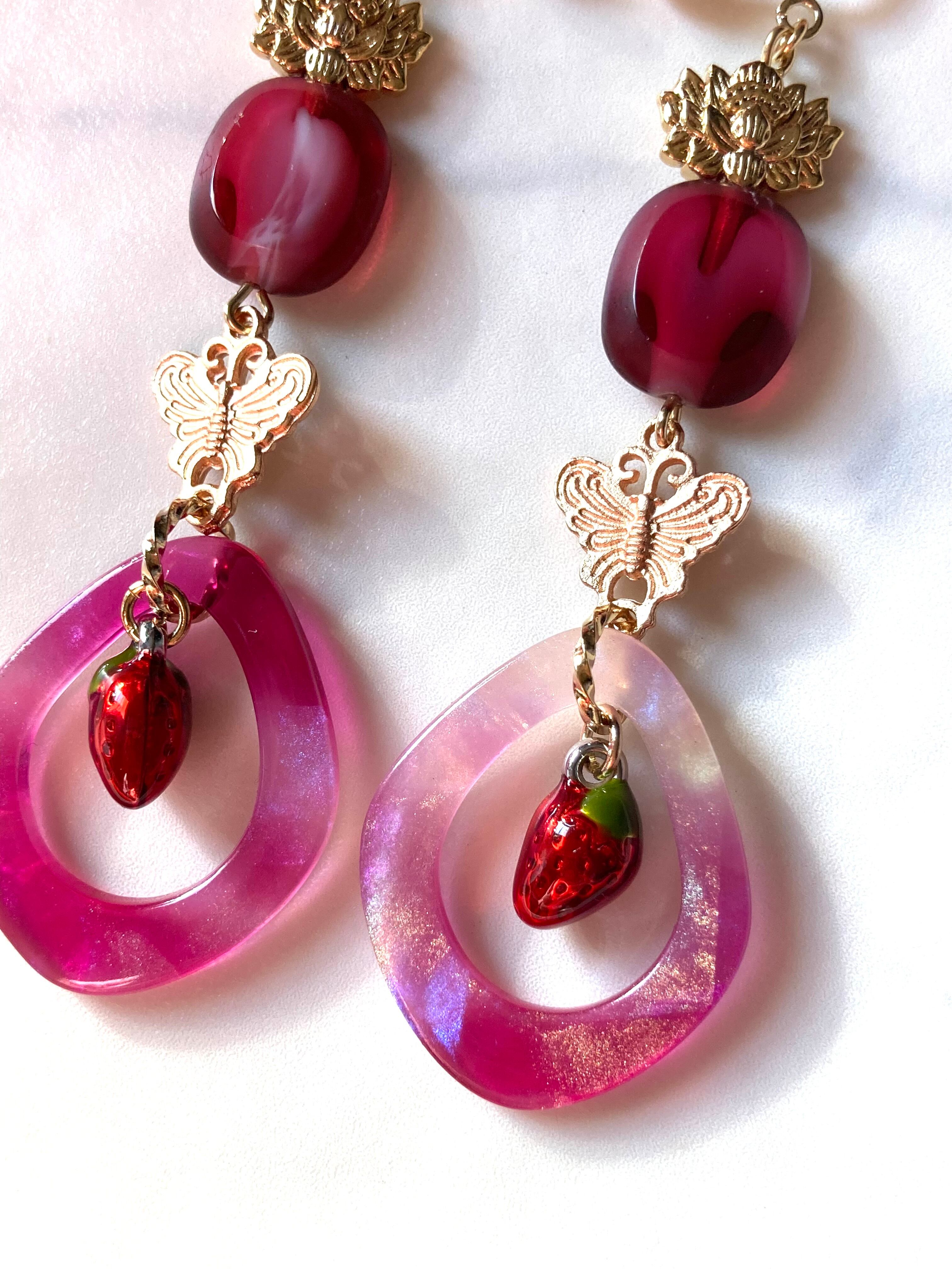 甘く煮詰めた果物の様な、思わず口にしたくなる色のビーズを使用して、杏味、龍井茶味、山査子、、、など珍しい味のキャンディをイメージして制作しました。