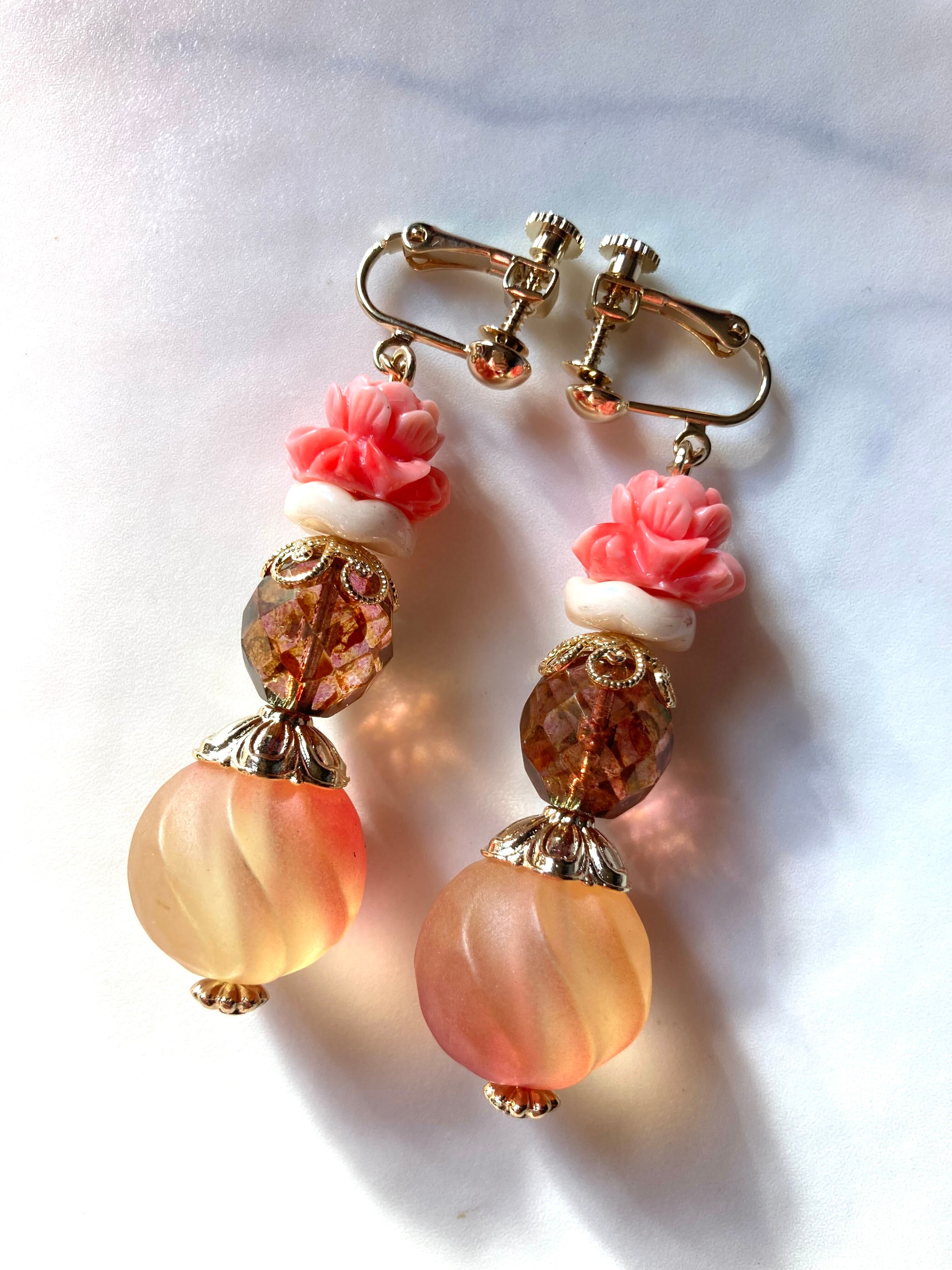 甘く煮詰めた果物の様な、思わず口にしたくなる色のビーズを使用して、杏味、龍井茶味、山査子、、、など珍しい味のキャンディをイメージして制作しました。