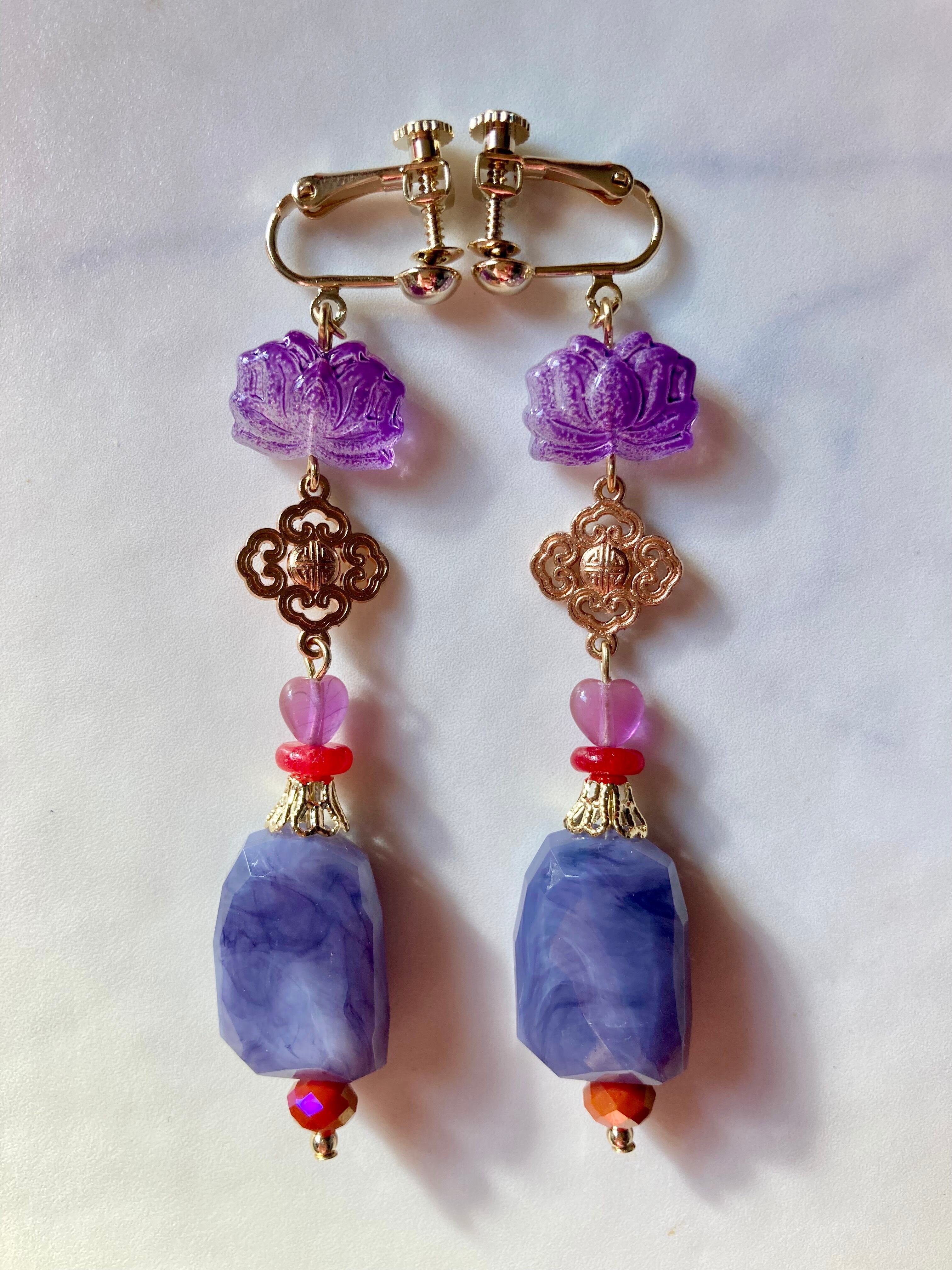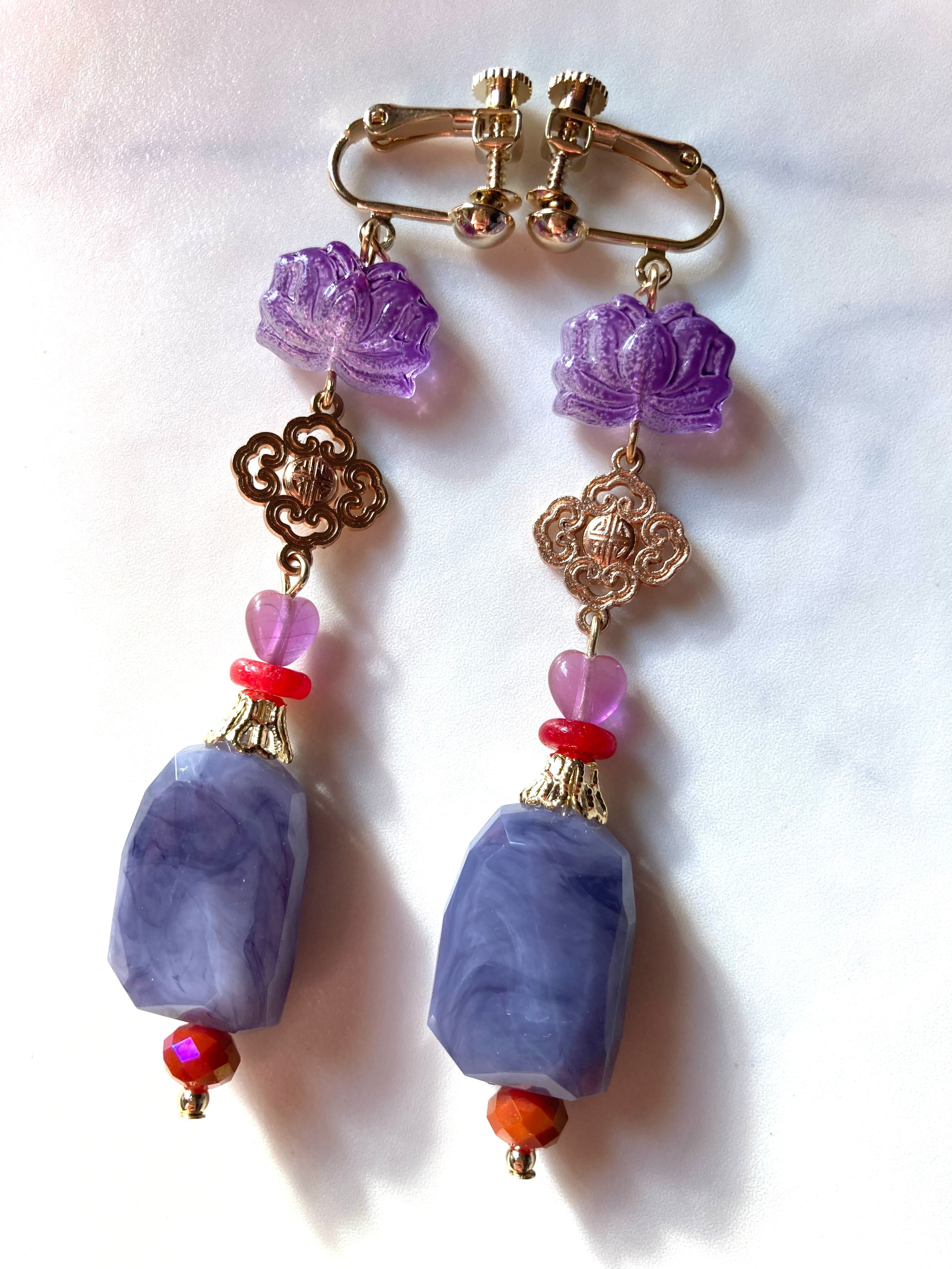 甘く煮詰めた果物の様な、思わず口にしたくなる色のビーズを使用して、杏味、龍井茶味、山査子、、、など珍しい味のキャンディをイメージして制作しました。