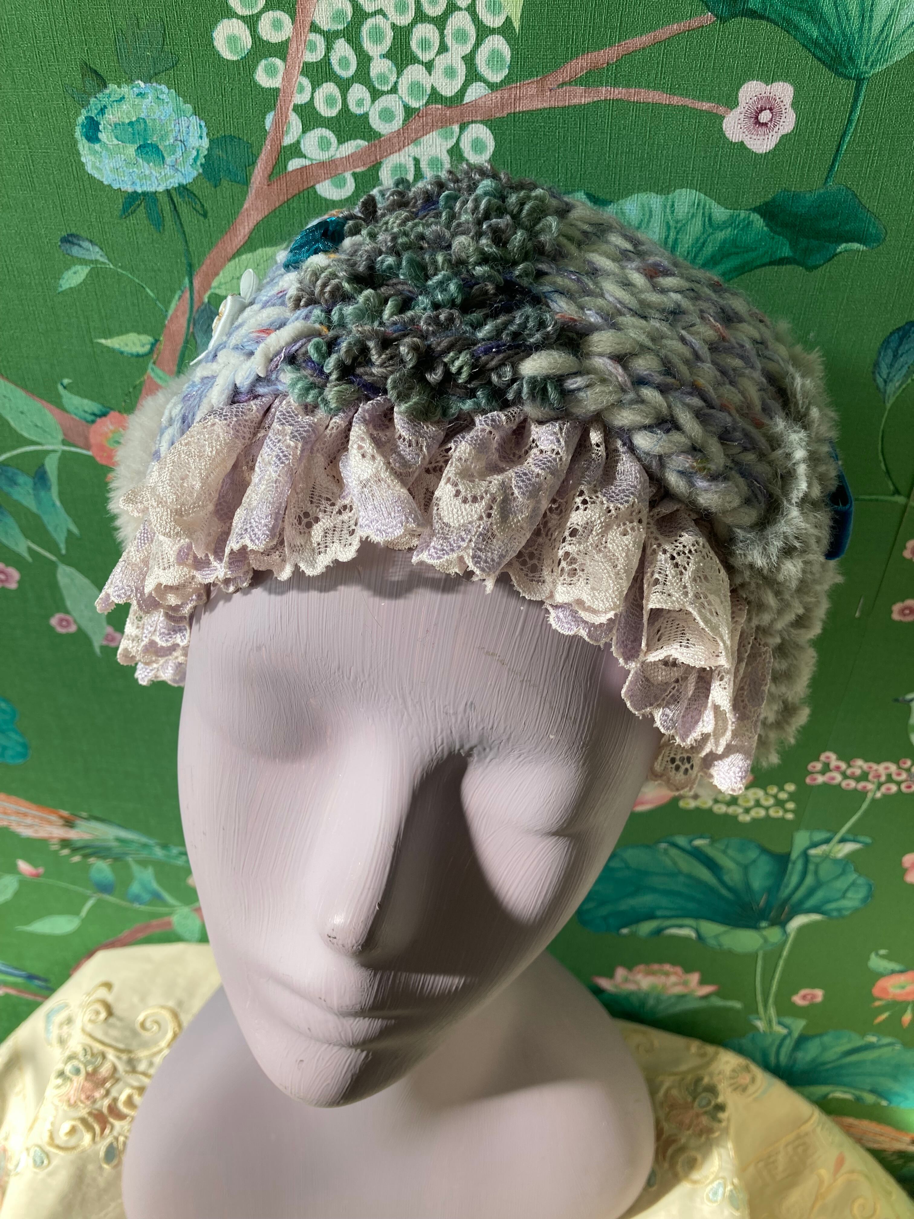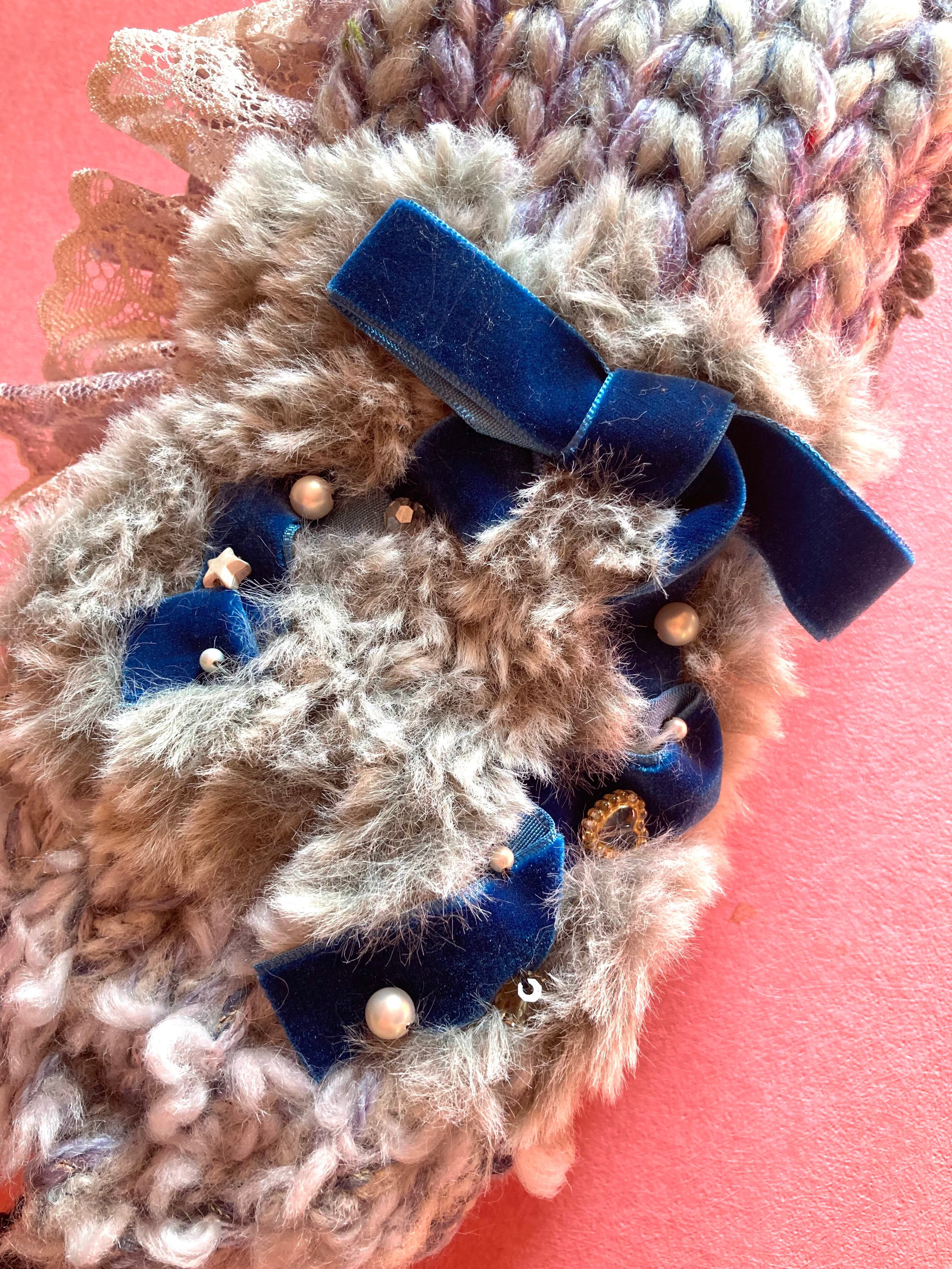 寒い寒い極寒の地で、聖獣の毛から糸を紡いで編んだニットヘアバンド。