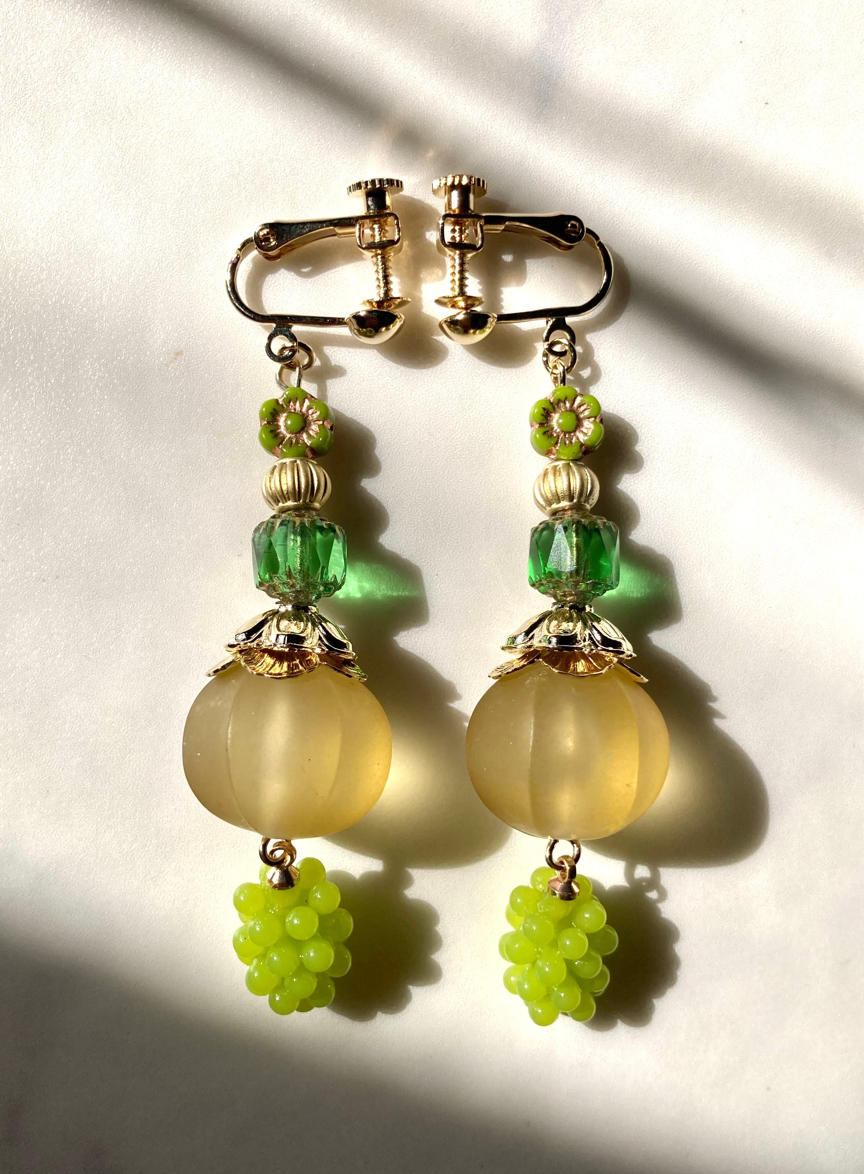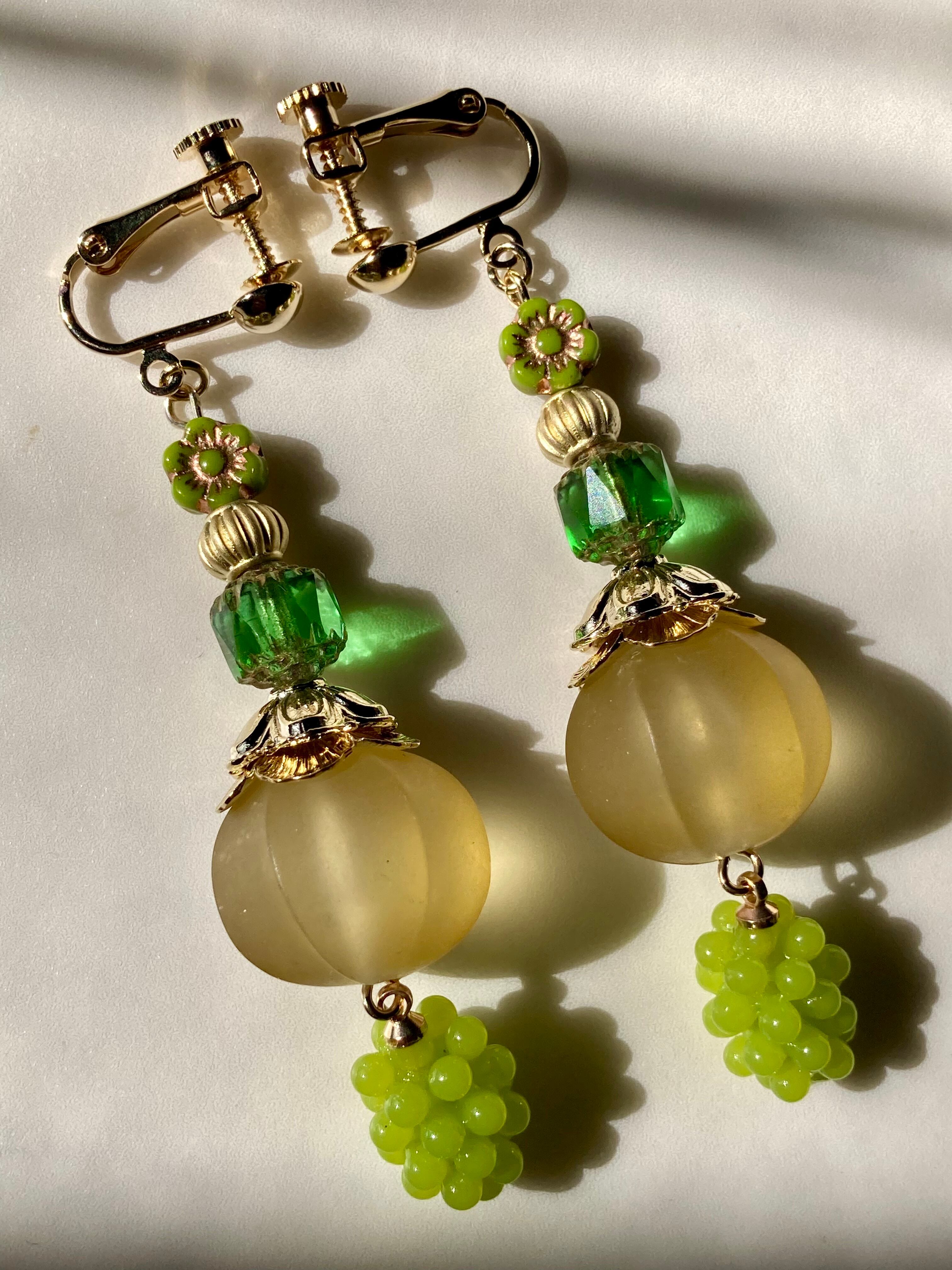 甘く煮詰めた果物の様な、思わず口にしたくなる色のビーズを使用して、杏味、龍井茶味、山査子、、、など珍しい味のキャンディをイメージして制作しました。