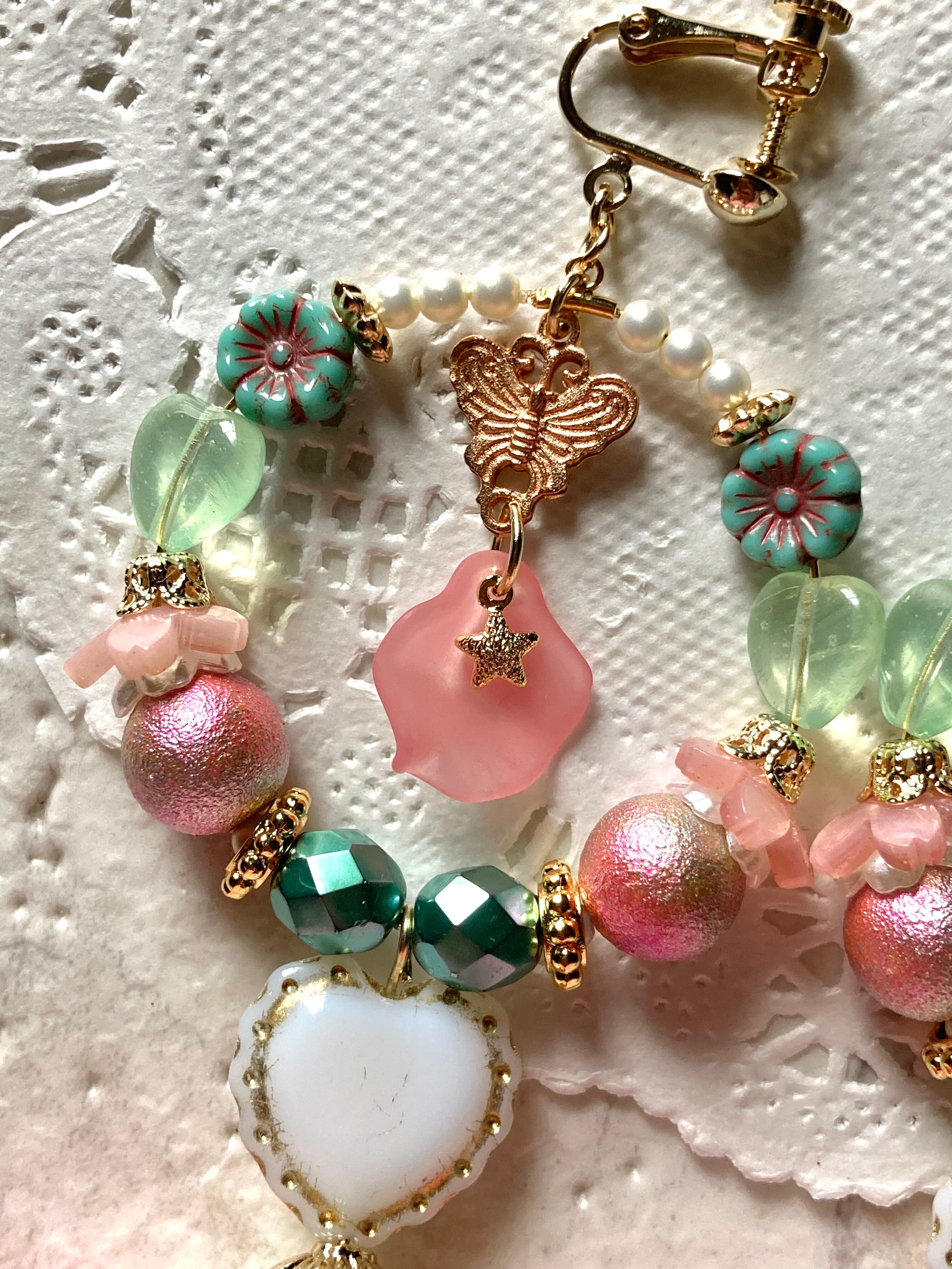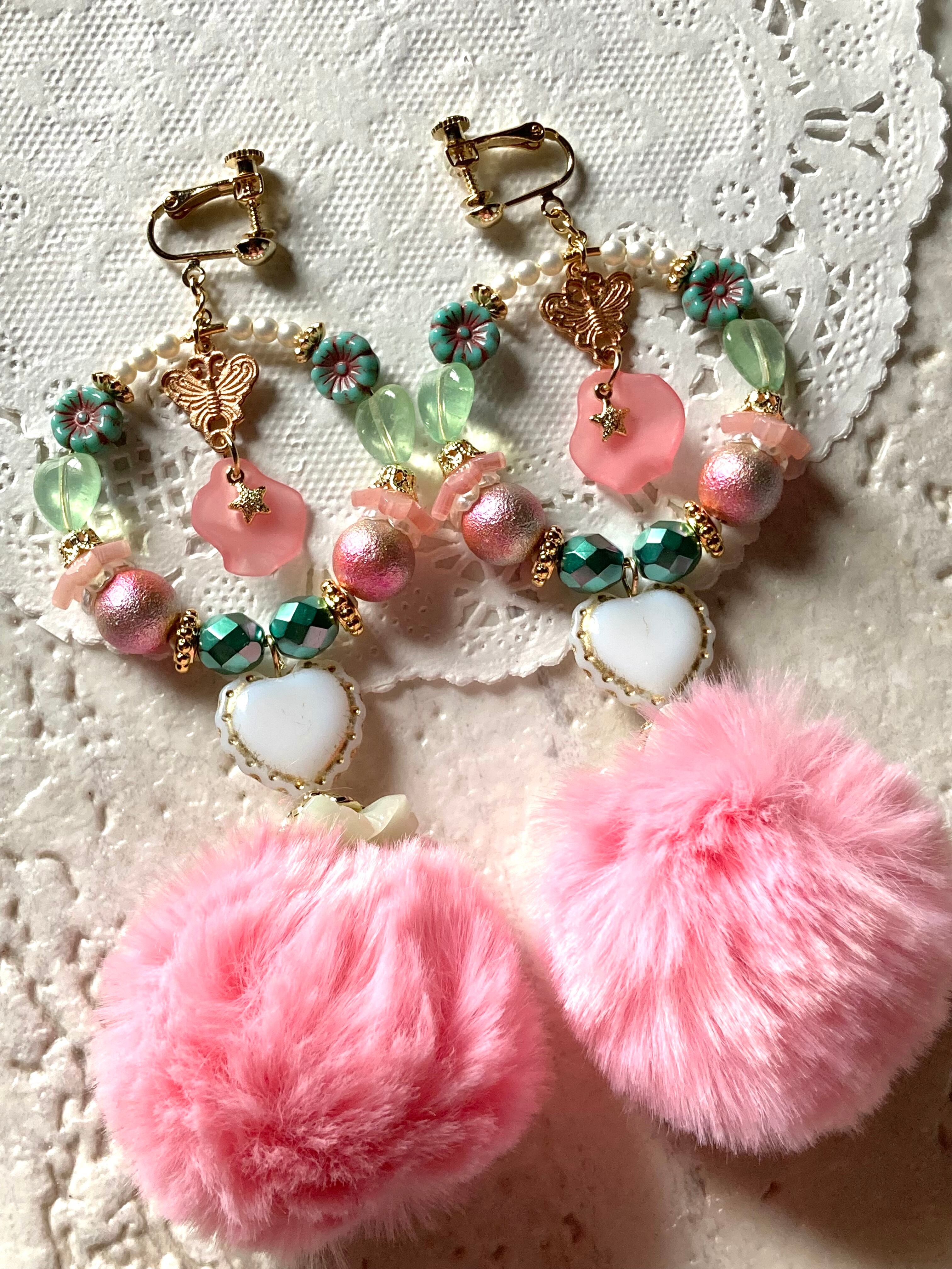 素材:チェコ硝子ビーズ、日本製アクリルビーズ、キャストパーツ、フェイクファーなど
