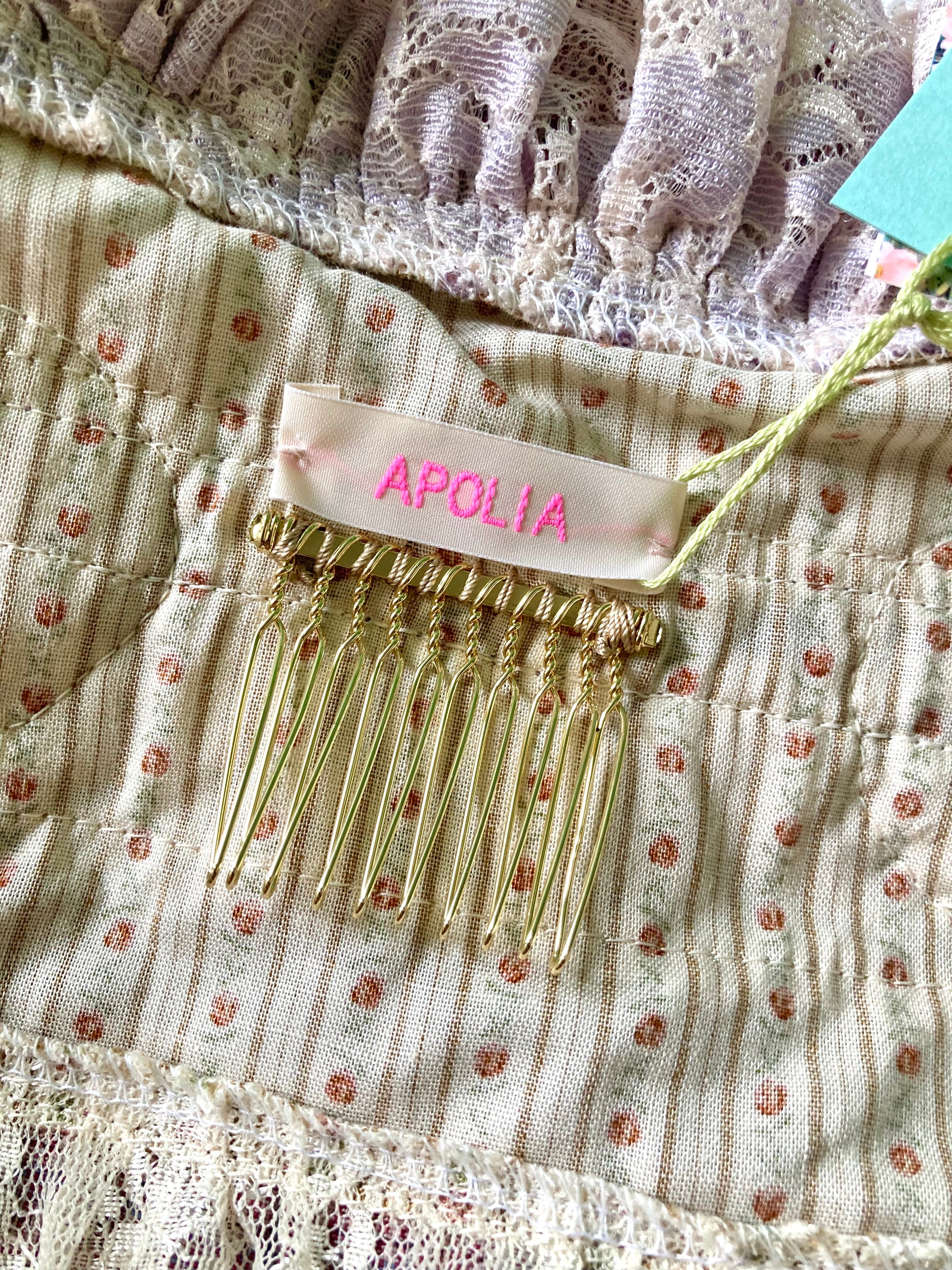 バブーシュカ風に後ろのレースはちょっぴり長め。ヴィンテージレースを惜しみなく使用したどこから見ても可愛いピクニックスタイルです。