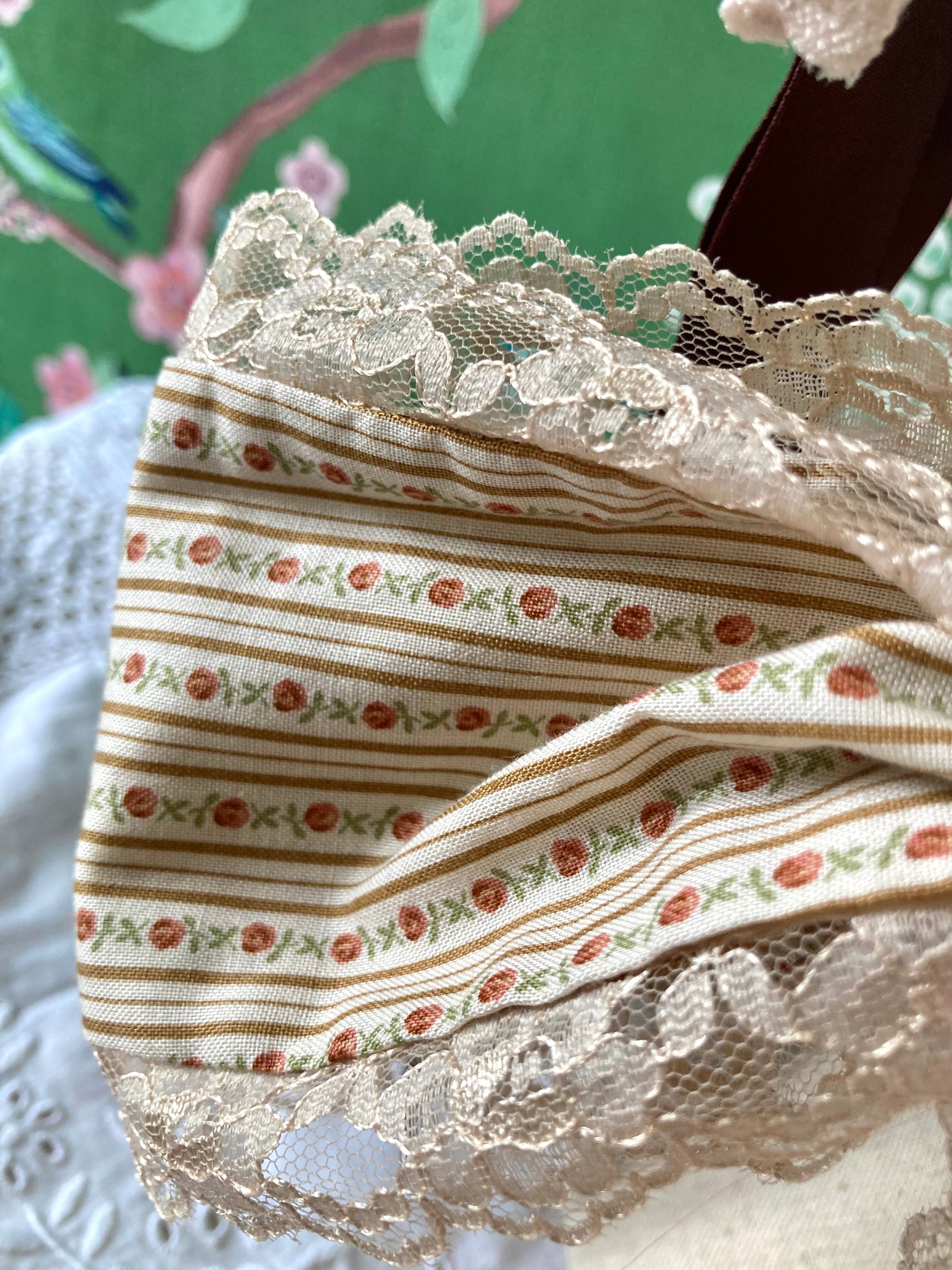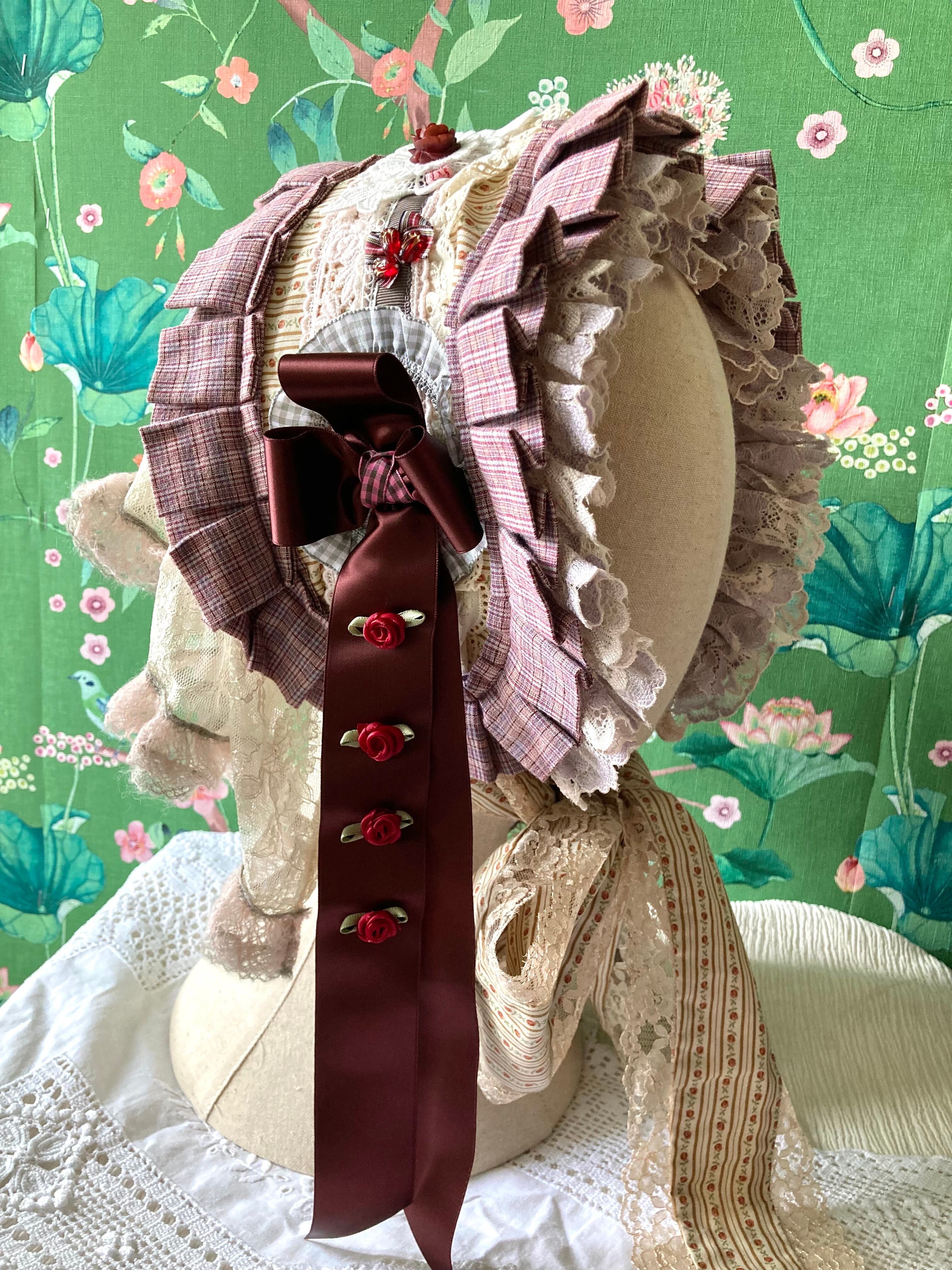 ヴィクトリア朝時代のボンネットをピクニックにぴったりなバブーシュカ風に仕上げたヴィクトリアンバブーシュカ。