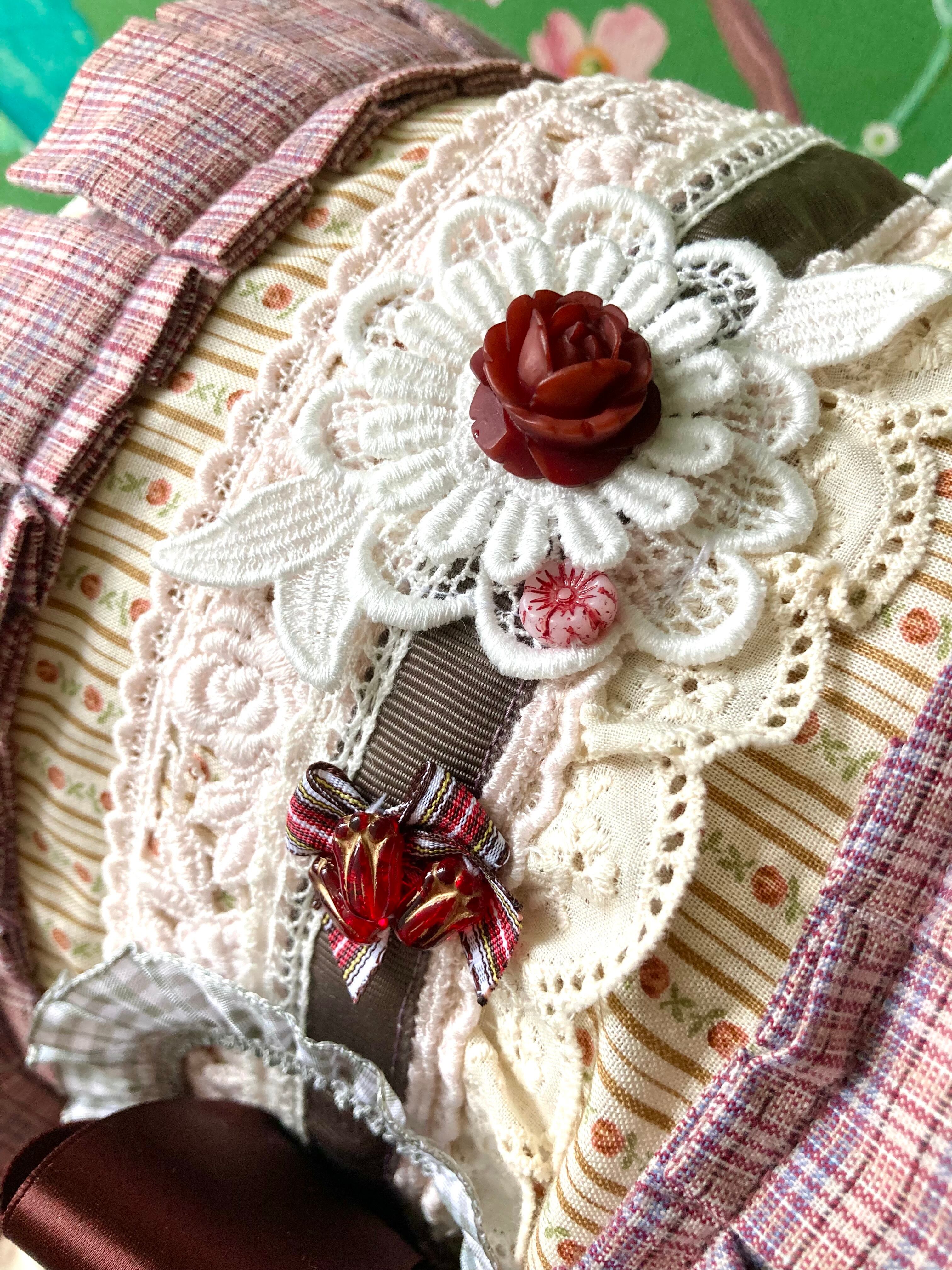 現在では手に入らないビンテージサテンリボンをたっぷりと使用しました。