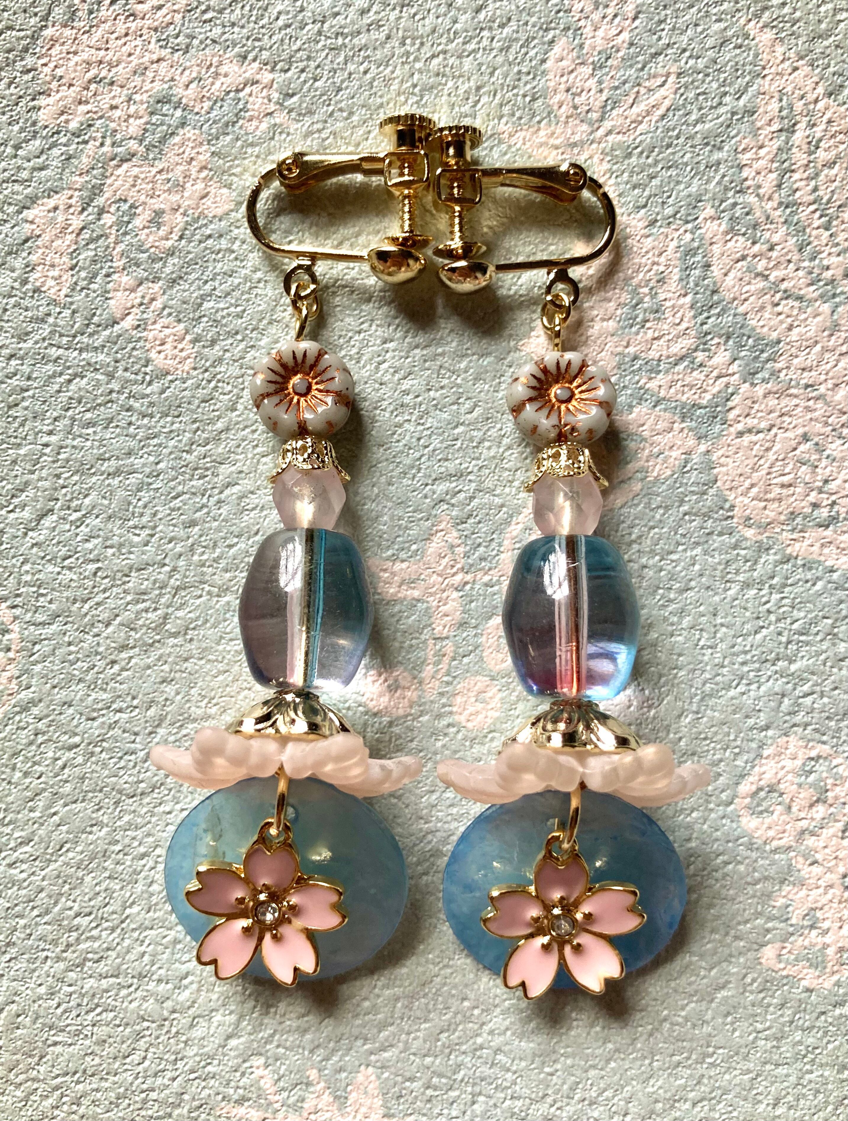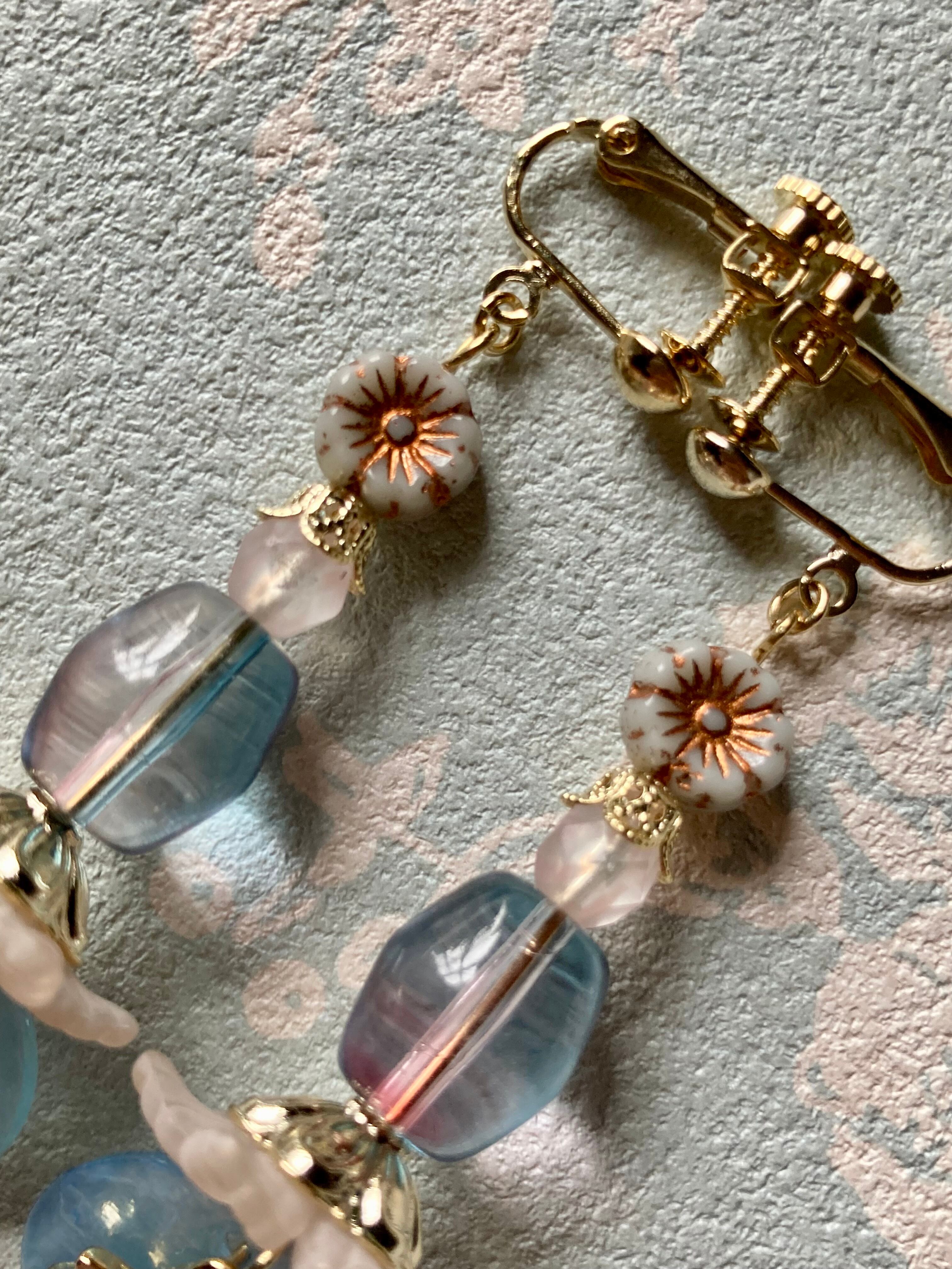 素材:チェコ硝子ビーズ、シェル、日本製アクリルビーズ、キャストパーツなど