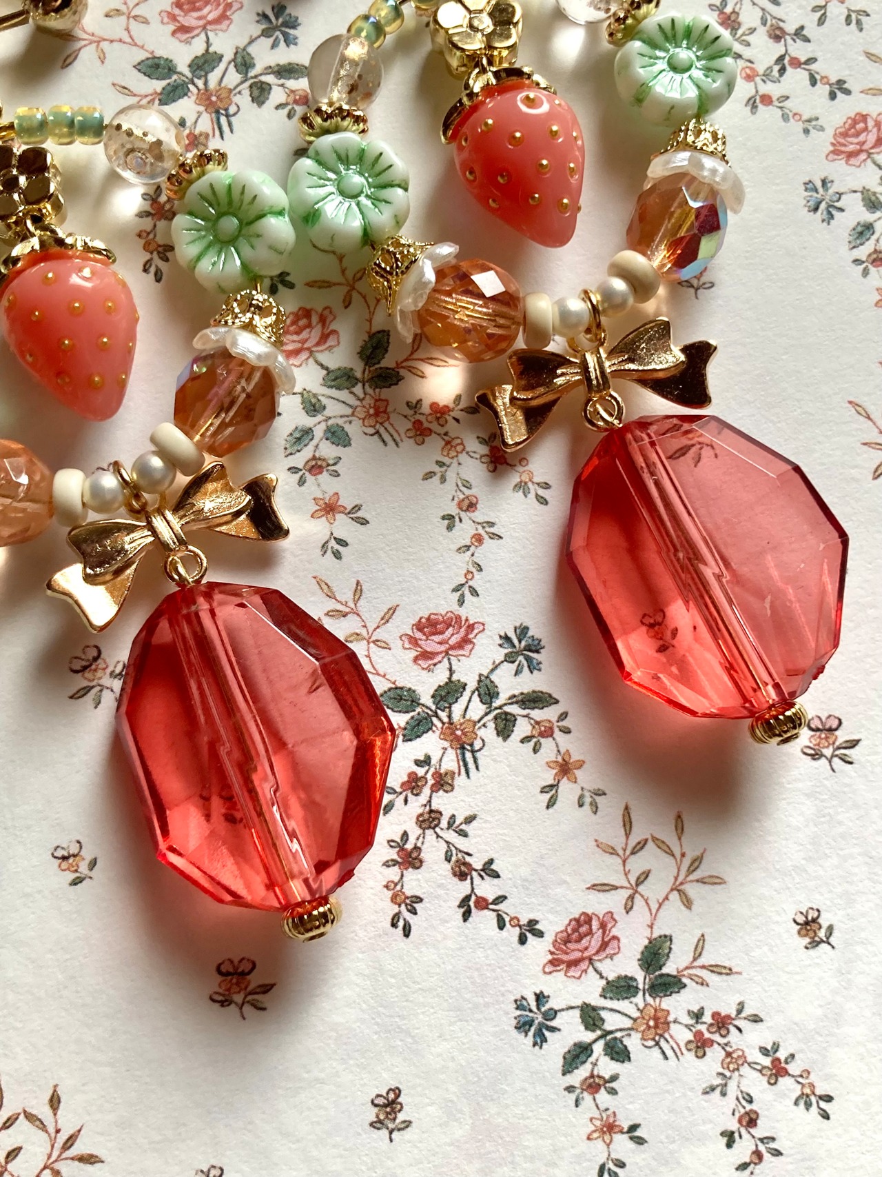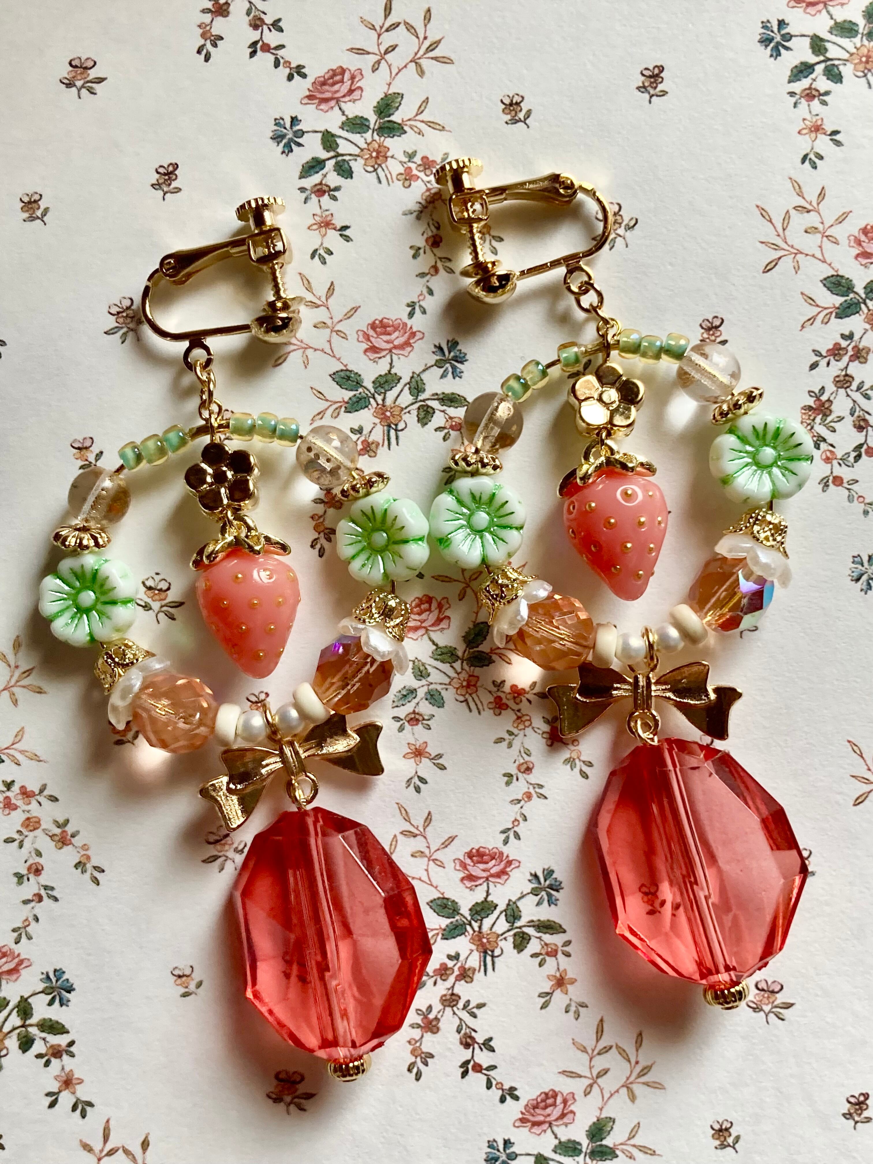 ピクニックに持っていくフルーツやチューリップなどのモチーフを春らしいデザインのアクセサリーに仕立てました。
