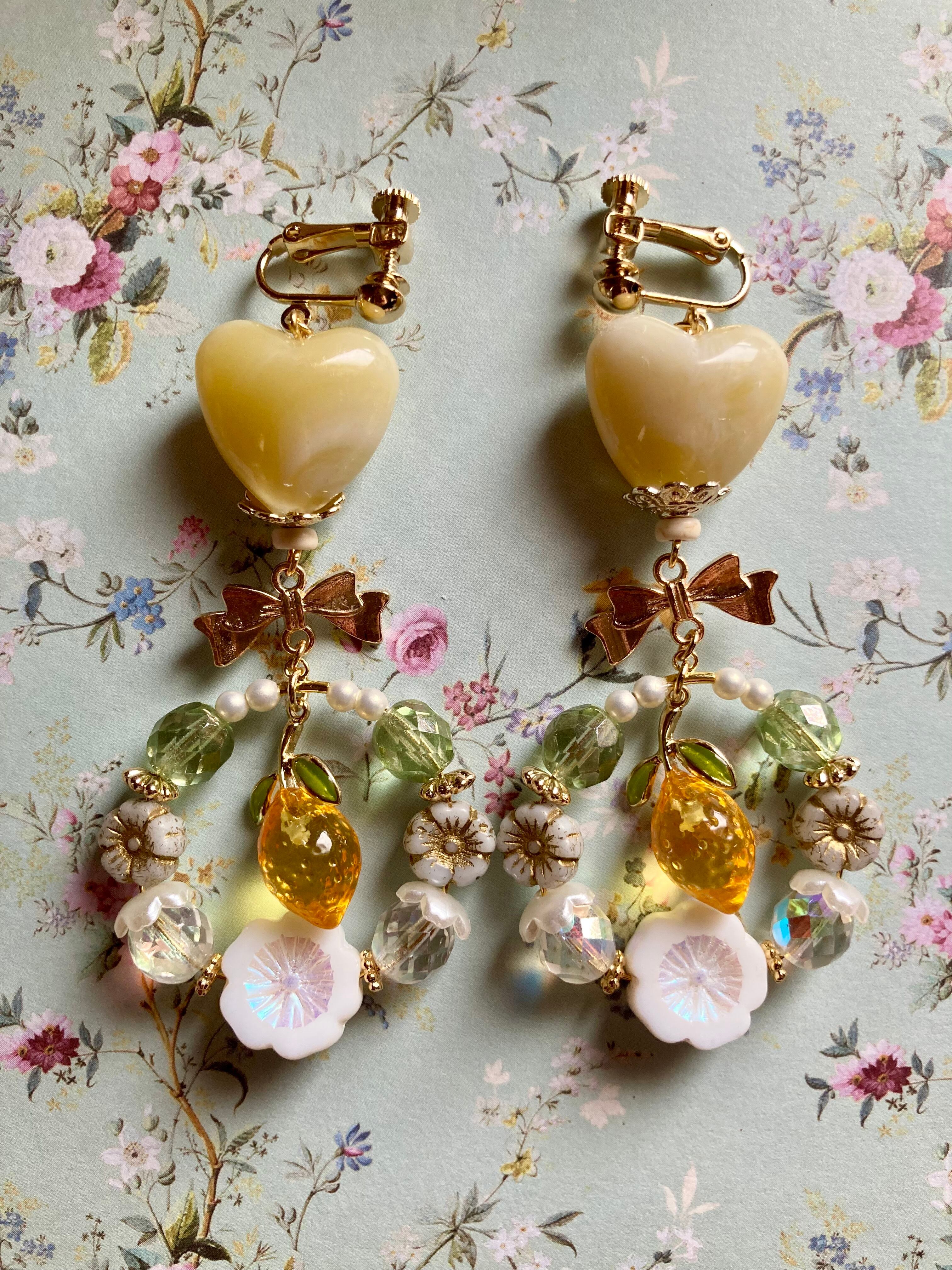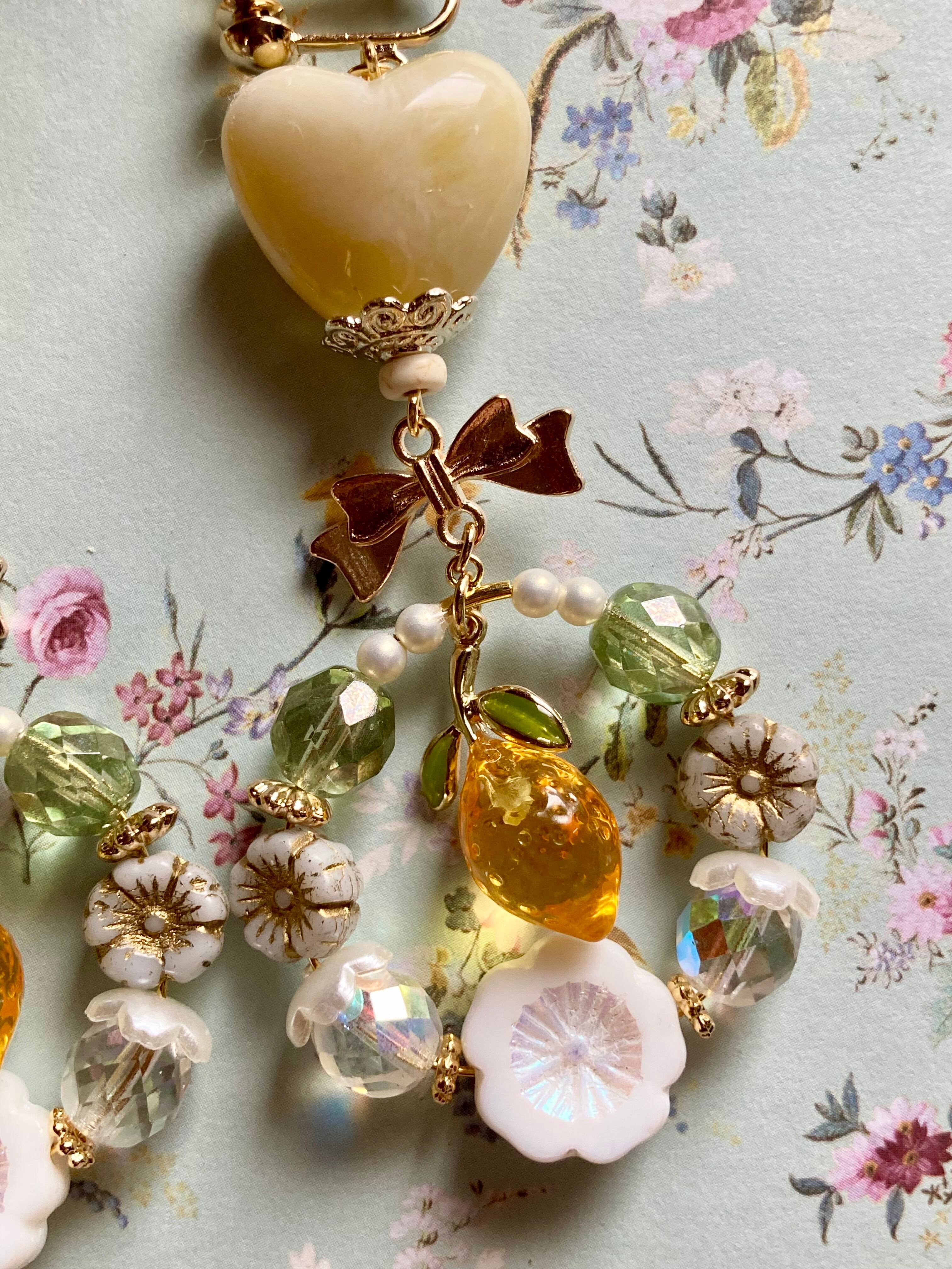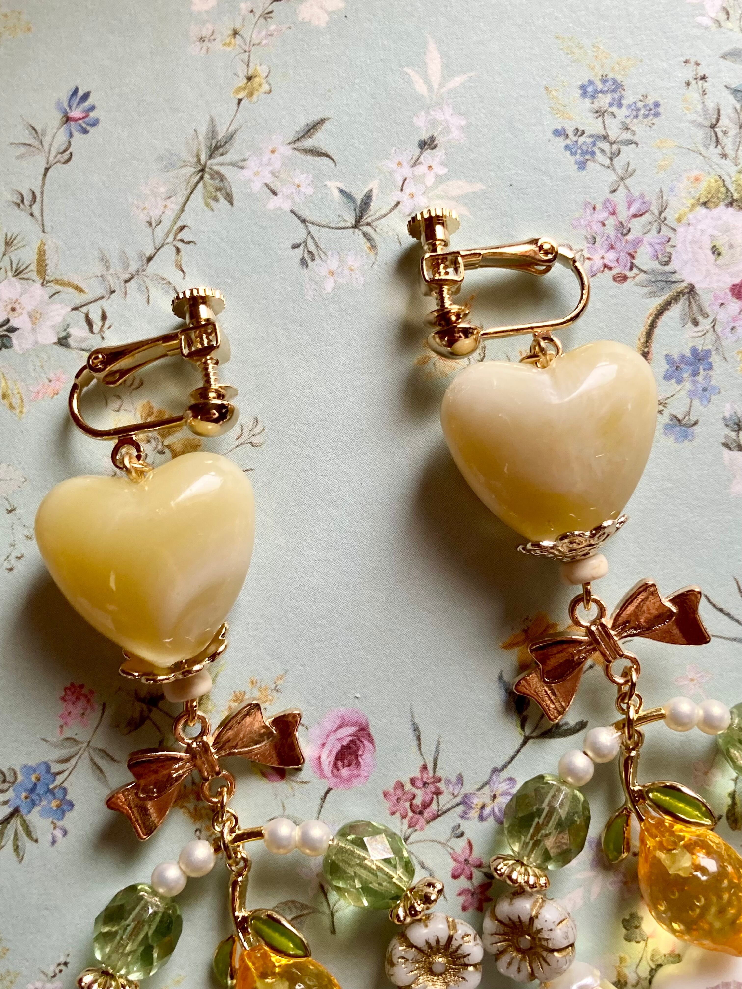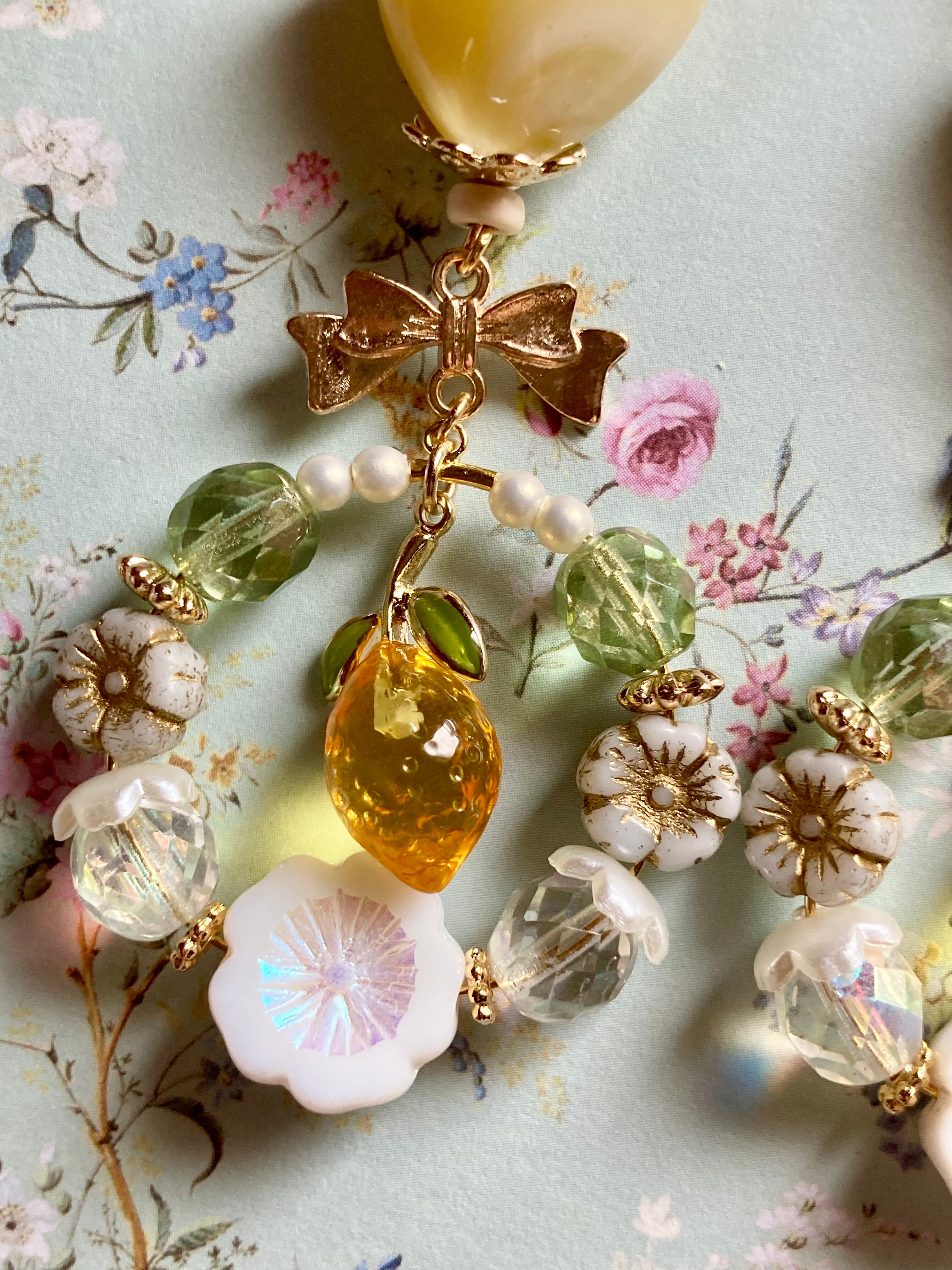 ピクニックに持っていくフルーツやチューリップなどのモチーフを春らしいデザインのアクセサリーに仕立てました。
