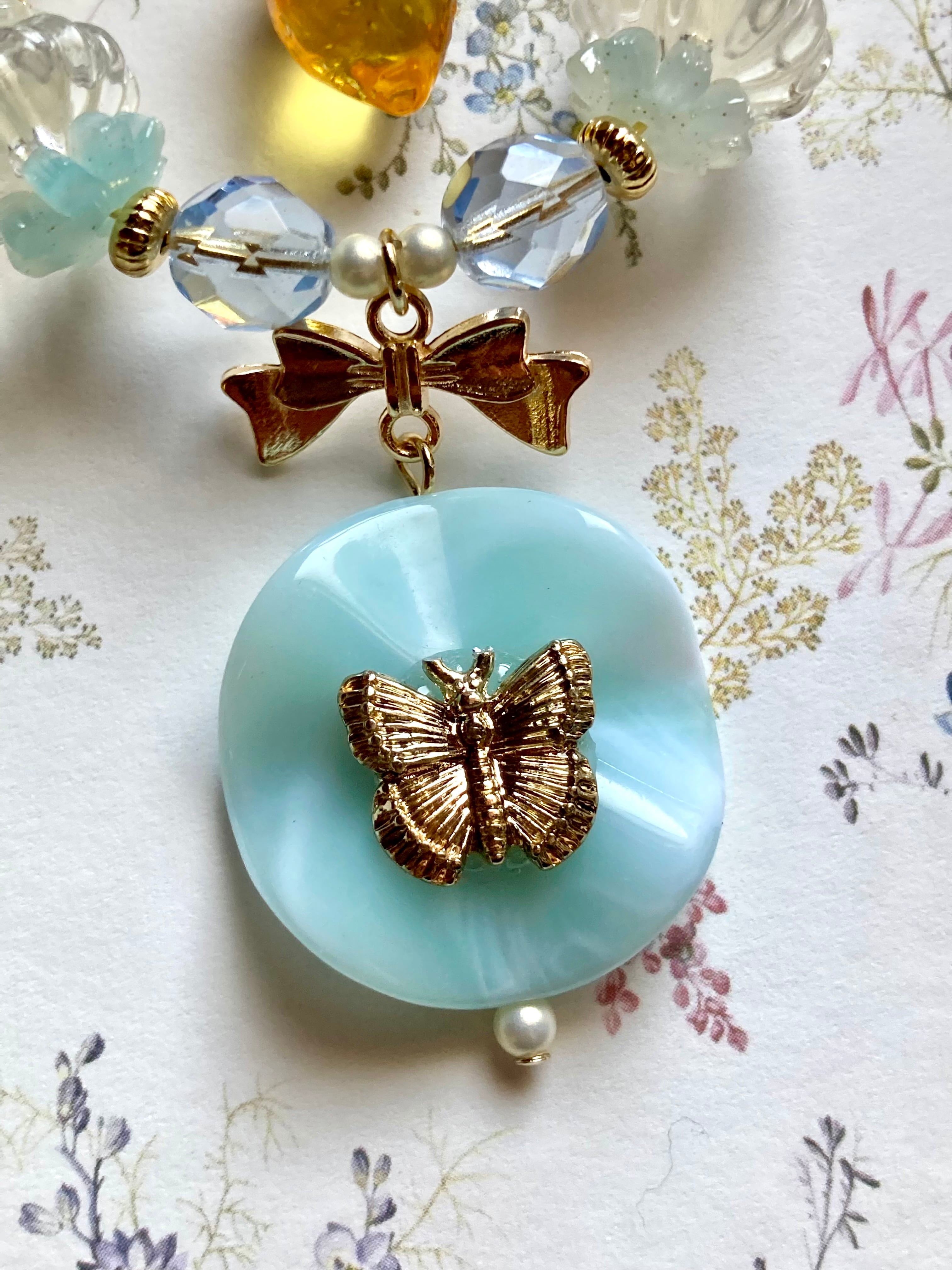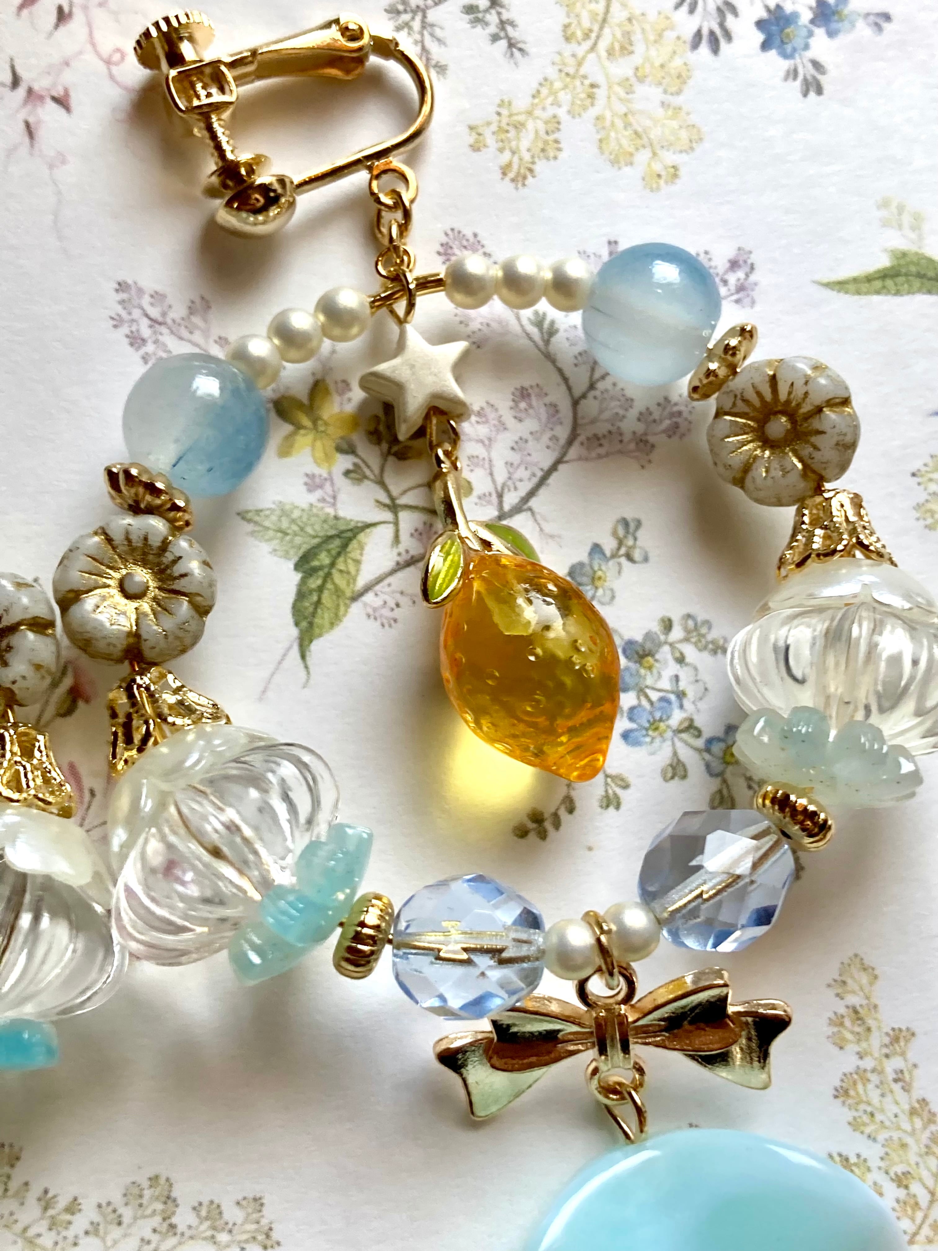 素材:チェコ硝子ビーズ、ドイツ製アクリルビーズ、キャストパーツなど