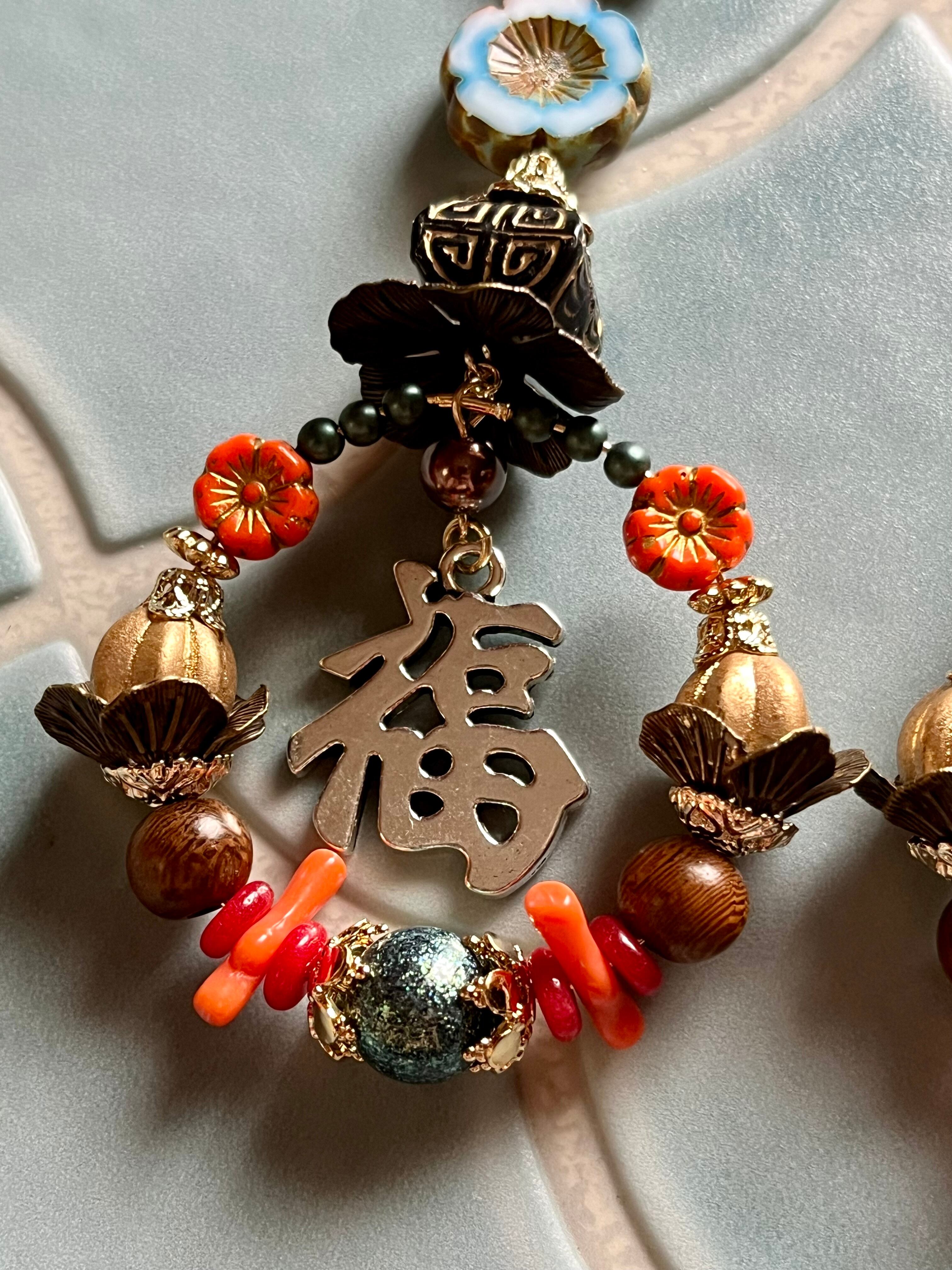素材:チェコ硝子ビーズ、キャストパーツなど