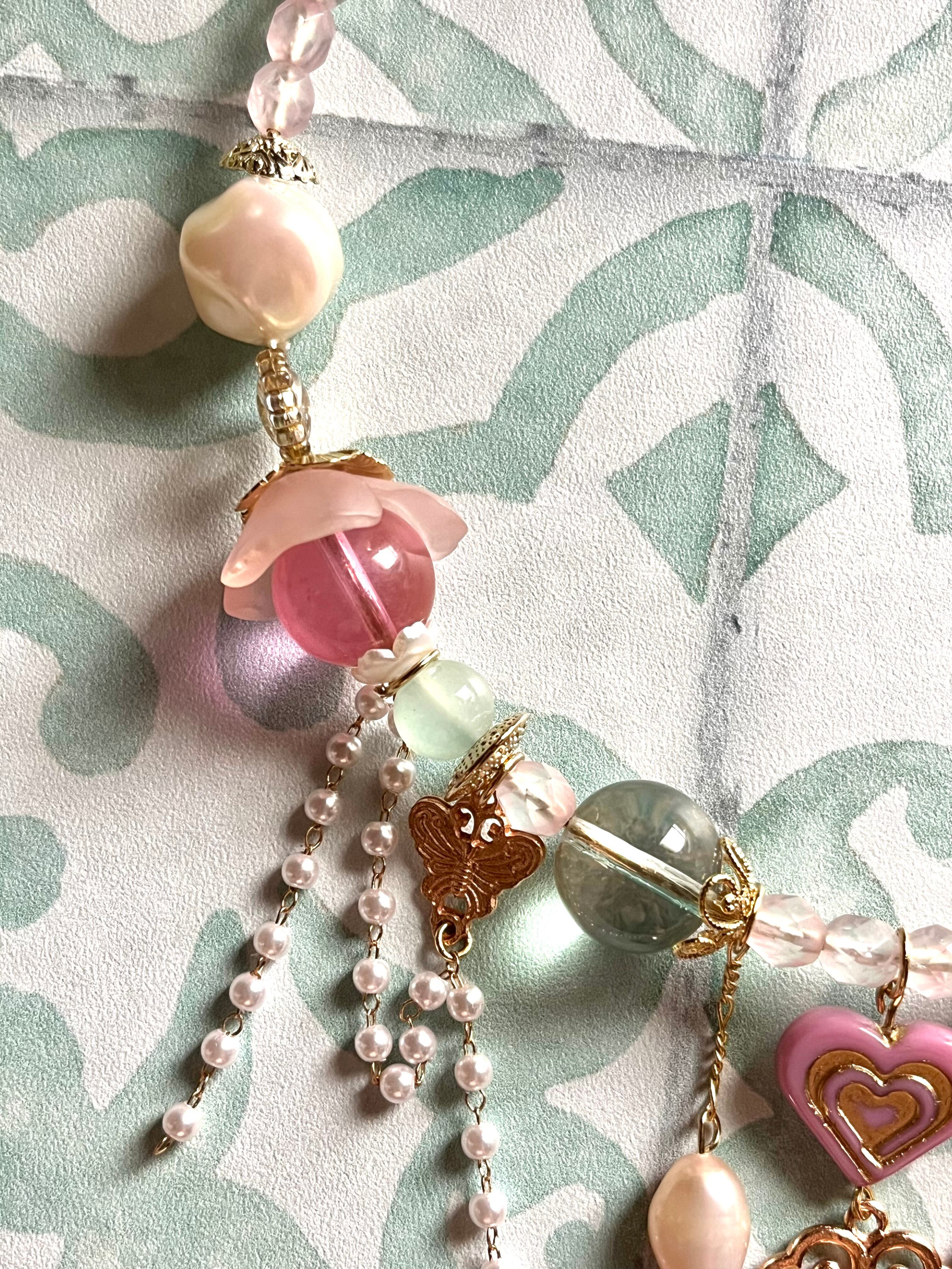 素材:チェコ硝子ビーズ、プラスチックビーズ、キャストパーツなど
