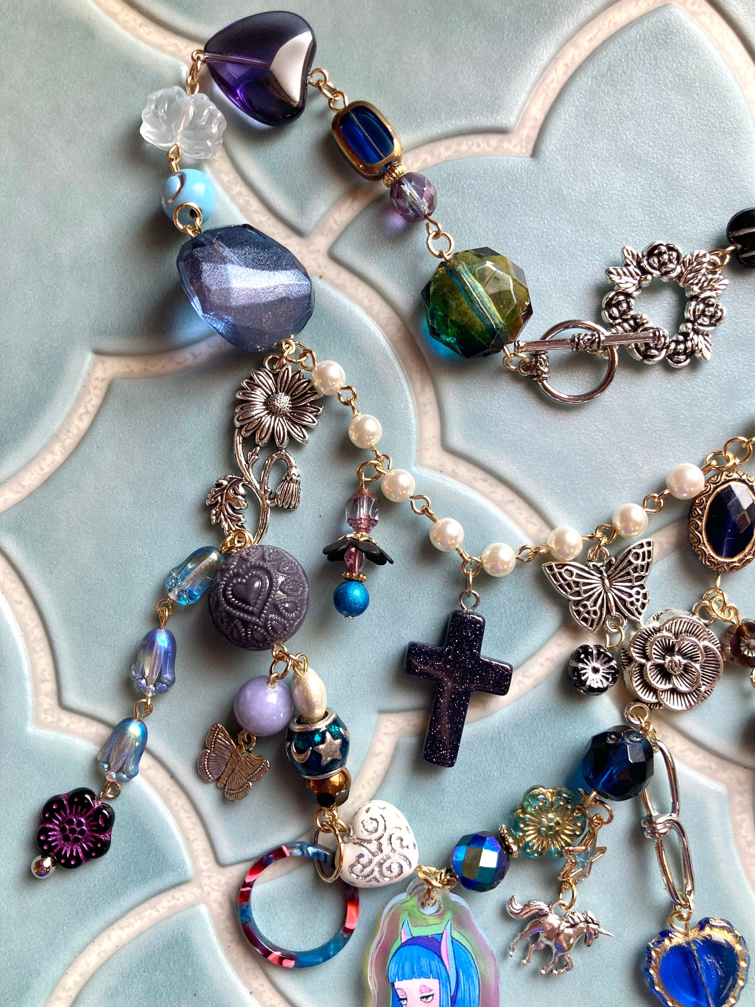 素材:日本製アクリルビーズ、チェコガラスビーズ、プラスチックビーズ、キャストパーツなど