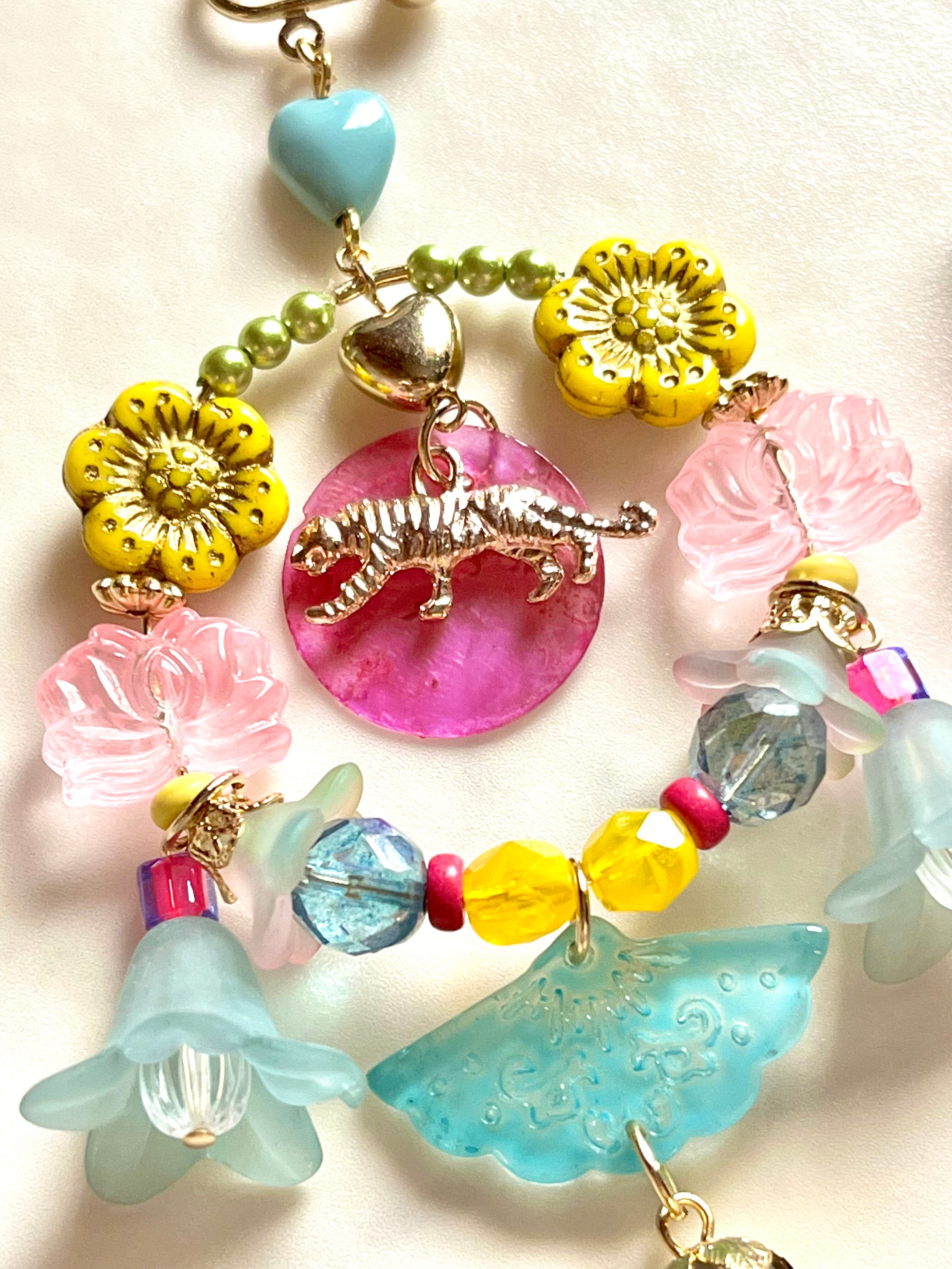 素材:チェコ硝子ビーズ、プラスチックビーズ、キャストパーツなど