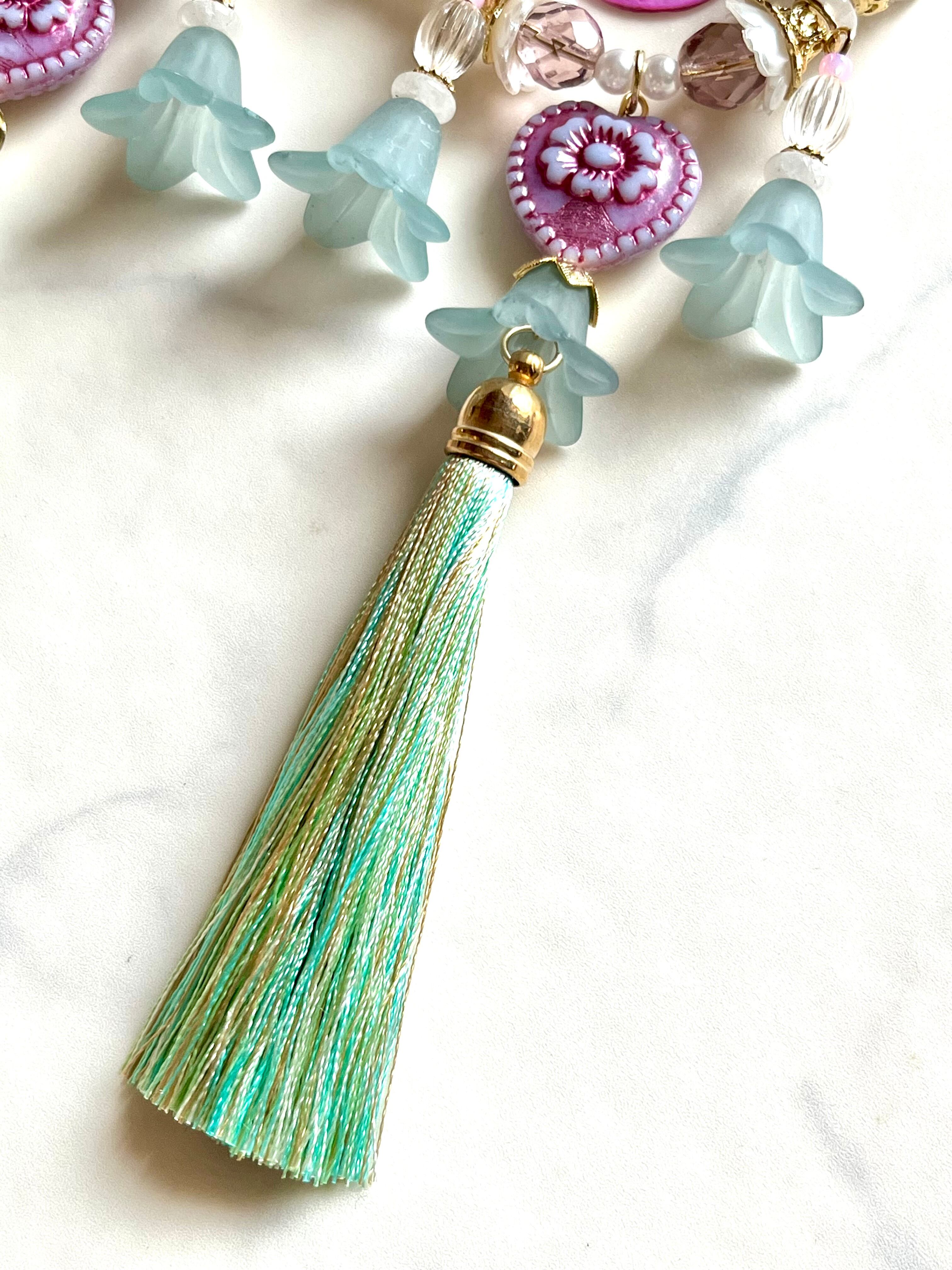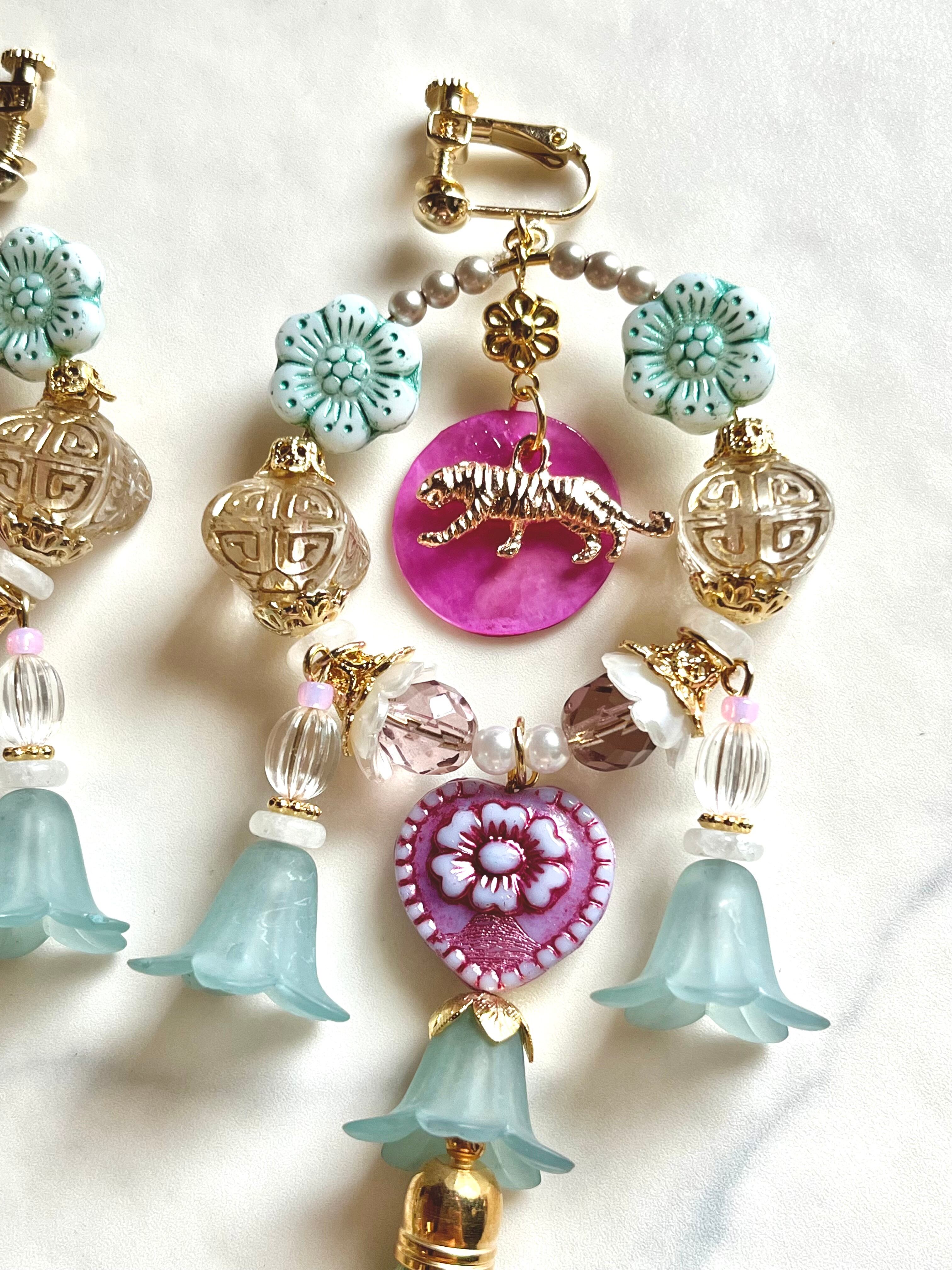 素材:チェコ硝子ビーズ、プラスチックビーズ、キャストパーツなど