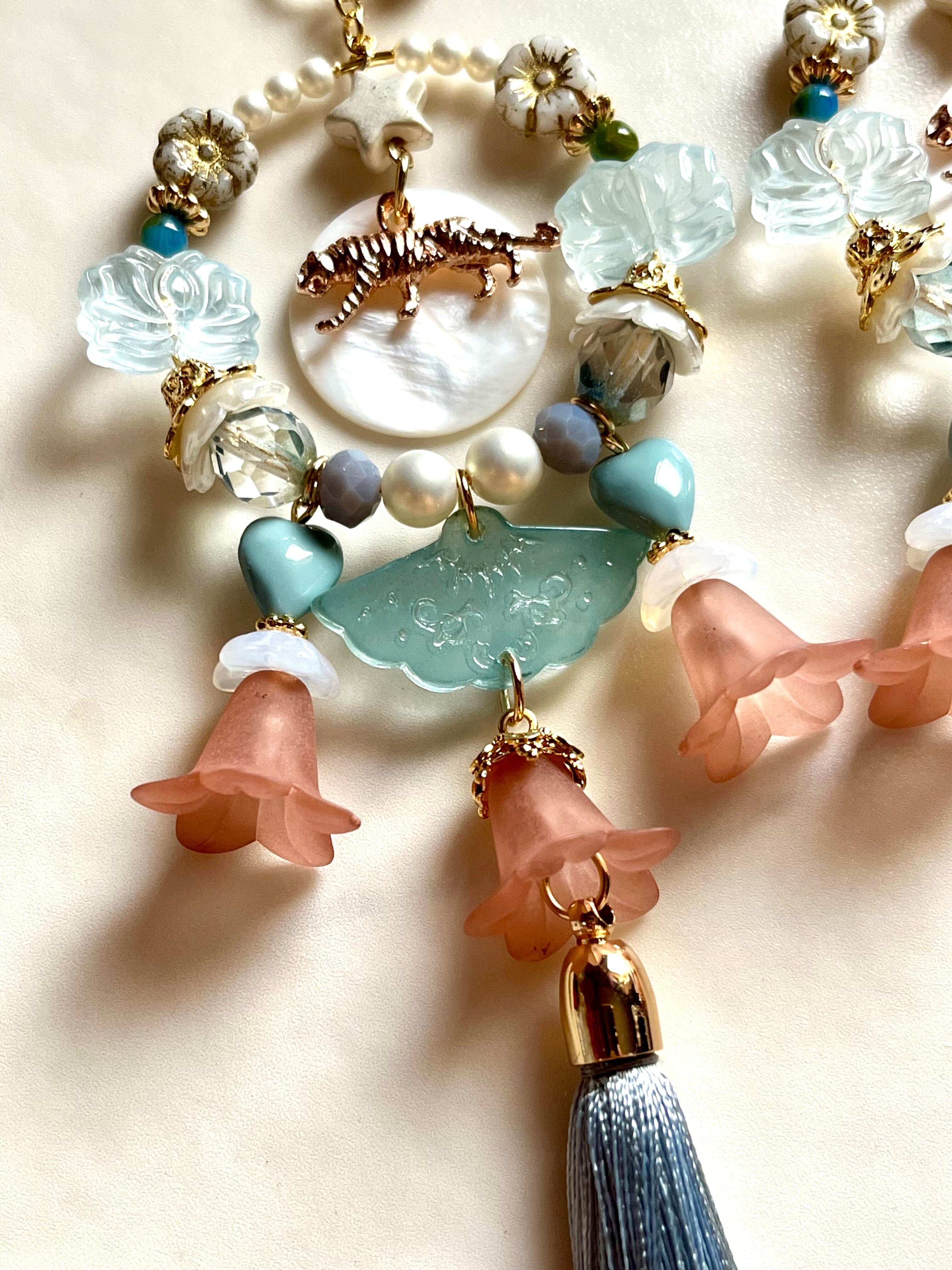 素材:チェコ硝子ビーズ、プラスチックビーズ、キャストパーツなど