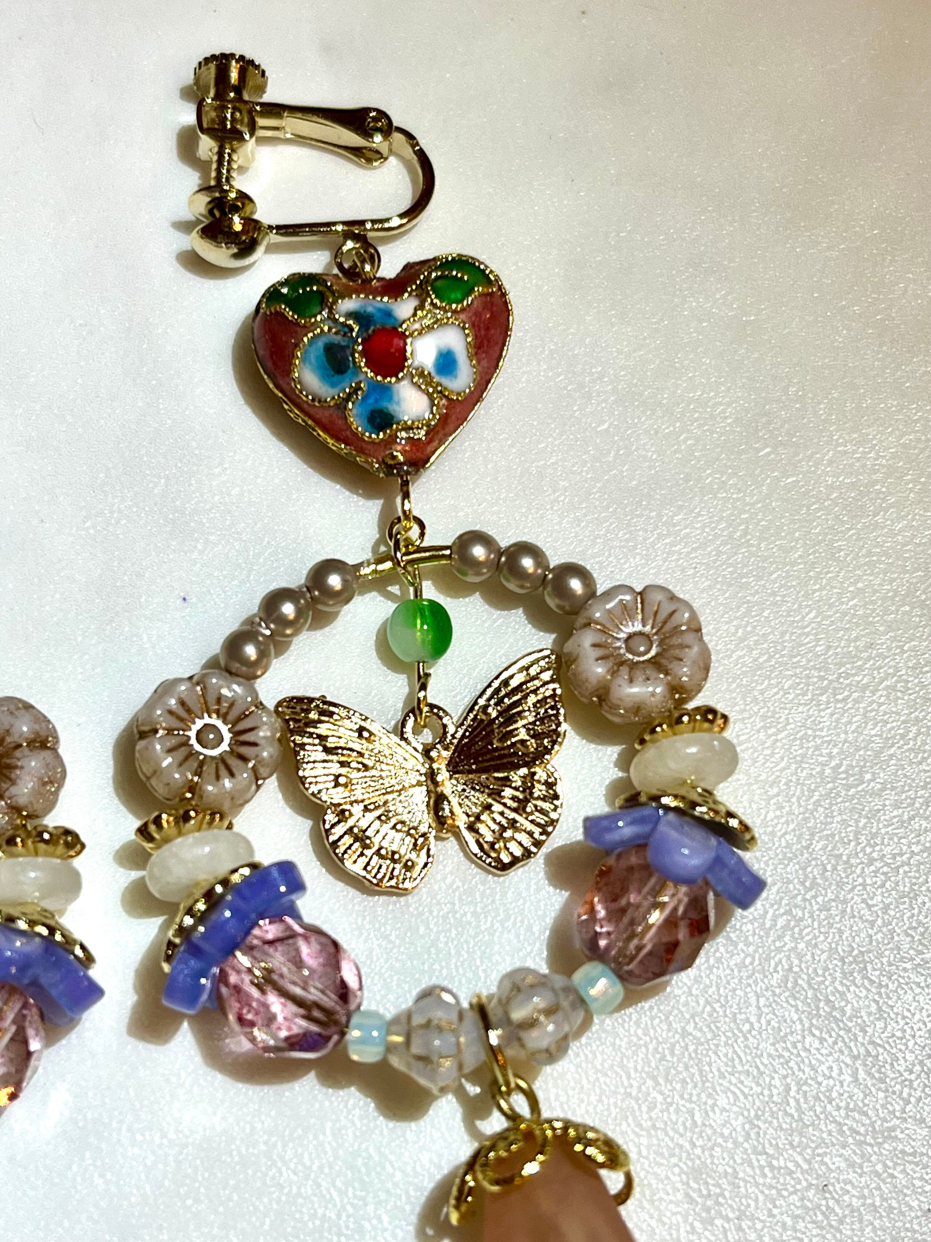 素材:チェコ硝子ビーズ、プラスチックビーズ、キャストパーツなど