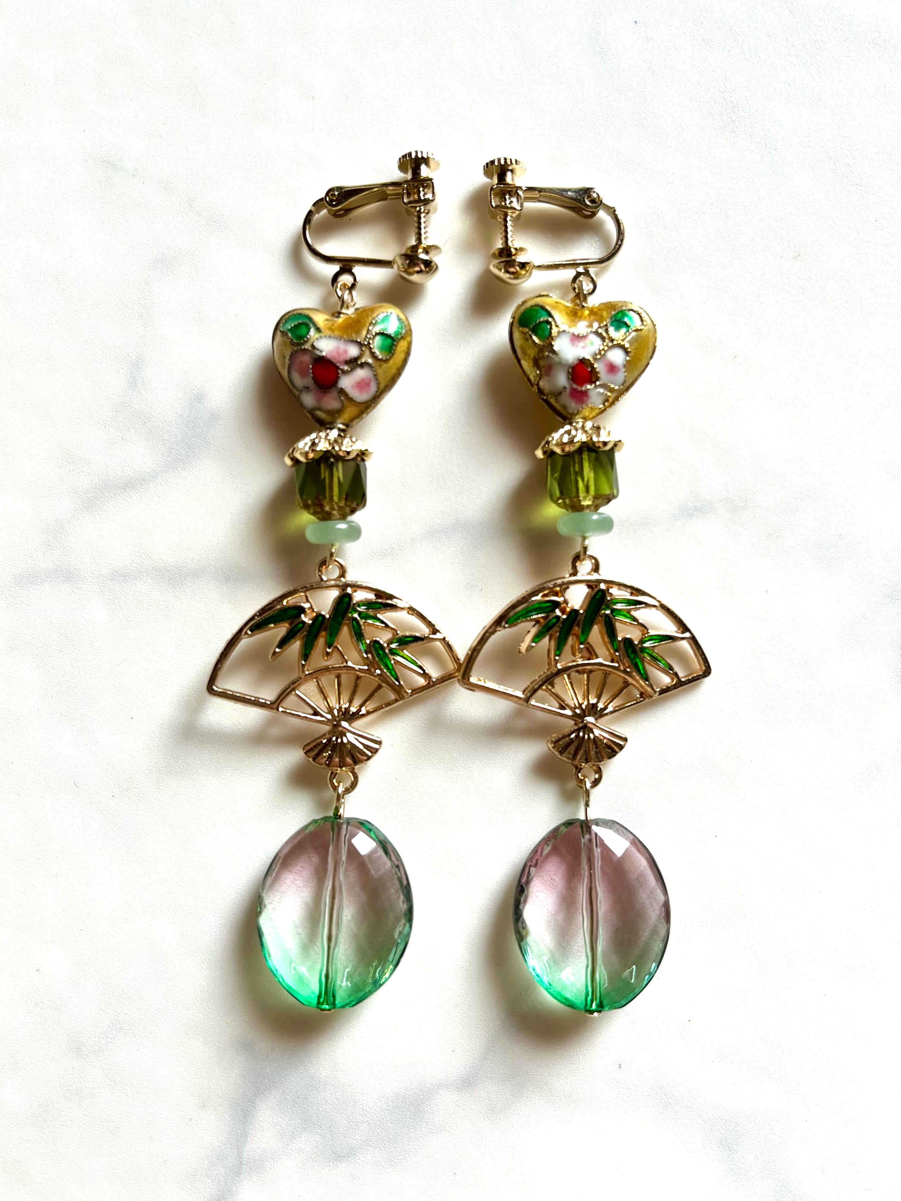 素材:チェコ硝子ビーズ、アクリルビーズ、キャストパーツ、七宝ビーズなど