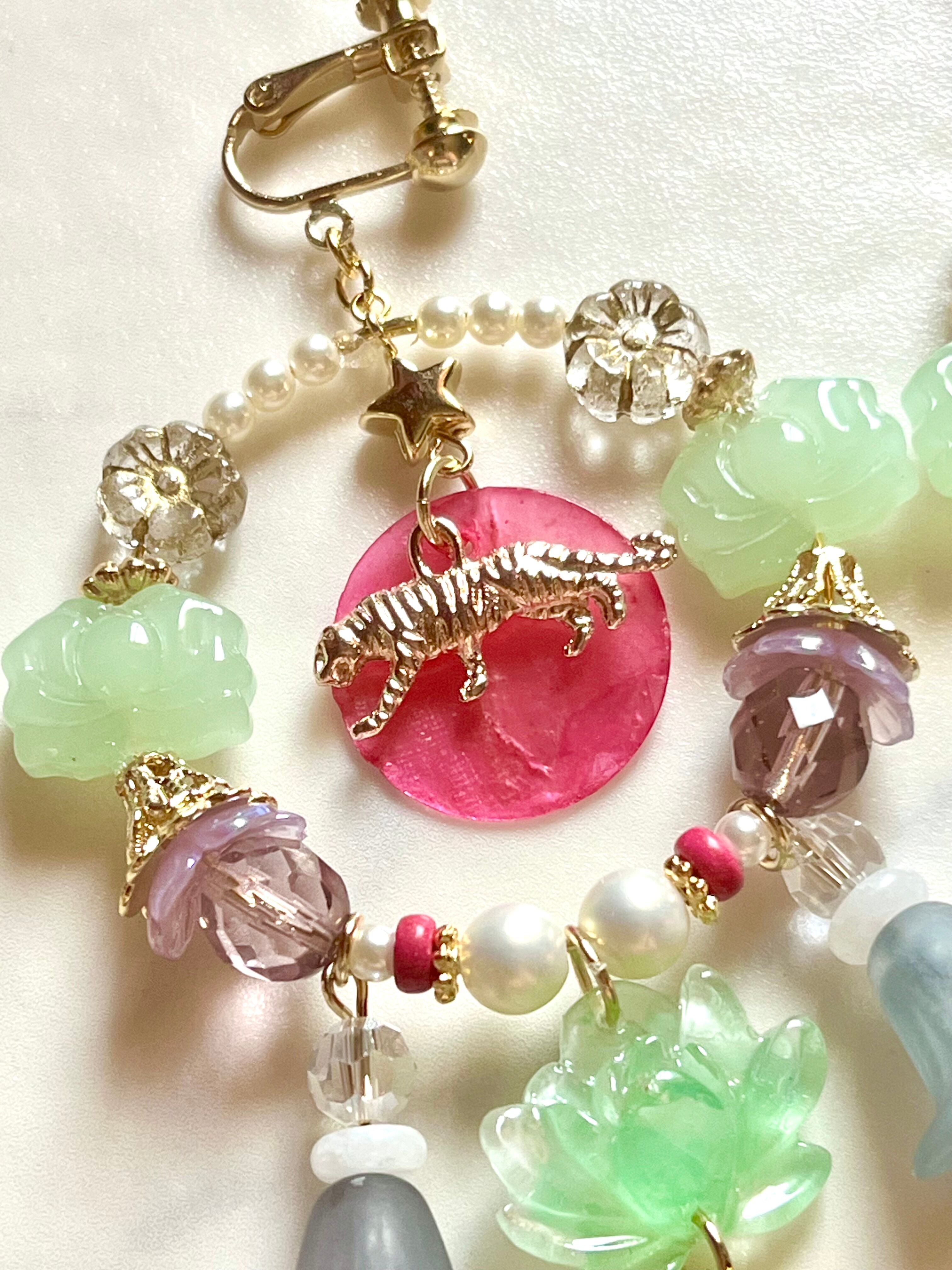 素材:チェコ硝子ビーズ、プラスチックビーズ、キャストパーツなど