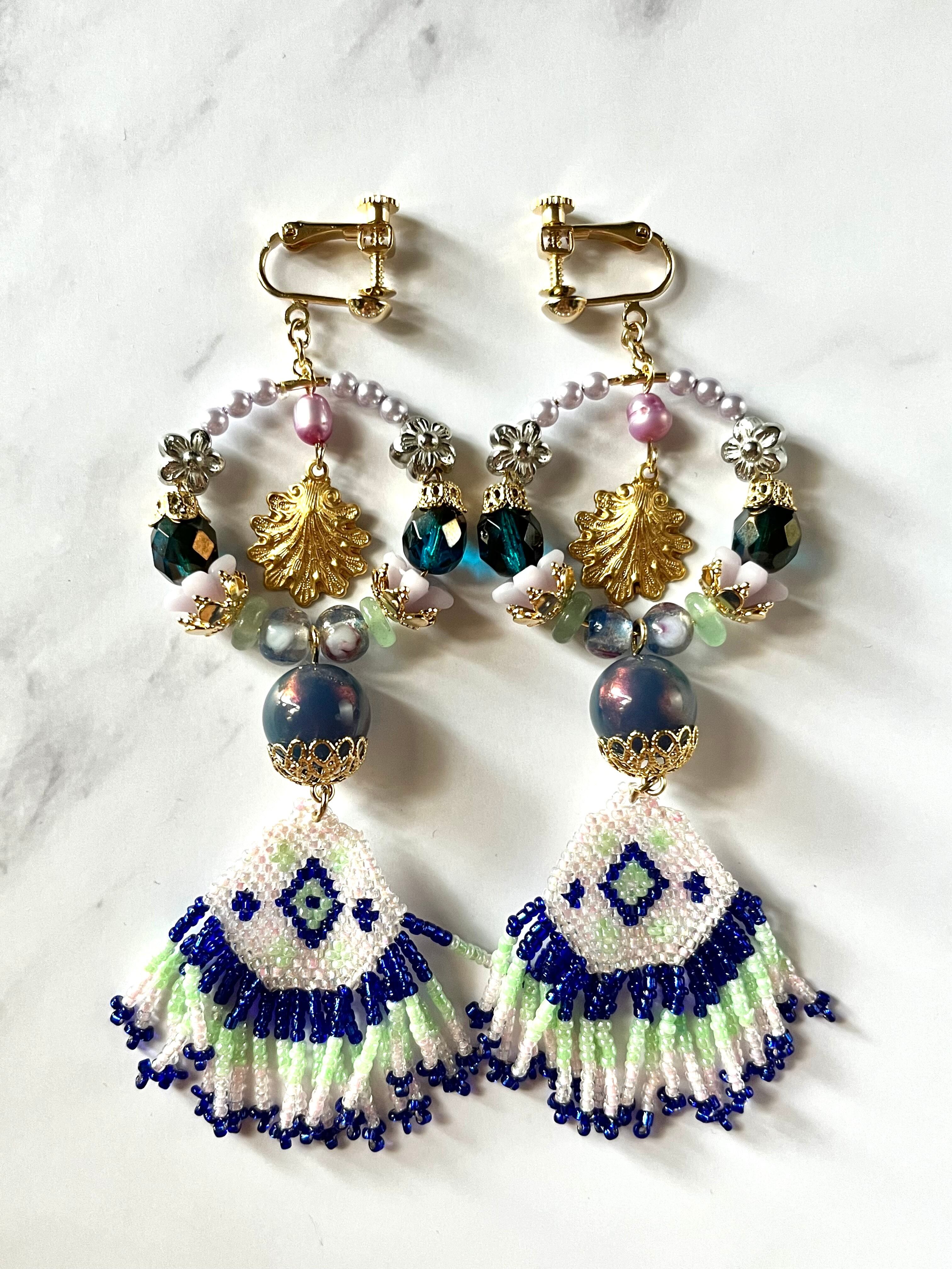 サイズ:長さ約9.5cm(イヤリング金具含まず)
