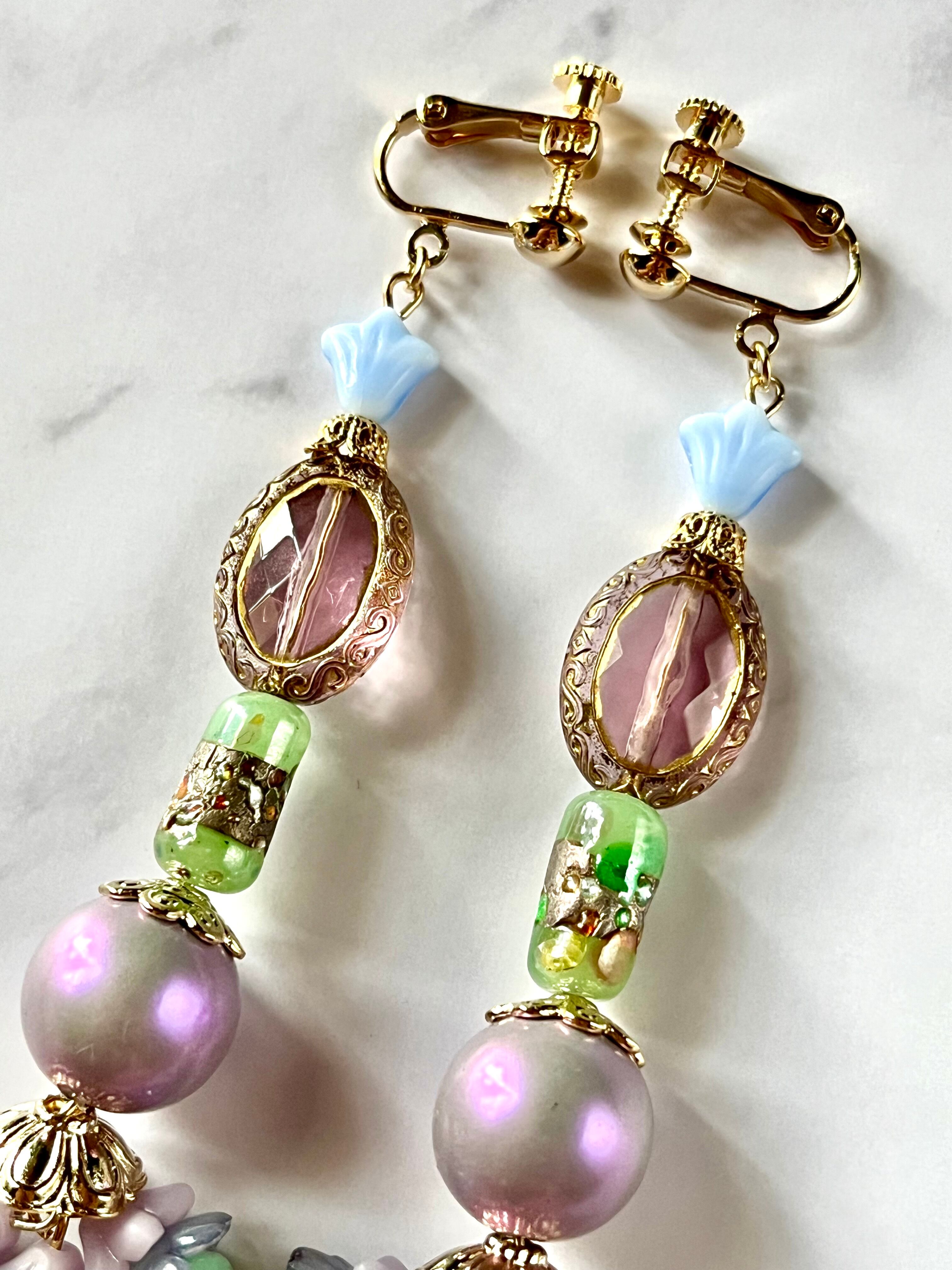 素材:チェコ硝子ビーズ、台湾仕入れランプビーズ、クレイドイツアクリルビーズなど