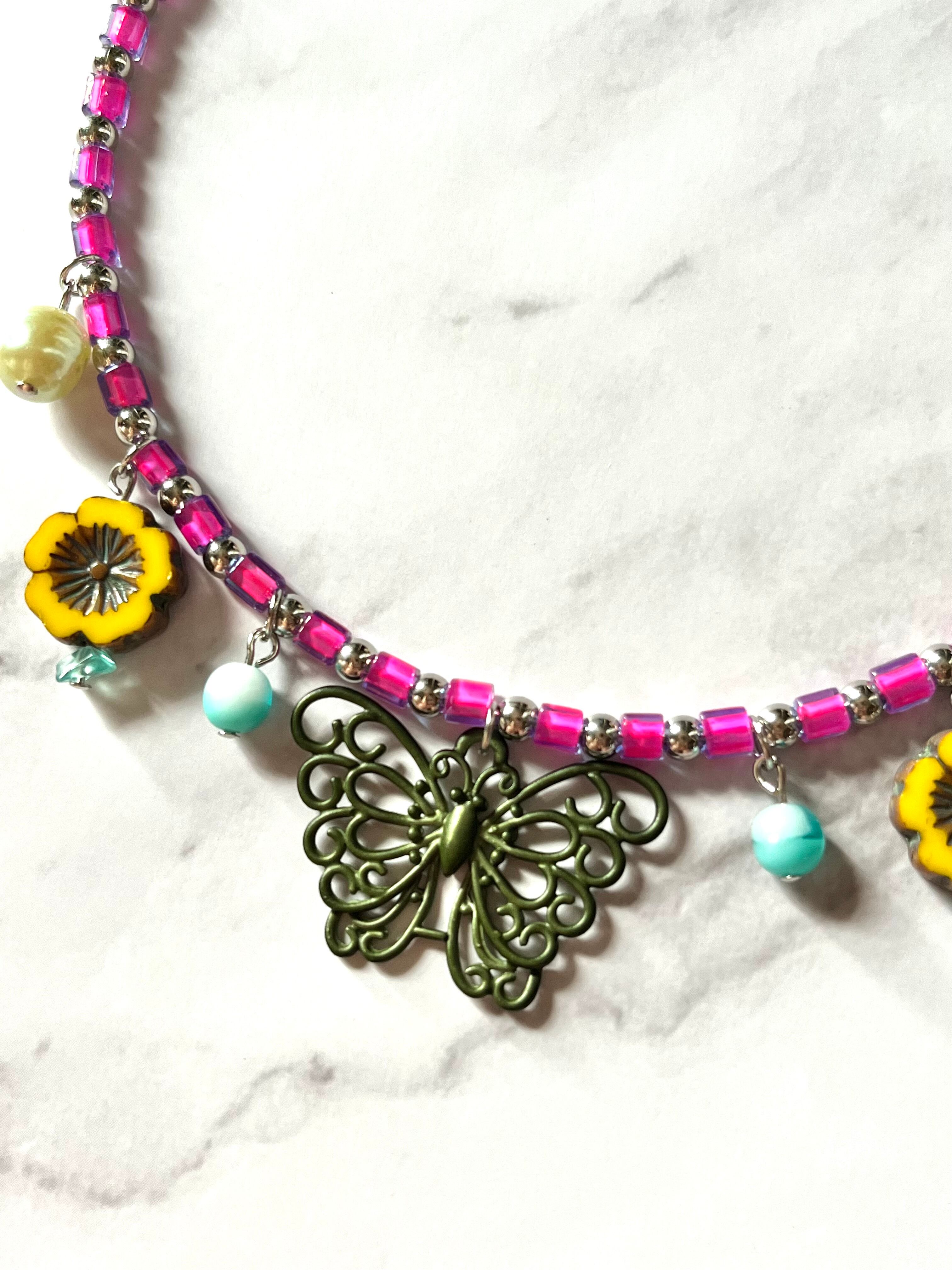 素材:チェコ硝子ビーズ、キャストチャーム、ビンテージ硝子ビーズなど