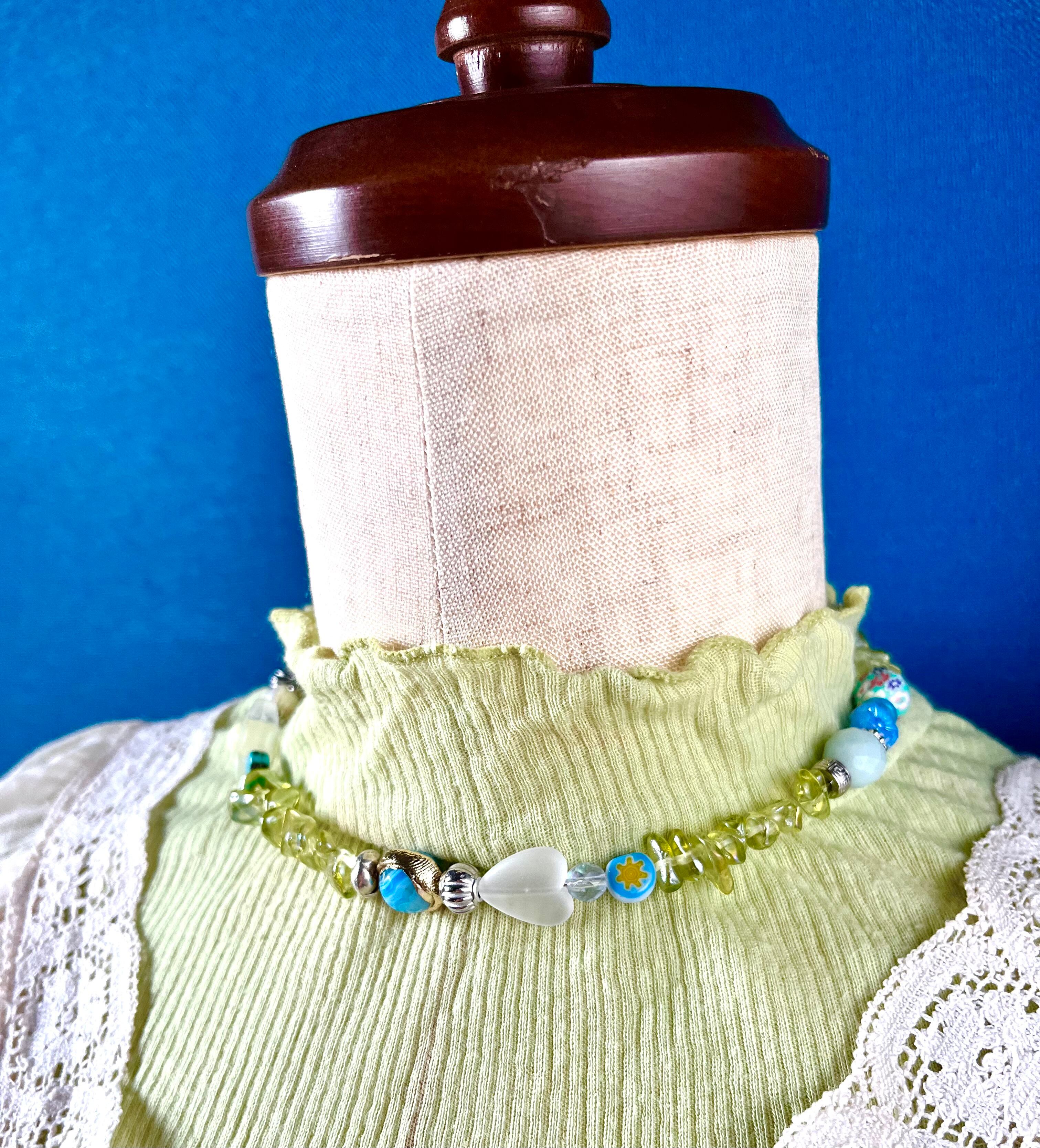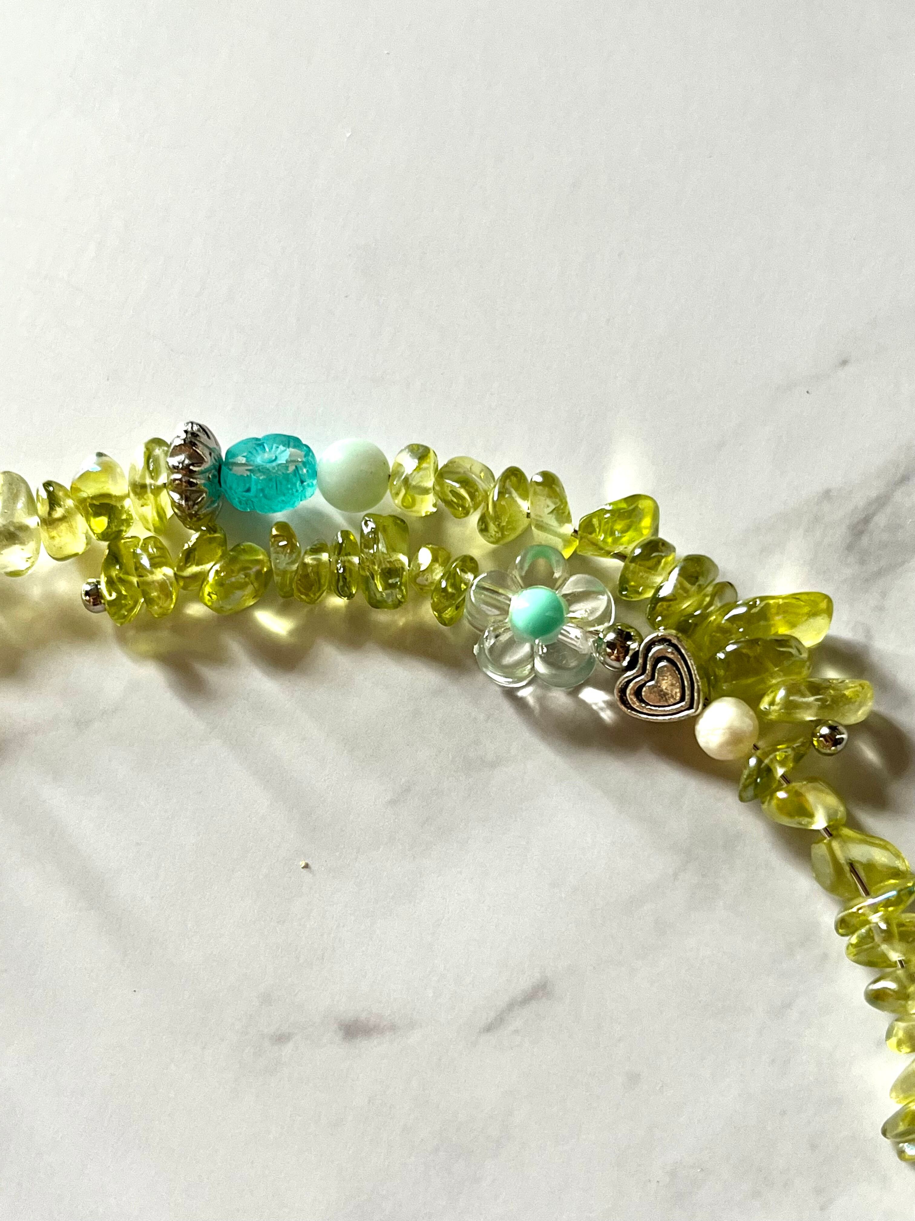 素材:チェコ硝子ビーズ、さざれ石、台湾仕入れビーズ、クレイビーズなど